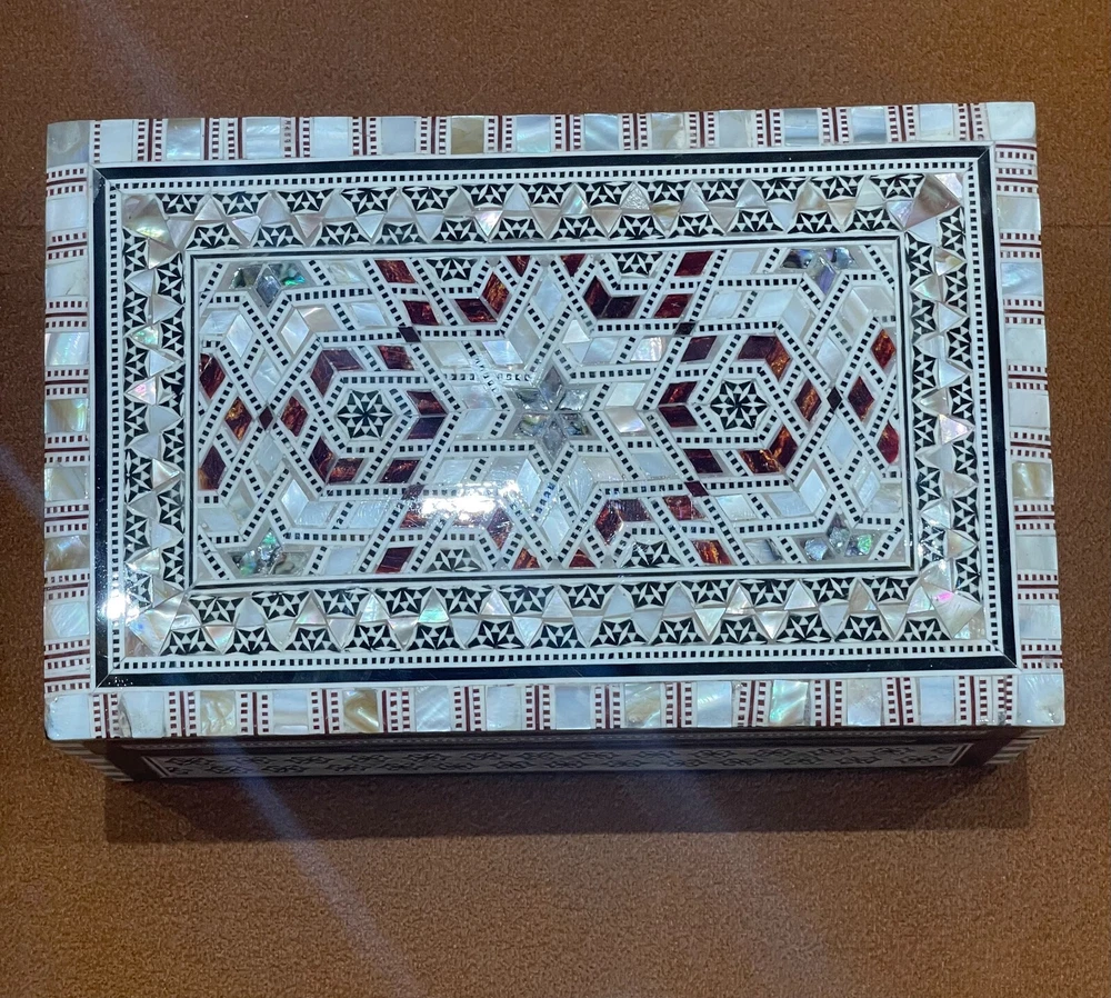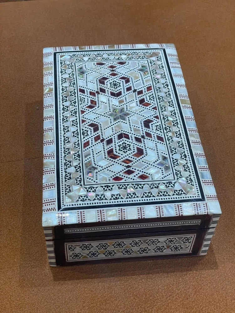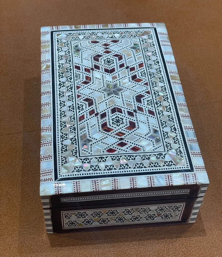 country: egyptian jewelry box inlaid: inlay jewelry box UPC: Does not apply gift box: gift box Material: wood inlaid mother of pearl gift: gift wooden: wood jewelry box Department: Unisex Adults Brand: handmade gtin13: Does not apply box: inlaid box Type: Jewelry Box Capacity: 1 Piece inlay: inlay box item: mother of pearl jewelry box pearl: mother of pearl inlay box inlaid wood: inlaid wood box Country/Region of Manufacture: Egypt Lining Material: mother of pearl product: jewelry box antique: antique jewelry box Suitable For: jewelry box Color: mother of pearl inlaid jewelry: inlaid jewelry box Vintage: No Manufacturer: egyptian box model: mother of pearl box vintag: vintage jewelry box Items Included: Jewelry Box