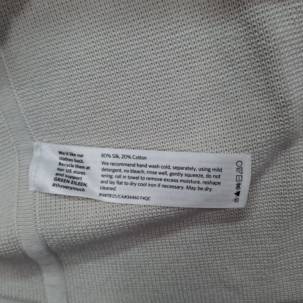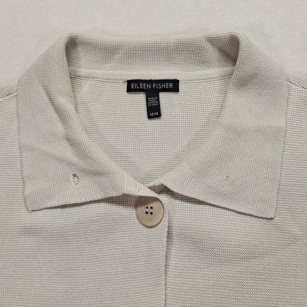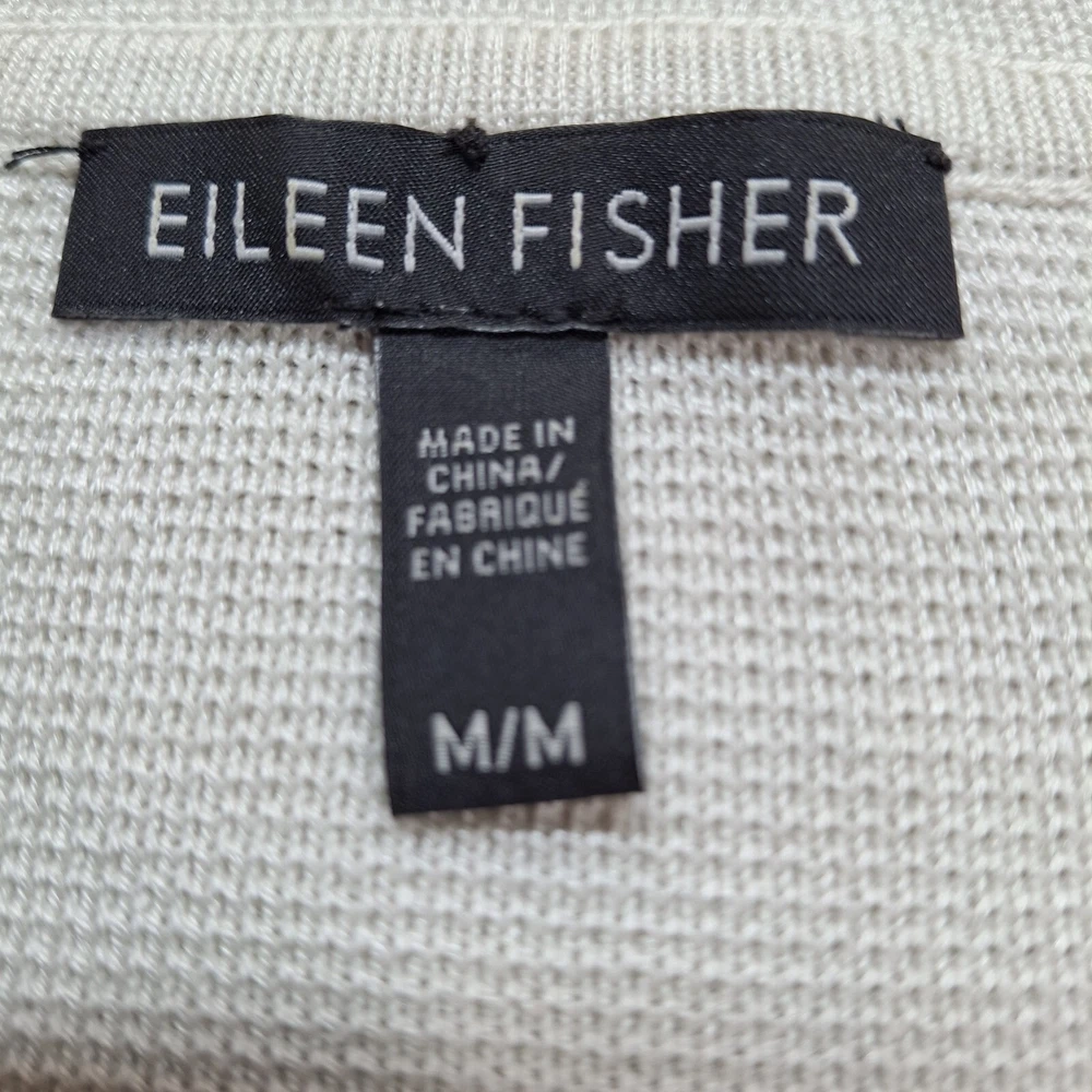 Style: Cardigan Type: Sweater Vintage: No Pattern: Solid Size Type: Regular Sleeve Length: Long Sleeve Size: M Color: Ivory Neckline: Mock Neck Accents: Button Features: Pockets Brand: Eileen Fisher Season: Fall, Winter Fit: Classic Seller Notes: “Great Condition” Theme: Quiet luxury, Holiday, Christmas, Modest, Career, Corpcore Knit Style: Tight-Knit Department: Women Material: Cotton, Silk