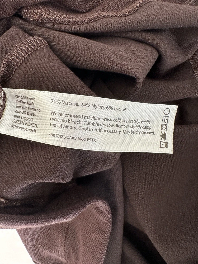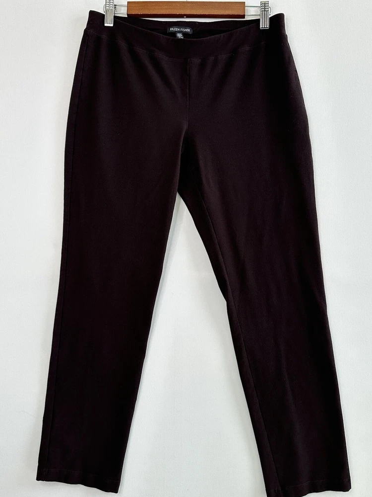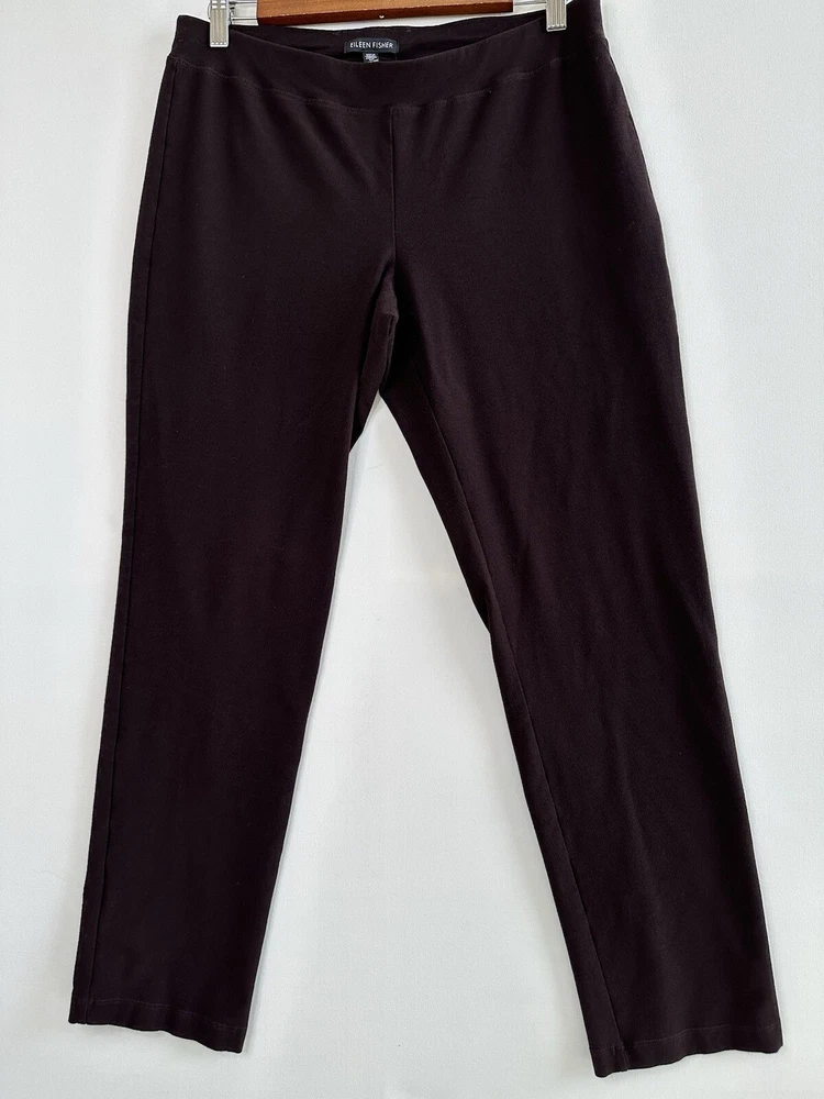 Pattern: Solid Size: S Brand: Eileen Fisher Style: Ankle Rise: Mid (8.5-10.5 in) Waist Size: 29 in Seller Notes: “Very good condition!!” Leg Style: Straight Closure: Pull On Fit: Slim Type: Pants Front Type: Flat Front Inseam: 27 in Features: Stretch Material: Nylon, Viscose, Lycra Size Type: Regular List Date: 102324 Fabric Type: Crepe Department: Women Color: Brown
