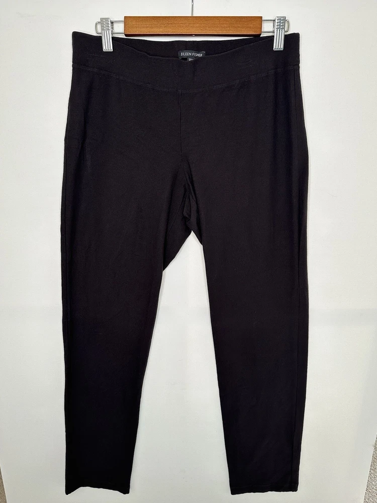 Eileen Fisher Stretch Crepe Slim Fit Pull On Ankle Pants 78121 Size Small Petite Black Very good pre-owned condition. Measurements approximate laying flat: Waist 14.5" Rise 8.5" Inseam 27"
