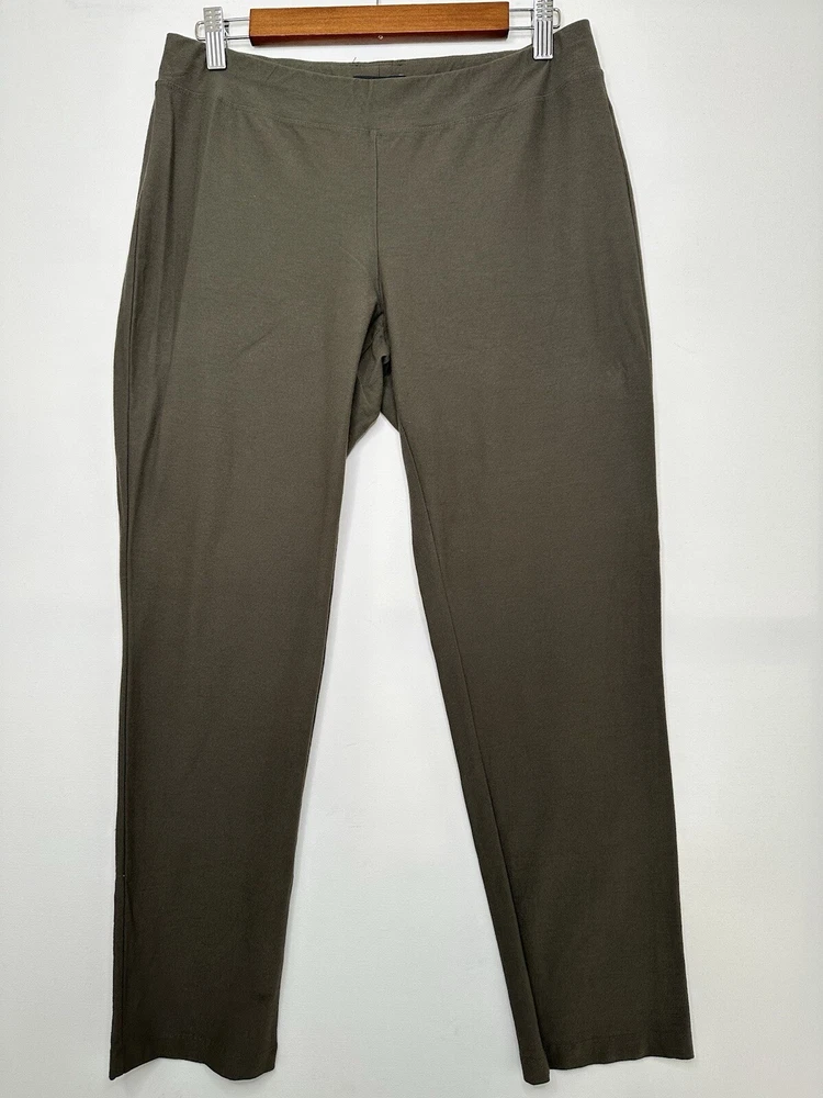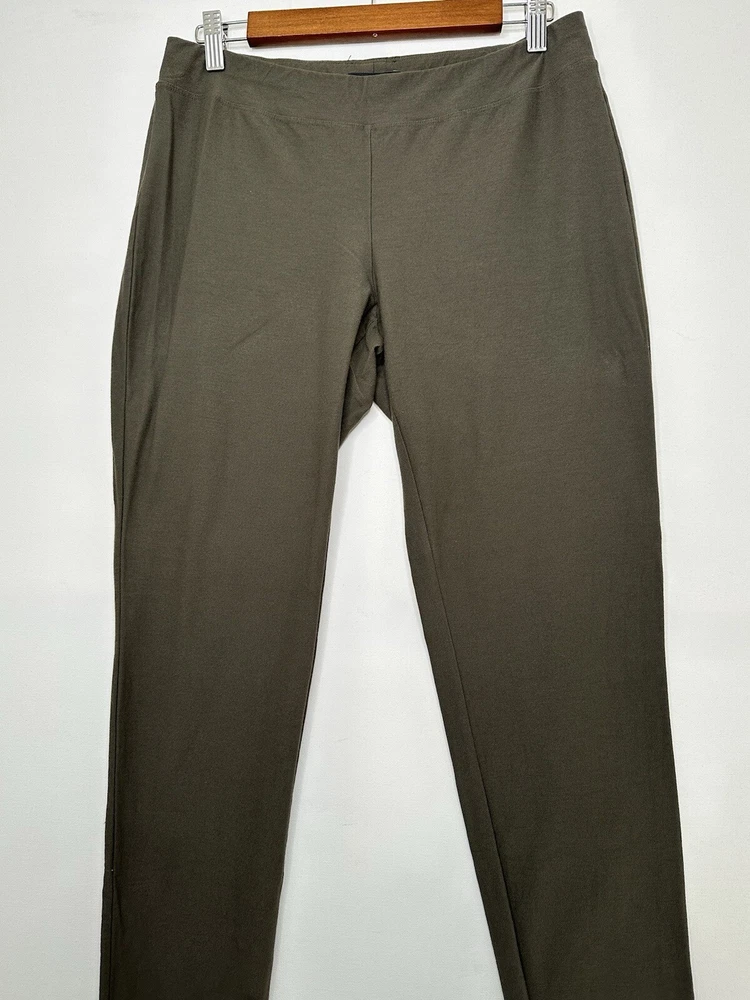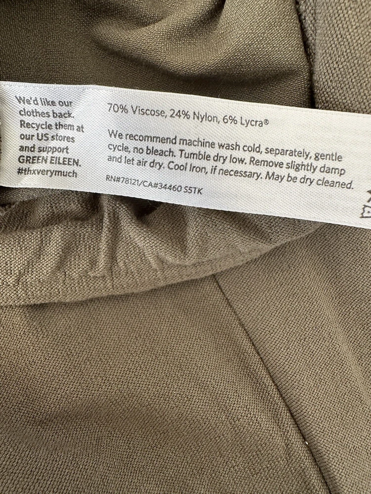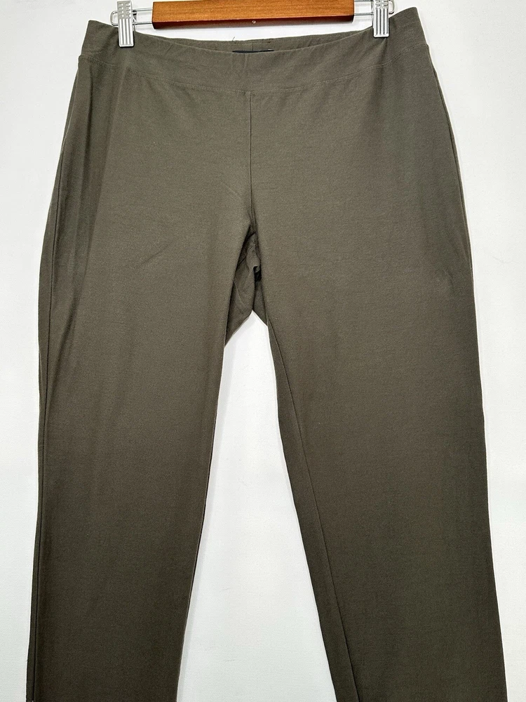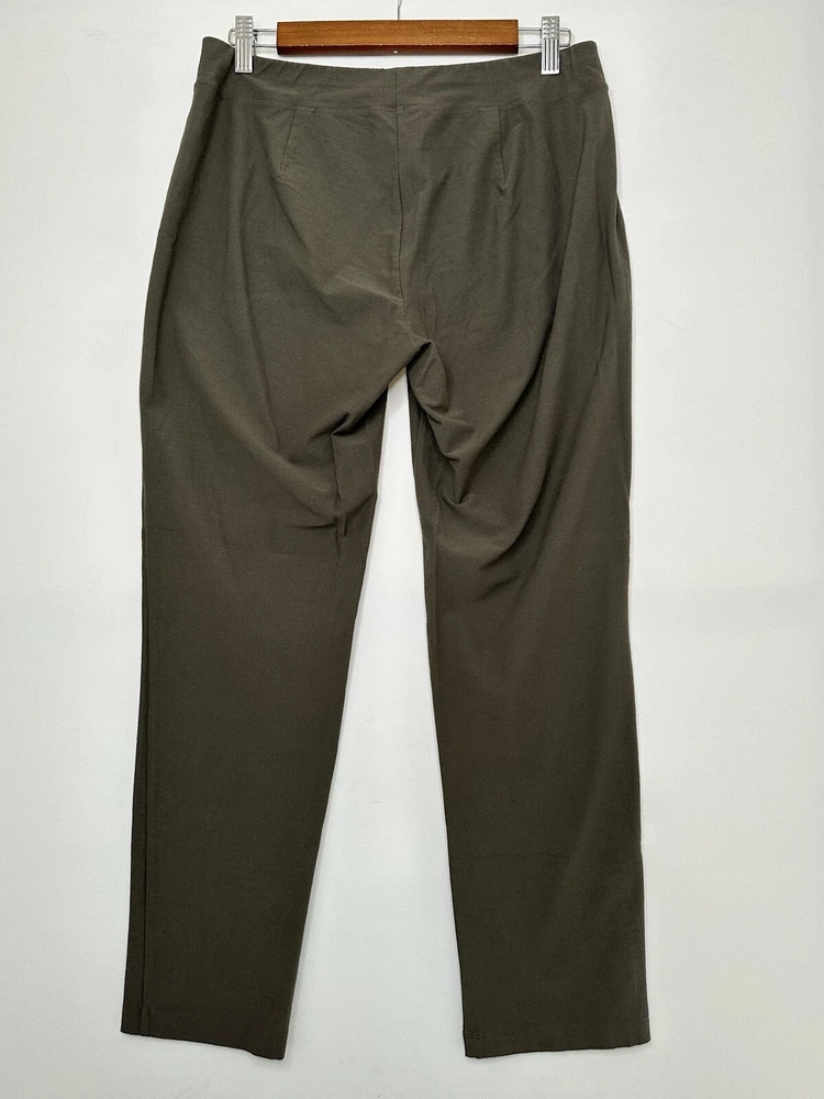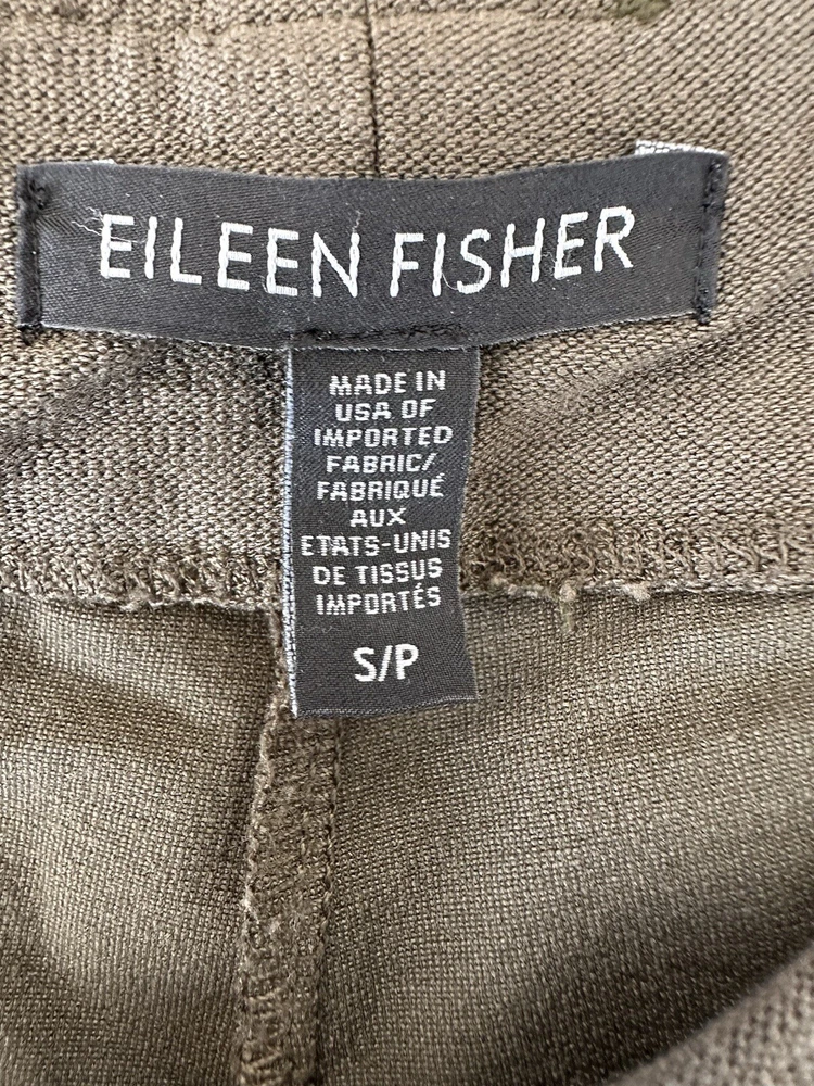 Eileen Fisher Stretch Crepe Slim Fit Pull On Ankle Pants 78121 Size Small Petite Olive Green Very good pre-owned condition. Measurements approximate laying flat: Waist 15" Rise 8.5" Inseam 27"