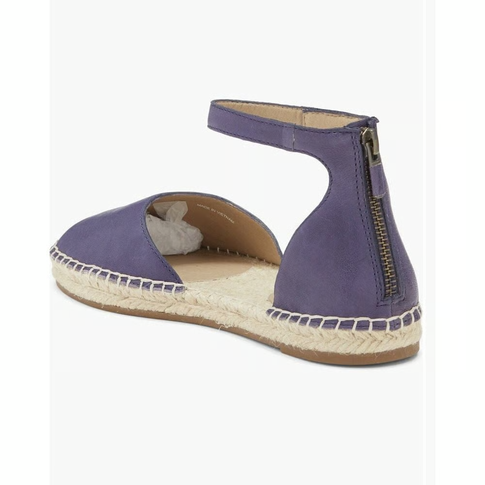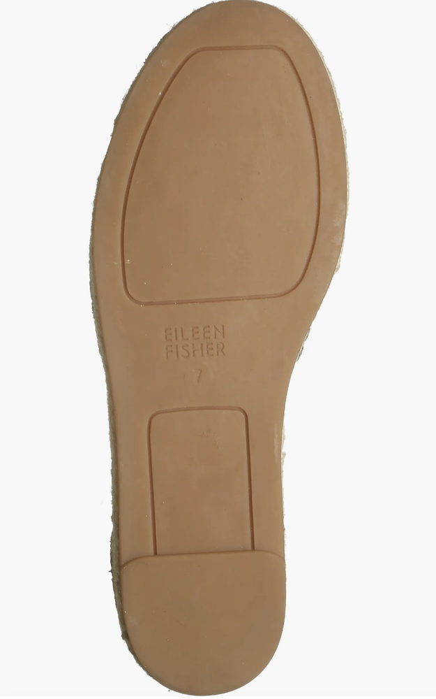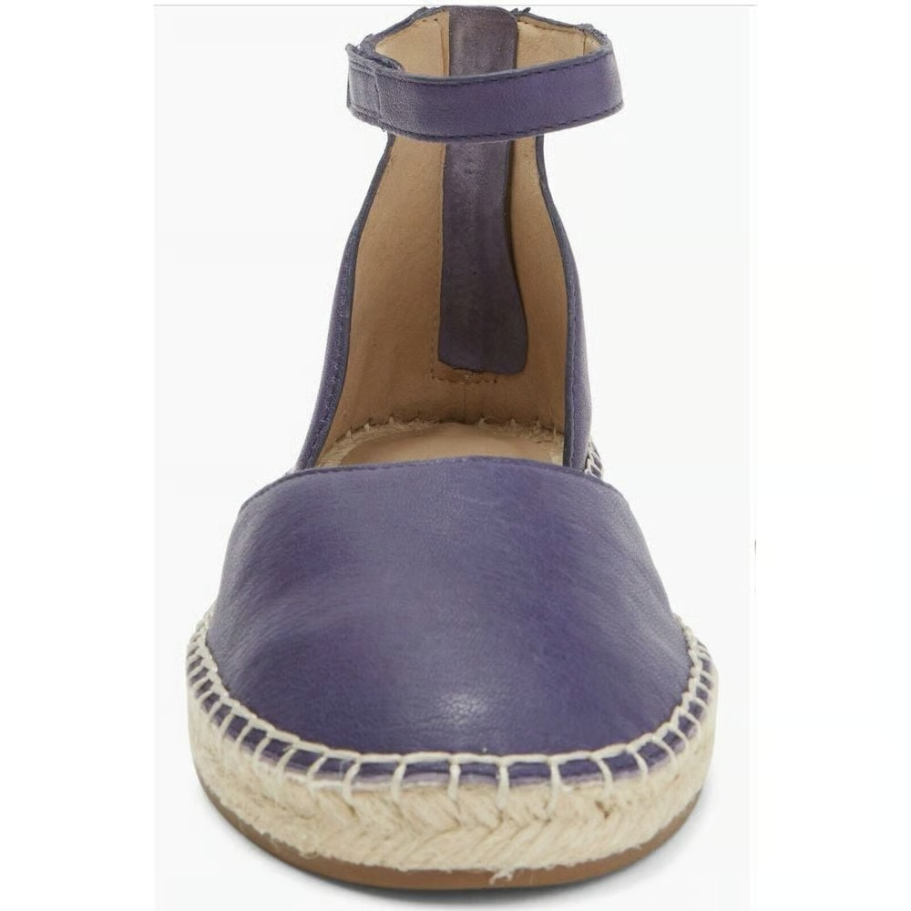 Eileen Fisher Woman's Lala Espadrille Flat Sandals Purple, Size: 7.5 M Authentic Guaranteed A slender ankle strap provides a comfortable fit on an espadrille-inspired flat fashioned with a leather upper and jute-wrapped midsole. Leather upper/synthetic lining/rubber sole Imported
