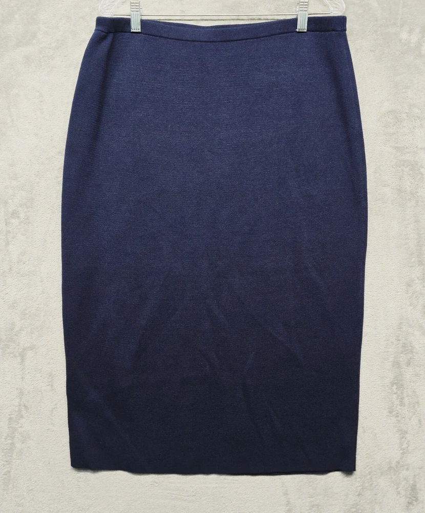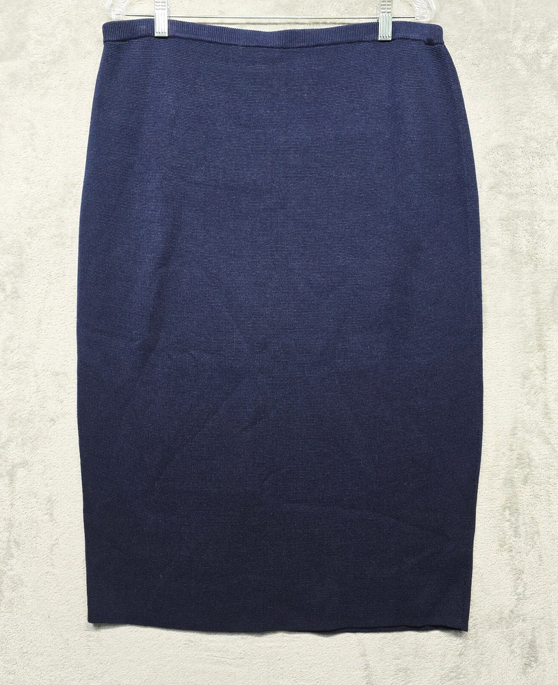 Eileen Fisher Skirt Womens Sz Large Blue Silk Organic Cotton Interlock Pencil. The original care and content tags have been removed (see photo). Condition is Used. Measurements are approximate. Please measure your favorite garment and compare to ensure a proper fit. Please see all photos for what you will receive. Thank you for looking!