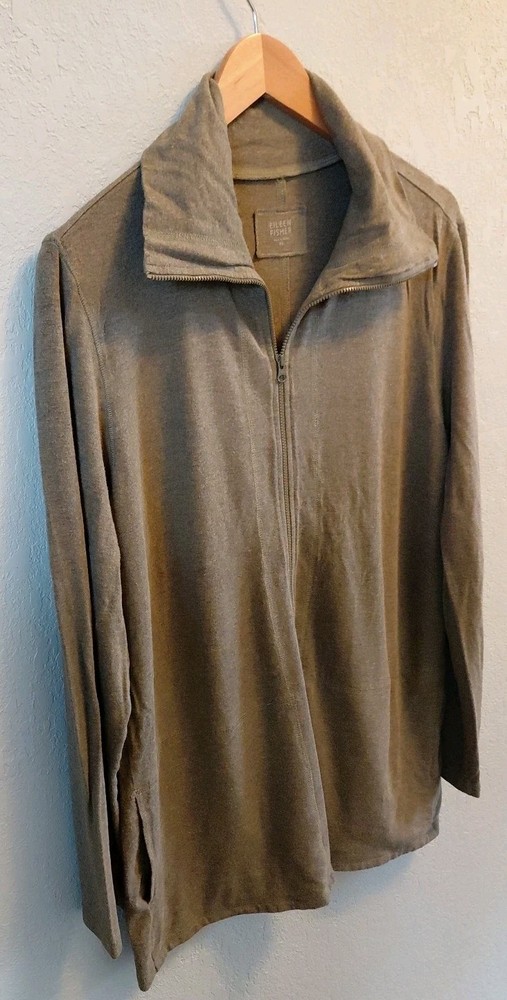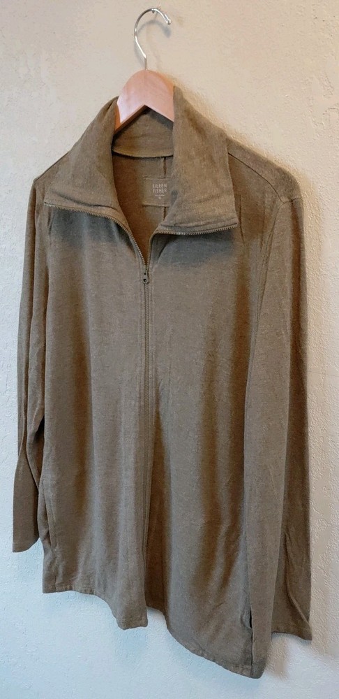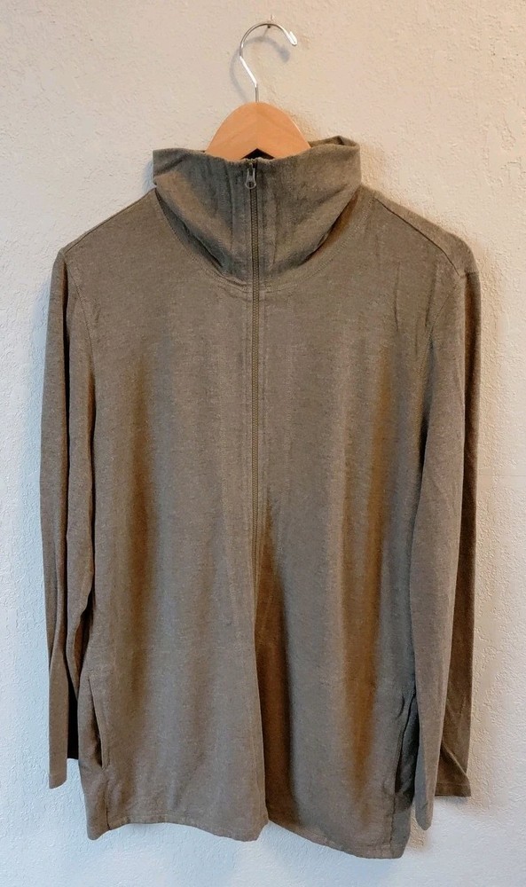 Eileen Fisher Women's Size XL Green Mock Neck Full Zip Long Sleeve Sweatshirt