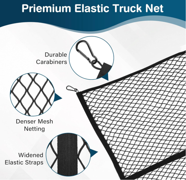 Cargo Net for Pickup Truck Bed, High Elastic Cargo Net with Fine Mesh and 8 Metal Hooks, Stretches from 4'×4' to 7'×7', Ideal for Most Vehicles and Boat, Truck Bed Netting for Cargo Secure Transport Size 4'x4' Vehicle Service Type ATV, Van, Car, UTV, Truck, Boat Material Nylon Color Black Brand Upitay About this item UNIVERSAL FIT, ROCK-SOLID HOLD - With 8 tough metal carabiners and a super sturdy 1"x1" mesh, this cargo net for pickup truck bed is like a safety blanket for your stuff. Even on the roughest roads, this truck bed cargo net holds everything tight, keeps your cargo tightly secured—no shifting, no spills, just peace of mind. SO EASY, ANYONE CAN USE IT - Forget about struggling with complicated tying and knotting! Our truck bed net has a simple locking system that makes securing your load a breeze. Just hook it up, lock it in place, and you’re good to go. Loading up has never been quicker or simpler! PREVENTS CARGO COLLISIONS, REDUCES NOISE DURING TRANSPORT - Whether you drive a pickup truck, a trailer, an SUV, or even an ATV/UTV or a boat, this truck bed netting for cargo has got you covered, always keeping your cargo safe and secure. PERFECT SIZE, LIGHTWEIGHT YET DURABLE - The roof rack cargo net is stretchy enough to cover most thing, particularly well for securing loose items, ideal for for daily use without adding bulk. A GIFT THAT’S ACTUALLY USEFUL - Looking for the perfect gift for an outdoor lover? This truck net is something they’ll actually use. It’s great for birthdays, holidays, or Christmas—give it to your dad, your partner, or your friends, and they’ll thank you every time they hit the road! . We offer FREE shipping on all orders! . We ship within Five business days of payment, usually sooner. . We use a selection of shipping services such as UPS, FedEx, USPS etc. . We only ship to the lower 48 states, no APO/FPO addresses or PO Boxes allowed. . Local pickups and combined shipping options are not provided at this time. . Your satisfaction is a wonderful reward for our efforts. Please assist us by leaving a positive review if you feel pleased with our service. . In the event that you encounter any difficulties related to your order, please do not hesitate to reach out to us directly through the Messaging system on the Ebay platform. Kindly consider opening a COMPLAINT or a RETURN REQUEST as a last resort, only after all other possible measures have been attempted and we have been unable to provide you with assistance. . We will get in touch with you within 24 hours and make every effort to ensure your satisfaction. . Please rest assured of our service quality.
