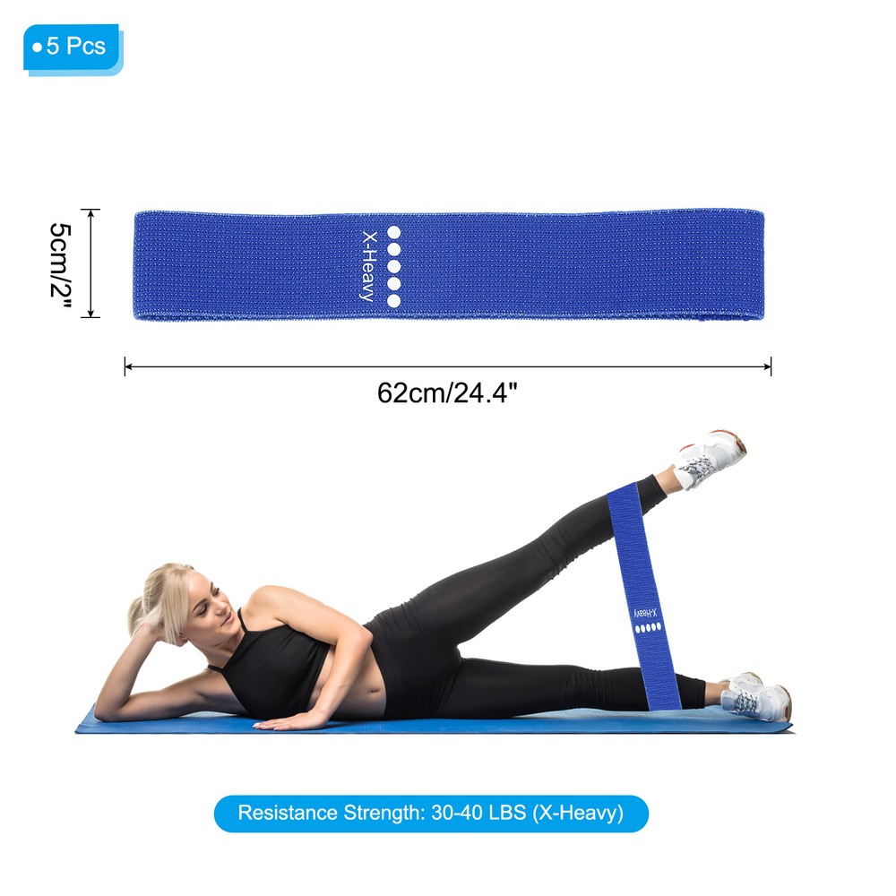 Elastic Fabric Resistance Bands X-Heavy Dark Blue 5-Pack for Workouts