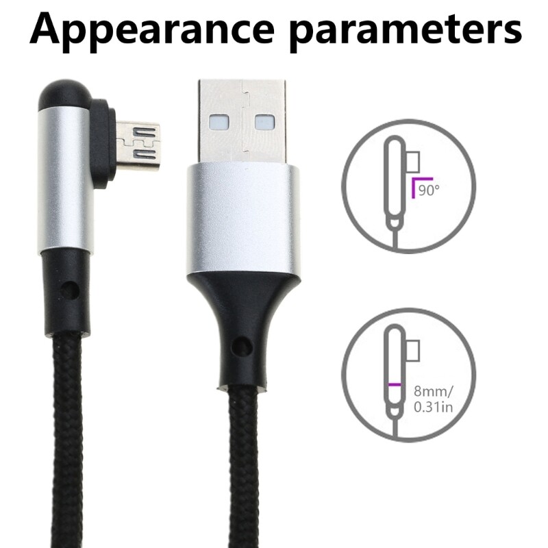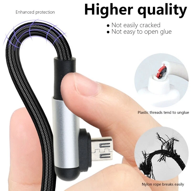 Elbow Data Cable USB Male to Micro USB Male Nylon Braided Phones Charging Cord