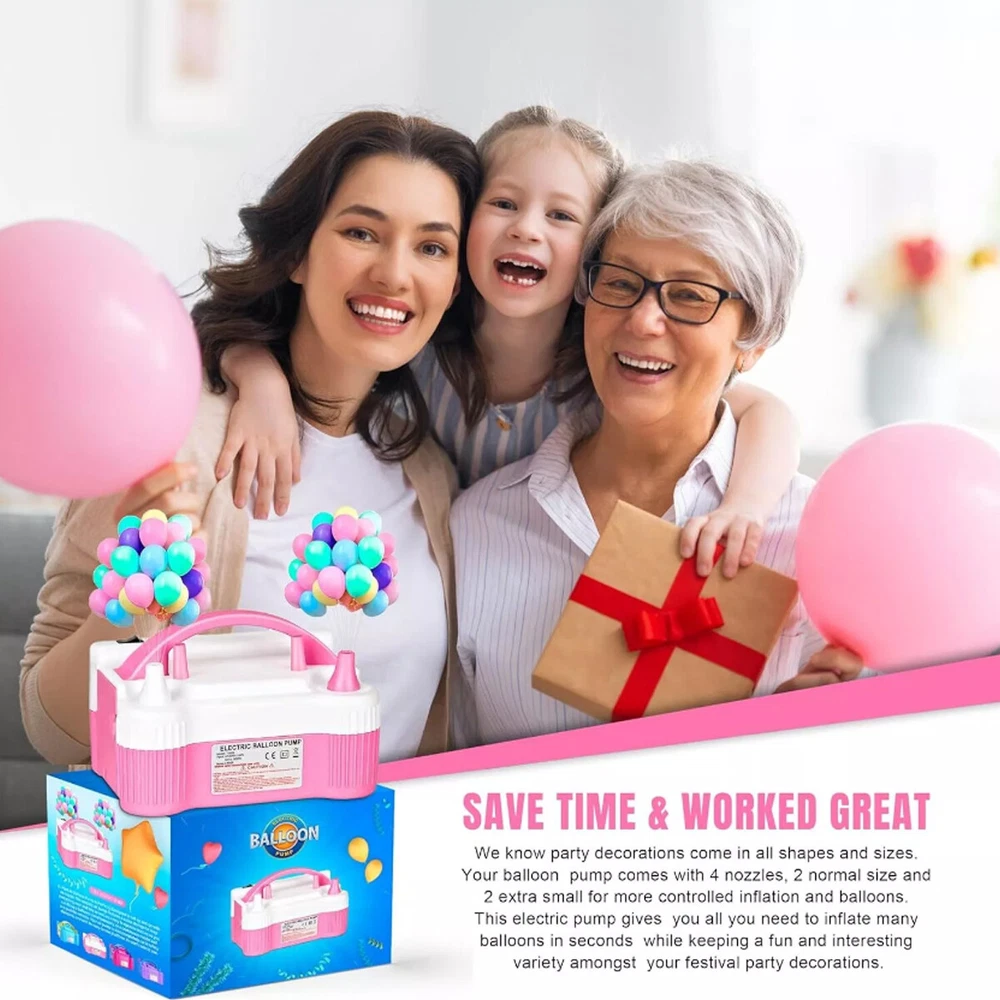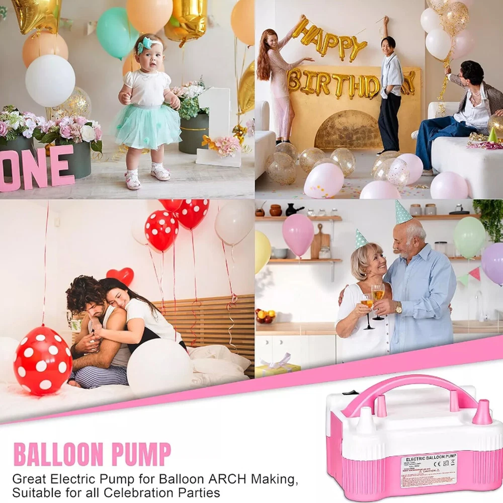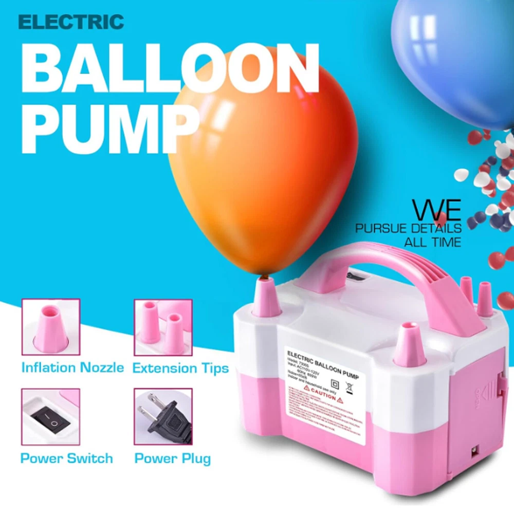 Electric Balloon Inflator Air Pump Massive Balloons Blower Dual Nozzle US PLUG Product Description CHOKING HAZARD – Children under 8 yrs. can choke or suffocate on uninflated or broken balloons. Adult supervision required. Keep uninflated balloons from children. Discard broken balloons at once. About this item: Versatile Package: This balloon pump kit contains 1 pink electric balloon pump, 2 tying tools, 2 balloon strips, 2 point tapes and 10 flower shape clips. The color is fashionable and these balloon accessories are all useful to make balloon decorations. Portable Design: Color: pink and white. Size: 7.9 x 5.3 x 5.7 Inches. Input voltage: 110 - 120V. Frequency: 50Hz. Power: 600W. Inflation Rate: 750 (L/min). Two Operation Modes: The electric balloon pump is easy to use, just connect the power and you could get started. It has 2 inflation modes. The automatic mode inflates faster, while the semi-automatic mode provides good control over the inflation speed. Safe to Use: This electric balloon pump features a 110-120V UL-Listed plug and was tested to be safe for a smooth and safe balloon-blowing experience. Wide Applications: This balloon electric air pump is applicable in all balloon decoration occasions, such as birthday parties, baby showers, weddings, graduation ceremonies, festivals, and other party decorations. But please be noticed the air pump fills the balloon with air, not helium. Packing list: 1x Electric Balloon Pump with Plug 2x balloon strips 2x point tapes 2x tying tools 10x flower shape clips H azard warnings : Children under 8 years old may choke or suffocate from uninflated or ruptured balloons. Adult supervision is required. Stay calm Payment Delivery details Terms of salas About us Contact us Payment We accept major credit card payments via Paypal. Payment must be received within 7 days of auction closing date. If you do not contact us or respond to our email within 7 days of auction closing date, we do not guarantee the item availability. We reserve the right to cancel any unwanted bids. Delivery details Flat rate shipping charge will be applied to the 48 continental USA States. Extra shipping fee will be charged to ship item(s) to HI, AK, PR, GU, VI, APO, FPO . Item(s) will be shipped via UPS Ground, UPS or USPS within 3 Business days after payment is received. A Tracking Number will be updated as soon as item(s) is shipped. Item(s) will be shipped to your Paypal confirmed address. International buyers please note, we are not responsible for any custom duties, taxes and brokerage fees. For some oversize packages, we may not be able to ship via USPS. Terms of salas All of our items are professionally made and guaranteed to fit. A brief installation manual and hardware included. A professional installation is always recommended. Please send a message over eBay if you have any questions. We accept returns within 60 days after you received the item(s). All returned items must be new and in original package. The buyer will pay return shipping fees. No refund will be made for damaged parts. Shipping and handling fees and insurance fee are not refundable. About us We are specialize in research,development and production of high-quality aftermarket car and truck accessories.We are especially professional on roof cargo management,Our mission is to help carry your load by providing the roof racks that makes it easy to get what you need to your destination. Contact us Your satisfaction is our top priority. We stand behind all products that we sell. If you have a problem with any of our listings, please allow us to work it out. Our business times are Monday-Friday 9:00- 5:00 Pacific Time. Office closes on weekends and holidays. We are striving to earn a 5- star rating with every purchase. Please take a moment to leave us a positive feedback when you receive your order. If you are not satisfied, please let us know before you leaving feedback. Please always include your purchase eBay item number in the mail whenever you have any questions. Copyright © 2023 Dianxiaomi