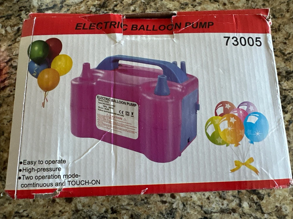 Electric Balloon Pump 73005 , Air Pump, AC110V-120V, Tested Works. Shipped with USPS Ground Advantage. CHOKING HAZARD – Children under 8 yrs. can choke or suffocate on uninflated or broken balloons. Adult supervision required. Keep uninflated balloons from children. Discard broken balloons at once.