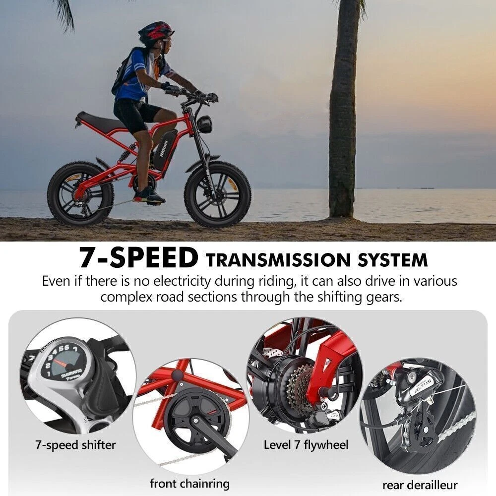 无标题文档 Electric Bike Fat Tire Adults 12OOW Motor 48V 20Miles/h Bikes Bicycle Motorcycles US Powerful Motor & 7-Speed Electric bike for adults equipped with a powerful 48V 12OOW high-speed brushless motor, which adds stronger climbing ability and a top speed of 20MPH. With 7 level speed Gear, our ebike will take u anywhere freely whether it’s snow, beach, mountain or city roads. Larger Capacity Battery 48V 15Ah high-capacity battery can travel 28-34 miles per charge in pure e-bike mode and 34-58 miles in assisted bike mode. Long battery life takes you farther.The non-removable battery avoids the risk of theft. Ride it and enjoy your leisure time instantly. Free-locking shock absorption Equipped with durable free-locking front suspension and under-seat shock-absorbing suspension, the Adult Electric Bike provides a smooth ride even on rough roads. The electric mountain bike comfortably adapts to all kinds of roads and has good shock absorption to effectively resist the impact on your body. Maximum load capacity is 330 lbs. LCD Display In this bicycle electric,you can easily keep track of the driving speed and mileage, as well as the remaining battery power at all times so you can avoid running out of power. The gear up/down buttons are used to set the gears, and the horn and light button on the handle provide further protection. Dual Disc Brake & Offroad Tire The electric dirt bike for adults is easy to ride uphill, downhill or pure acceleration. Dual front and rear disc brakes provide good braking capacity. The tires are made of anti-skid and anti-explosion materials. The tread pattern on the surface of the tires is anti-skid and wear-resistant, with strong grip and puncture resistance to ensure safe driving. Easy to Install & Considerate Service The ebike arrives 85% assembled. With detailed instructions and installation tools, you can easily complete the installation. We will provide half or 1 year warranty for different bicycle parts. Built to Accommodate A Generous Range of Rider Heights and Sizes. The Hidoes B16 electric bikes are some of the best ebikes on the market. They offer riders the superior performance, greater stability, and a longer lifespan than other electric bikes. In-house designers engineered the frame for enhanced ergonomics, solid handling, and an ideal fit for riders at the bottom end of our height recommendation range. The Hidoes electric bike is ideal for riders 5'3” to 6'5”, and up to 330lbs. Package Contents: 1 x Charger 1 x User Manual 1 x B-6 Electric bike Main specification Model B-6 Tire Size 20 inch(20" x 4.0" Fat Tire) Battery 48V/15.6Ah Tyre Type Off-road Air tires Power 700W(1200) Charging time 6~8 hours Display Screen Color Frame Material iron&Aluminum alloy Max Speed 31KM/H(20MPH) Net Weight 43KG Range 30-40KM Gross Weight 50.7KG Max Load 150KG Package Size 150*31*79cm Break Front and rear hydraulic disc brakes Light Front LED headlights and tail lights Adapter Input 100-240 V~50/60Hz 2.5A, Output 54.6 V 2.0A Maximum load and speed may vary depending on the rider's weight, riding style,temperature and terrain. Our product: (1) Our product approved by CE/ROHS certificates and Samsung lithium battery be used on. (2) Every piece of spare part will be inspected before assembling and very piece of completed product will be tested before shipment. Contact US (1) Welcome to wholesale and purchase,If you have any question ,Please contact us first. We will reply you within 24 hours. (2)We will leave positive feedback to buyer as soon as buyer pays for the item.We hightly appreciate that you can contact with us before you leaving Negative feedback or Neutral feedback .We will offer help to resolve your problems as fast as possible. The item is UL 2849 certified with a link to the UL Product Payment We accept eBay managed Payments We offer FREE & FAST DELIVERY on all orders! We deliver within 3 business days of payment, usually sooner. Shipping We offer FREE & FAST DELIVERY on all orders! We deliver within 3 business days of payment, usually sooner. We use a Delivery services such as Fedex. Free Return the product you return in the same condition you received it and in the original packaging as far as possible. Do not damage the packaging of the product and try to keep the original packaging for easy return. If you need to return the item, you can contact us directly and we will provide a prepaid return label. If the product cannot be operated, please contact us directly and we will provide relevant tutorials and videos. We would appreciate you letting us know of any problems.