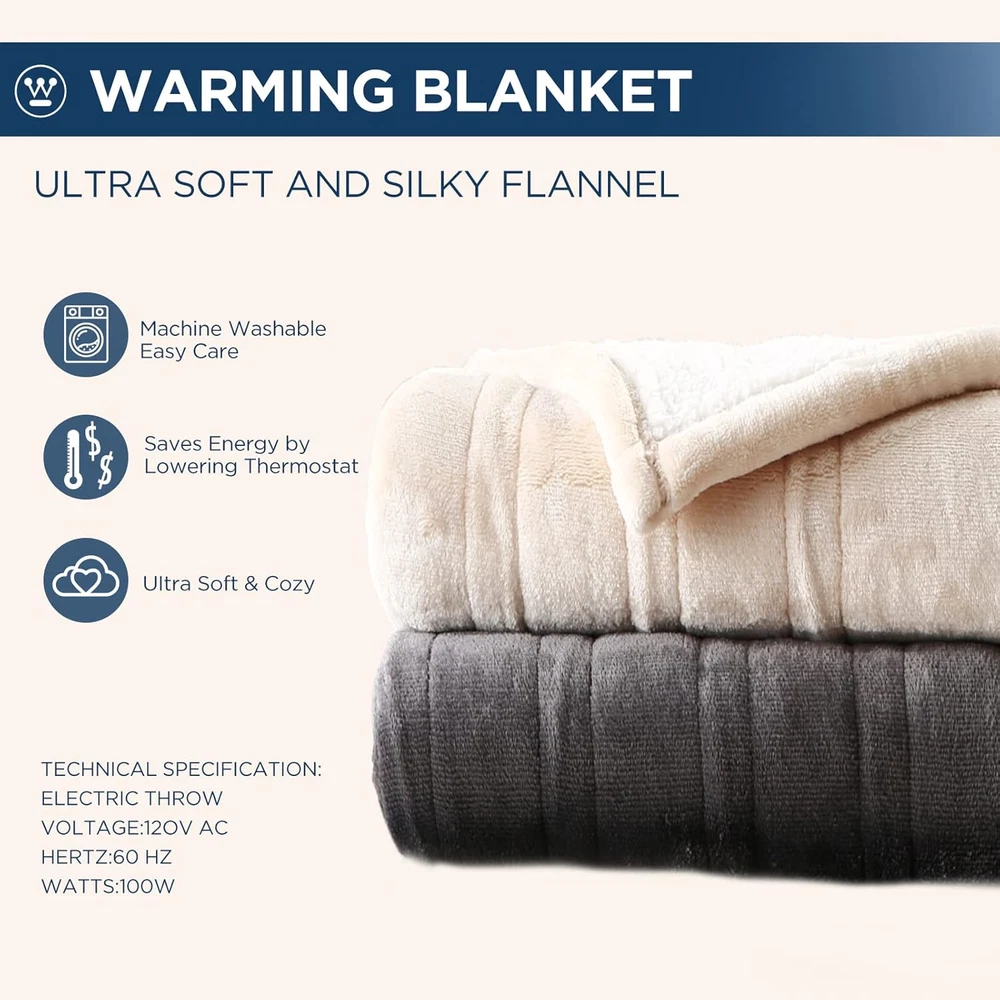 Store New Arrivals Add to Favorite View Feedback Contact Electric Blanket Full, Heated Blanket Full Size with 10 Heating Levels and 1 to 12 Hours Heating Time Settings, Flannel to Sherpa Reversible, Machine Washable (80" X 84", Charcoal) Description Item model number WH-HSF80-CHARCOAL-C Style Modern Weave Type brushed weave Number of Items 1 Pattern Solid Country of Origin China Blanket Form Single Layered Blanket Theme Plain Unit Count 1.0 Count Product Dimensions 84"L x 80"W Material Sherpa Age Range (Description) Adult Seasons Winter Item Thickness 3.94 Inches Model Name WH-HSF80-CHARCOAL-C Water Resistance Level Not Water Resistant Fabric Type Flannel to Sherpa Item Weight 3 pounds Special Feature Skin Friendly Fabric Warmth Description Heavyweight Sport Camping Color Charcoal Recommended Uses For Product Working, Reading, Napping Included Components user manual, heated blanket Product Care Instructions Machine Wash Size Full 80"x84" 【Quick and Consistent Warmth】 Westinghouse electric blanket features high-quality heating wires, densely and evenly distributed throughout. This ensures rapid warming and consistent, comforting heat. 【Soft and Cozy Fabric】 Our heated blanket features a dual-sided design. One side is crafted from ultra-soft and silky flannel, while the other features cozy sherpa fleece for warmth and excellent insulation. 【Easy Operation and Cleaning】 Our heating blanket features a user-friendly controller with 12-hour timer settings and 10 heat levels. For easy cleaning, simply unplug the controller and machine wash the blanket. Always turn off and unplug when not in use. The auto shut-off is designed to complement manual shut-off. 【Reliable Safety】 Our heated blanket features overheat protection system to ensure your safety. It is also ETL and FCC certified, providing peace of mind as you enjoy its comforting warmth. Sleep soundly knowing your safety is a priority. 【Versatile Use】 Westinghouse electric blanket is perfect for use at home, in the office, on the bed, on the sofa, and more. Enjoy its warmth and comfort wherever you need it. We provide good after-sales . If you have any issue, we're always here to help you. Product Description The video showcases the product in use. The video guides you through product setup. The video compares multiple products. The video shows the product being unpacked. 1 SMART CONTROLLER 2 4 LAYER CORE PROCESS 3 COMFORTABLE FABRIC ABOUT US We offer the best prices around on high quality products. Our E-store includes media such as books, movies, music and games while offering electronics, toys, sporting apparel, clothing, tools, general home, garden items and more. SHIPPING We are always working hard to ensure your package arrives as soon as possible. Please understand that some factors like weather, high postal traffic, and the performance of shipping companies are outside of our control. We offer free shipping to the lower 48 states and ship within 2 business days of payment, usually sooner. We do not accept P.O. Boxes. Please provide a physical address. For shipping outside of the continental USA, we only use eBay's Global Shipping Program.The item is shipped to KY and then sent to the rest of the world. International customers are responsible for all duties and taxes. Continue to check out in order to calculate costs for shipping the item to your country. Messages regarding eBay's Global Shipping Program MUST be directed at eBay EXCLUSIVELY. RETURNS We offer a 30-Day Return Policy on items which you are not completely satisfied with. You have the option for a full-refund or an exchange of the item. No returns are available on items shipped outside of the USA. PAYMENT We accept PayPal. CONTACT US This page content is yet to come Please ad us to your favorite seller and visit again later Thank You CUSTOMER SATISFACTION We try our very best to make sure every customer is completely satisfied. If there's a problem, message us! We're happy to help. WE ACCEPT Copyright © 2021 AutoDS. | All Rights Reserved