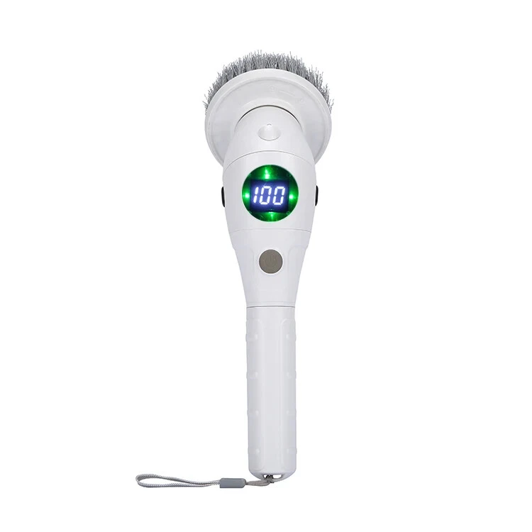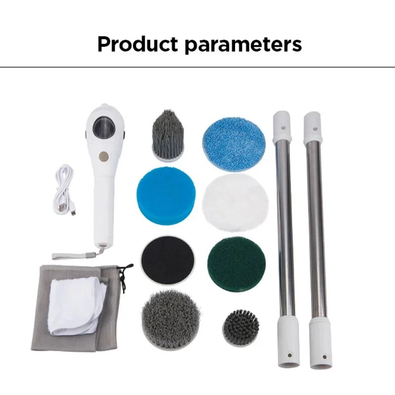 8 in 1 Cordless Powerful Spin Cleaning Brush (with LED Night Light , 3 Speed Control , Battery LED Display) Feature: 1. Suitable for cleaning the entire house . The parts of the multifunctional washing machine can be assembled as required, which is suitable for home cleaning. 2. The rechargeable electronic function is not restricted by the power cord after cleaning, and the cleaning range is wider. 3. The special brush head can clean the bathroom, faucet and other dirt problems, and the corner brush can penetrate into every corner and space. 4. The main unit can be connected to an extension pipe to easily clean the ceiling and tall furniture. 5. The accessory brush head can be cleaned different type area easily and clearly after use. 6.With LED night light design even dark corner also can be clean 7.The three speeds can be adjusted freely,more easy to clean . 8.LED screens can better show of battery power level and speed level Specification Weight with packaging: 1kg Packing size: 44.3x18x8.5cm Battery capacity: 2500mAh Working time: about 90 minutes Charging time: about 4-5 hours Material: environmentally friendly ABS with stainless steel Packing list Host *1 Telescopic pole*1 Sponge tray*1 Polyester tray*1 Fiber tray*1 Large flat brush*1 Fixed tray* 1 Wool tray*1 Pointed brush head*1 Small flat brush*1 Small Mops*1 Storage bag *1 Charging cable*1 Manual *1