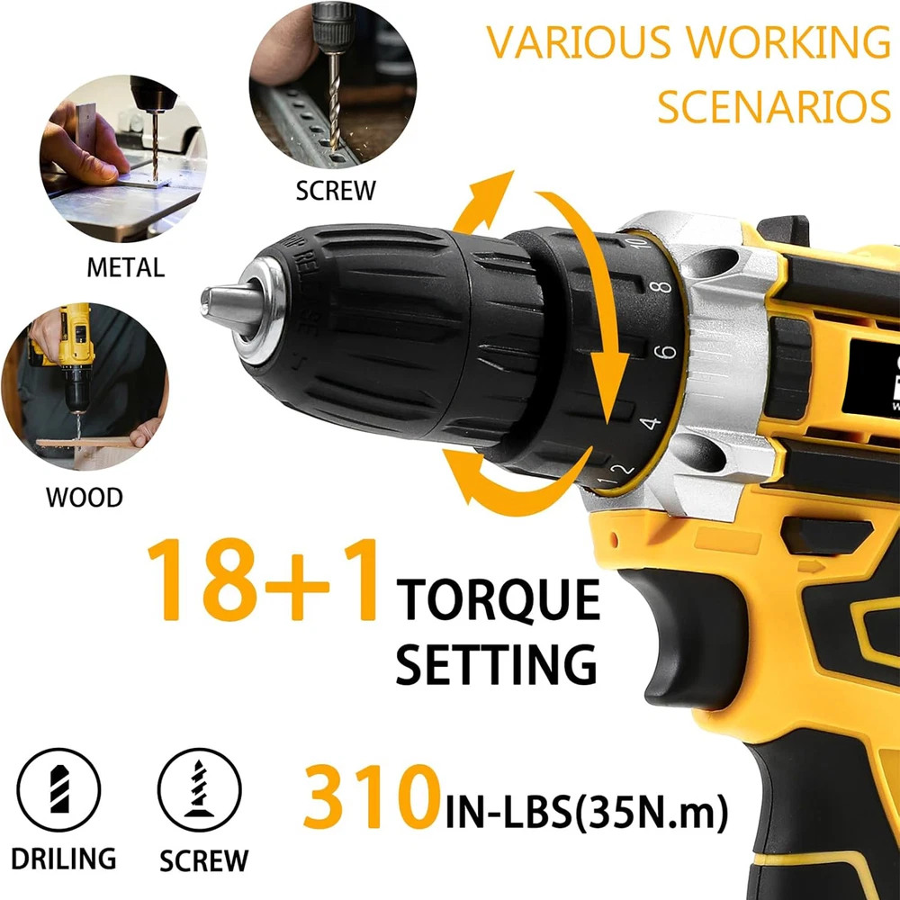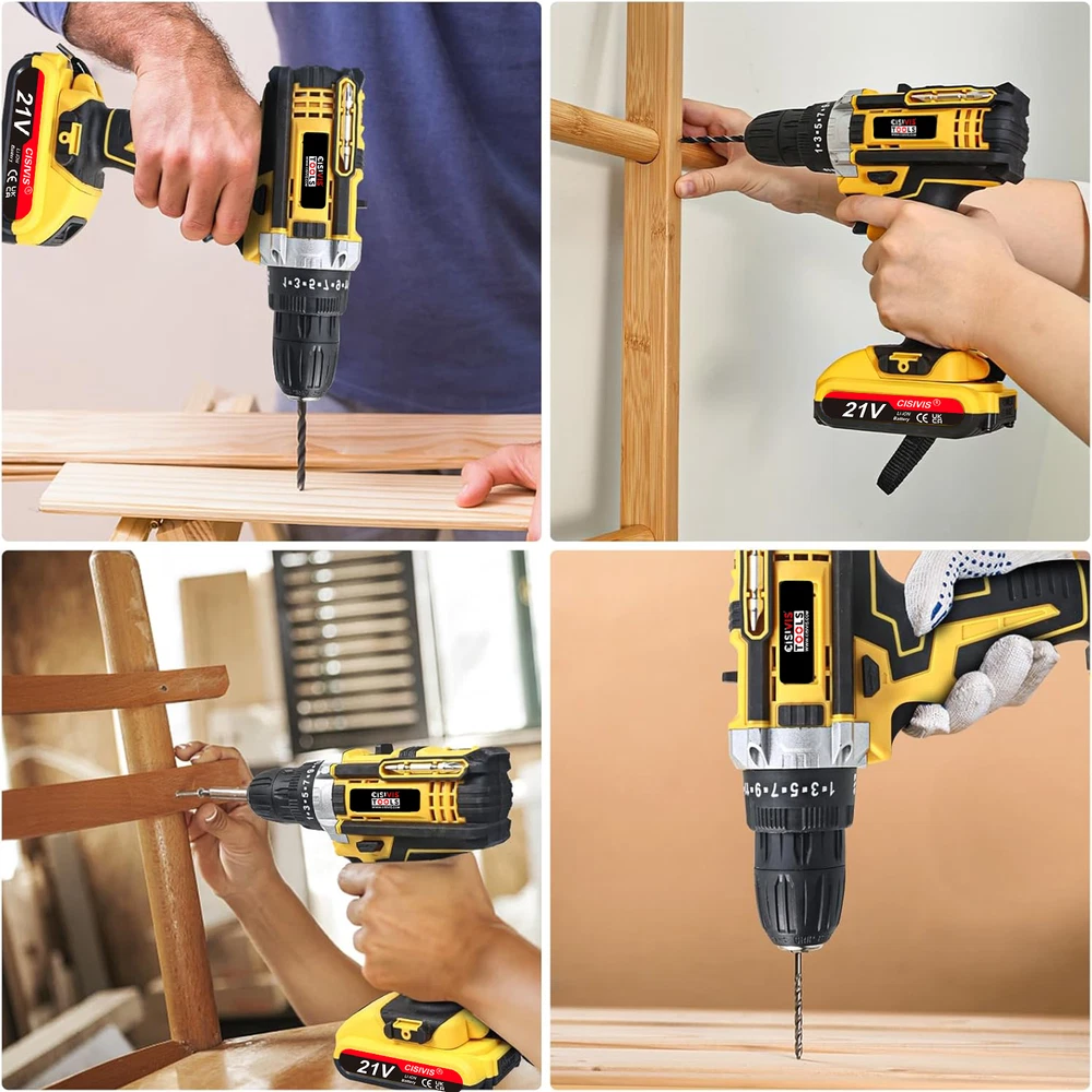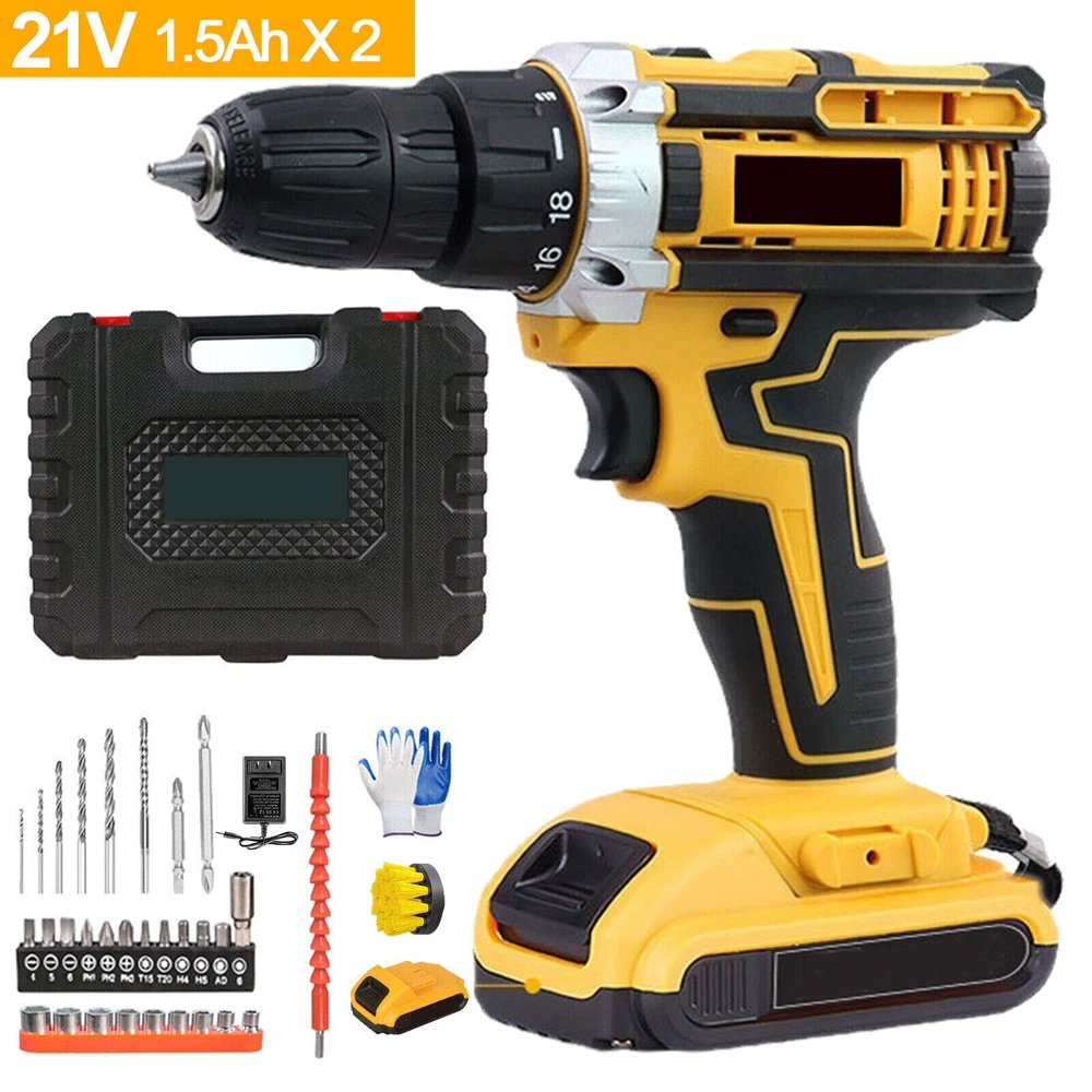 HomeElectric Cordless Drill 21V Adjustable Drill Driver Set Battery Home US Stock