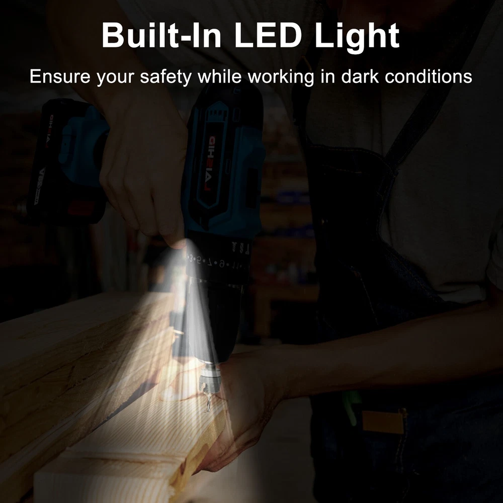 GOOD QUALITY Featured Item Product Detail Image Gallery Product Description Overview: Our electric cordless drill set includes accessories such as a flexible shaft, extension bar, ad holder, drill bits, sockets, screwdriver bits, batteries and charging adapter, all organized in a sturdy storage case. Equipped with 2 variable speeds and 265In-lbs of maximum torque, our cordless drill a must-have high-performance tool for drilling wood, metal, plastics, bricks and so on. 25+3 adjustable torque settings allow you to customize the torque and speed for various applications Powered by 2 included 28V 1200mah rechargeable batteries, this cordless drill driver offers up to 60mins working time per battery. Moreover, the LED working light on the soft-grip handle ensures your safety during dark conditions. This electric cordless power drill set is a must-have tool for home craft projects and handmade creations. Features: High-Performance Drill With 2 Variable Speeds: This high-performance power drill driver comes with 2 variable speeds(220-1500rpm) and 265In-lbs of maximum torque,providing precise control,efficient working and low noise for drilling wood,metal,plastics,and all screw driving tasks at home. A must-have and labor-saving replacement for who loves making craft projects and handmade creations! 25+3 Position Clutch & 265In-lbs Torque: 25+3 adjustable torque settings allow you to customize the torque and speed according to various applications. Additionally,this feature helps to reduces the risk of over-driving screws,thereby ensuring efficient and damage-free work every time and preventing damage to the piece or the drill,like sinking too deep,stripping out the head,or even breaking the screw shaft. 2Pcs 28V Long-Lasting Batteries: Powered by 2pcs included 28V 1200mah rechargeable battery,this cordless drill driver offers a convenient mobile usage experience,eliminating the hassle of cords and restrictions. Each battery offers up to 60mins working time,making sure you can finish the job smoothly while included charging adapter achieves conveniently recharge. Note:Please take off the battery while charging. Ergonomic Design & Comfortable Grip: Designed with 1Pcs LED beads on the soft-grip handle,it will automatically light up your target screw when you activate the trigger,ensuring your safety in dark conditions. Moreover,the change switch of rotate direction on the ergonomic handle meets both tightening and unscrewing demands,the right bulge is counterclockwise and the left bulge is clockwise. 24Pcs Drill Bits With Storage Case: Our electric cordless drill set includes rich accessories:1x flexible shaft,1x extension bar,1x ad holder,6x drill bits,9x sockets,6x screwdriver bits,2x batteries and 1x charging adapter. All the accessories are safely and securely organized in the sturdy storage case,preventing any unnecessary damage or lost. Specifications: Brand: iMounTEK Product Type: Electric Cordless Drill Set Material: ABS Color: Blue Adapter Voltage: 100-240V 50/60Hz Power Supply: Included 28V 1200mAh Rechargeable Battery *2 Per Battery Charged Time: 2-3H Per Battery Runtime: 30-60Mins (According to speed) Speed Level: 2Levels(220-1500RPM) Adjustable Clutch: 25+3 Torque Settings Fit For Chuck: 0.8-10mm; 3/8"—24UNF Item Size: 21x22x6cm/8.26x8.66x2.36in Item Weight: 810g/1.91lbs Package Size: 31*27*9cm/12.2*10.63*3.54in Package Weight: 2321g/5.12 lbs Package Contents: 1x Cordless Drill 1x Flexible Shaft 1x Extension Bar 1x AD Holder 6x Drill Bits 9x Sockets(4/4.5/5/6/7/8/9/10/12MM) 6x Screwdriver Bits (CR-VPH1; CR-VPH2; CR-V3; CR-V4; CR-V6; CR-V7) 2x Batteries 1x Charging Adapter 1x Storage Case 1x User Manual Terms & Conditions Thank you for your business !