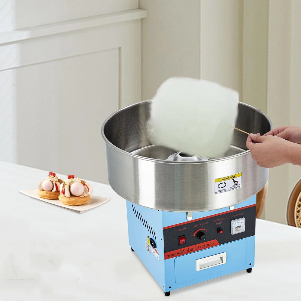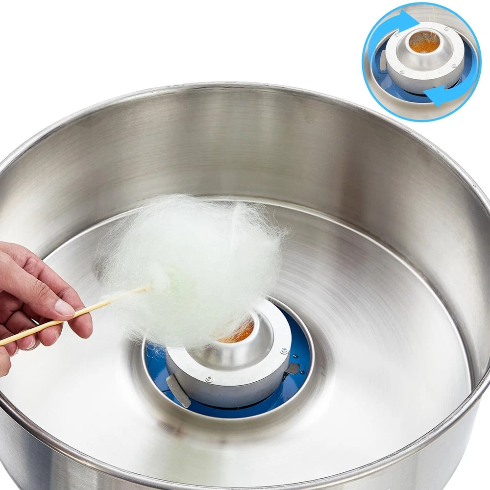 Commercial Cotton Candy Machine 1000W for High Output:Meet your commercial cotton candy production needs with our powerful 1000W commercial cotton candy machine. Designed for high output demands, this machine features a larger candy bowl that ensures rapid cotton candy cone production. Capable of producing 6 cotton candy cones per minute, it is perfect for satisfying large crowds at carnivals, parties, and events. With the ability to operate continuously for 1 hour without blockages or shutdowns Precise Temperature Control for Perfect Cotton Candy:Experience precise control over the cotton candy-making process with our electric candy floss maker. Unlike standard machines, our model boasts a voltage meter and temperature control knob, allowing you to adjust the temperature from 149℉ to 473℉ effortlessly. This feature is especially handy when experimenting with different flavored sugars, ensuring that you achieve the ideal consistency and taste with every batch of cotton candy. Effortless Operation and Convenient Features:Enjoy a hassle-free cotton candy-making experience with our user-friendly machine. Simply turn on the power, adjust the temperature as desired, and warm up the machine for 5-6 minutes. Once it's ready, pour sugar into the spinning head, and use the included sticks to collect freshly spun cotton candies. Versatile Candy Options for Creative Creations:Unleash your creativity by using a variety of candies with our cotton candy machine. Whether you prefer traditional flossing sugars, milk sugars, fruit cubes, or hard candies, this machine accommodates various types, allowing you to experiment with different flavors and textures. Create delectable cotton candies that cater to different tastes and preferences, making it a hit at any gathering or event. Safe and Reliable Performance :Rest assured of safe and reliable performance with our certified cotton candy machine. Additionally, the machine features a clear plastic cover that allows onlookers to observe the cotton candy-making process while keeping them safe from any potential hazards. Whether you're hosting a party, or event, this commercial cotton candy machine is your go-to appliance for creating sweet, fluffy treats that everyone will love.