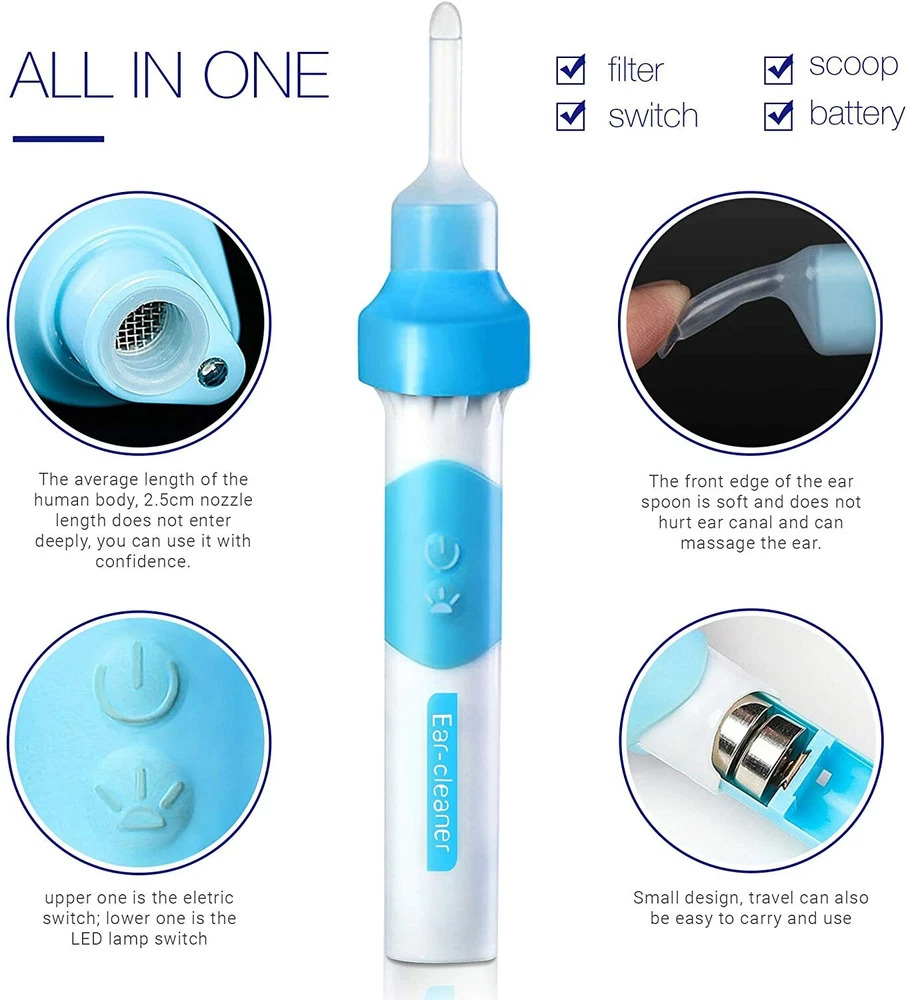 Ear Wax Removal Kit, Ear Cleaner, Electric Earwax Removal Tools for Adults and Kids Vacuum Ear Cleaners Soft Silicone Automatic Earwax Removal Kits with LED Light Powerful Suction for Easy Cleaning
