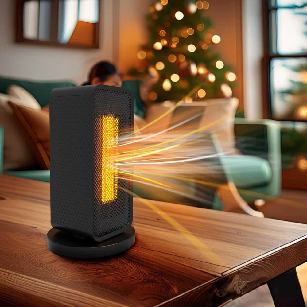 ✅ [3 Heating Modes] Switch the knob to: 1) high-power heating mode (1200w), will instantly heat your chilly space up and make you feel the warmth in max. 3s; 2) economic heating mode (600w), heats gently to keep the warmth and coziness while saving your energy bill; 3) fan-only mode, provides breeze only – perfectly satisfy your requirements for air circulation boost without heat. ✅ [90° Oscillation] Evenly distribute the heat to a wide area of your room. Share the warmth with your family. Feel free to move in your bedroom, living room, dining room, or garage. No constraints caused by uncovered heating corners in the room. Good atmosphere for a small party. ✅ [Anti-Tip & Overheat-Proof] UL & RoHS certified. The integrated tip-over switch immediately cuts power off if the heater is knocked askew, preventing potential fire hazards. Overheat protection diligently monitors internal temperatures to prevent circuit damage or overloading, which frees your worries about unattended energy consumption or dangerous situations. ✅ [Energy Saving] Wattage: 600W / 1200W. Will not overload the circuit. Perfect for small spaces up to 60㎡ (646ft²) (ideal heating effect for: 20㎡, namely, 216 ft²). With a built-in precise temperature sensor, it can quickly heat your office cube or bedroom while consuming 20% less energy than traditional heaters, bringing cozy warmth to those living in mild climates. ✅ [Hands-on Control & Compact] The top-mounted knob switch, accompanied by vivid icons precisely positioned at each gear, enables straightforward, pure mechanical, and accurate operations. More durable and reliable. Intuitive to users of all ages. Space saving design with dimensions – Height: 28.5cm (11.22”), Width: 16cm (6.3”), Depth: 16cm (6.3”).