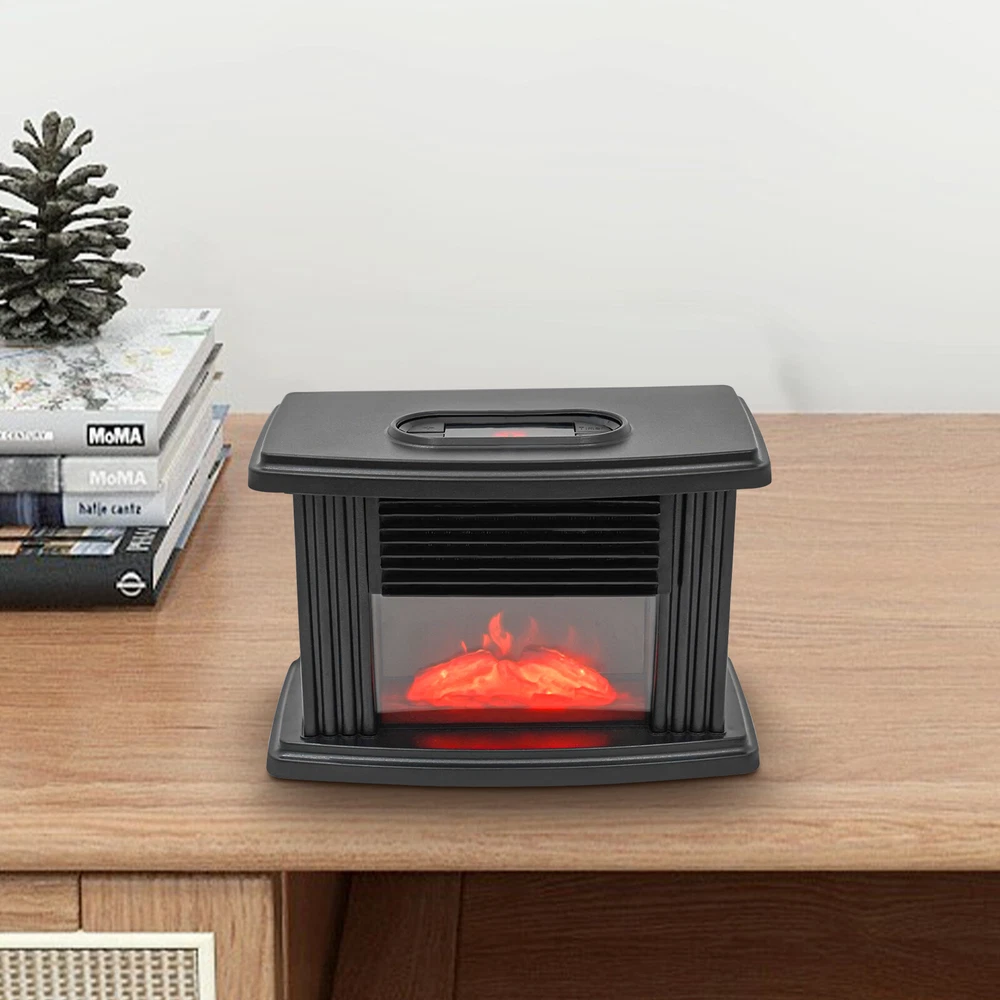 Specifications Material: ABS Color: Black Style: Country Rustic Installation Type: Freestanding Voltage: 110 ~ 220 V Power: 1000W Applicable Area: Less Than 10m²/107.63ft² Heating Mode: Aluminum Heat Dissipation Type Speed Regulating Gear: Third Gear Adjust Temperature: 15-32°C/59-89.6°F TimingRange: 1-8H Product Size: 22.3*12.5 *14.5cm/8.77*4.92*5.7in Packing Size: 22*12*14cm/8.66*4.72*5.51in Weight: 1kg/2.2lbs Package Included 1* Electric Fireplace Notes Please allow the slight color difference caused by the shooting light and 1-3cm error due to manual measurement, and make sure you do not mind before you order. Application It is suitable for living rooms, bedrooms, basements, RVs, garages, apartments, offices, hot yoga studios, etc. It is suitable for spaces up to 10m²/107.63ft². High-quality Material: The housing is made of high-quality ABS material, which is strong, wear-resistant, anti-aging, and impact-resistant, ensuring a long service life. Meanwhile, ABS housing has a good heat insulation effect, so even after several hours of use, the housing can still stay cool to prevent burns. 3D Carbon Fire Technology: It adopts 3D simulated carbon fire heating technology, replicating the effect of burning charcoal fire, with comfortable warm air diffusion, giving you the same comfort as a real fireplace, as well as enhancing the natural luxury of home decoration. User-friendly Design: This heater solves the problem of traditional fireplaces requiring installation and also avoids the hassle of messy ashes from wood fires. It is more energy efficient and convenient than traditional wood, oil or gas fireplaces, allowing you to enjoy hot air by simply connecting to the power source and flipping the switch. Compact and Lightweight: It is compact and lightweight(2.2lbs), so you can easily move it to any room to keep it warm. Its compact size doesn't take up much space and can easily fit in a small corner. Safe to Use: Since it is free from the mess and smoke of a real fire and does not emit any harmful by-products, it is safe for use around the elderly, children, and pets. Also, it is designed with an overheat protection function, which will automatically shut down when the temperature is too high to avoid accidents. The tight air inlet and outlet can avoid finger insertion.