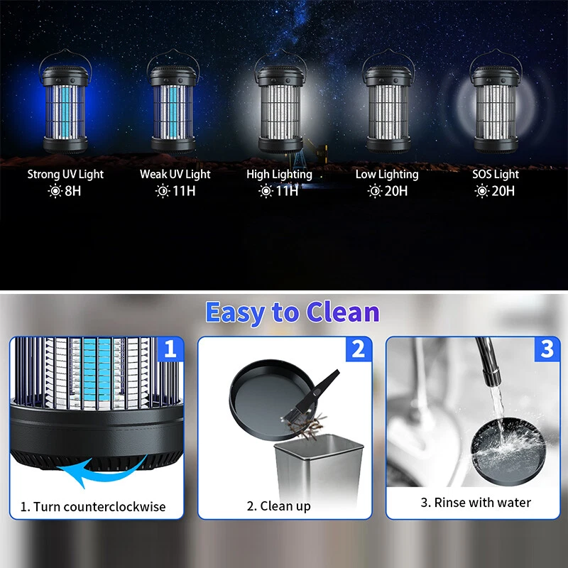 Product Description Warm Tips: It works better at night or in darker environments. For open and large -scale places, we recommend that you use a few bug killer lamps at the same time to enhance the effect. Description: New Upgrade Solar & USB Charging: Our solar mosquito zapper comes with 3600mAh large battery capacity, which can provides long-lasting use without frequent charging. The bug zapper outdoor is equipped with solar panel that supports solar charging, place it in direct sunshine when camping or hanging in backyard and it will charge automatically, saving energy. USB type-c charging can be using any standard USB devices. S tronger E lectric B ug Z apper: Our solar bug zapper features new type of UV light bulb and high power grid inside that attract and trap indoor outdoor mosquitoes and most flying insects. 360°wide open design and high-pressure inhalation can achieve the effect of double extermination of mosquitoes. Please fully charge it before use, as it may have a partial charge upon shipment. This ensures optimal performance and allows you to fully enjoy its functionality. I nstant I ndoor & O utdoor P rotective: Our bug zapper offers indoor safety and instant protective, able to eliminate insects quietly, while the fireproof and sturdy ABS casing ensures state-of-the-art security. The portable electric mosquito zapper with wide coverage range can protects against flying insects including mosquitoes, gnats, flies, moths, wasps, and house flies. Let you enjoy an Insect-free environment! 3 in 1 M ulti -F unctional I nsect Z apper: The bug zapper outdoor have 3 lighting modes, Besides 2 adjustable UV light, it can also function as an LED lamp with 2-level brightness and a SOS light. The bug zapper light mode can kill pests, and LED light mode can be used as night lighting, camping, home, reading, and the SOS mode for outdoor emergency situations. Our powerful camping bug zapper meets you needs, suitable for hiking travel, fishing and other outdoor event etc. E asy to U se & C lean: Cover with sturdy and fireproof ABS material, Our electric insect zapper is resistant to high temperature. It’s lightweight with a hook so you can hang it everywhere you like. No warm up, Starts working when flip the switch. The bug killer is IP66 waterproof, zapping flying insects in rain or shine. Dead insects will fall onto the tray, you just remove the tray to empty the them under running water with brush provided. Specification: Material: ABS material Color: Black Input Voltage: 5V 1A (USB Type-C) Input Frequency: 50 / 60Hz Wavelength: 390 ~ 400nm Battery Capacity: 3600mAh Charging Method: USB Plug-in & Solar Solar Panel Power: 1.2W Charging Time: about 6hrs Working Time: 1. Mosquito Killer (Continuous protective for 8-12 hours) ; 2. Camping Light (Up to 12 hours of lighting) ; 3. SOS Signal Light (Great companion for outdoor activities) Weight: 700g / 1.54lb Size: 2 38 x 1 28 x 1 28 mm / 9. 37 x 5 .04 x 5. 04 in Package Included: 1 x Mosquito Killer Zapper Device 1 x Type C Cable 1 x Instruction 1 x Brush Payment Shipping Returns Contact Us 1. This is the payment method we can accept: Paypal 2. You can checkout and pay immediately after the auction ends or you complete the purchases. If you need an eBay invoice sent to you by Email, please contact us before making payments. 3. Once the checkout is completed, you will not be able to include any additional purchases. We start to process and fulfill your order once payment is received. New purchases after the checkout will be processed separately. 4. Payments are expected within 4 days after the order is confirmed. Unpaid item (UPI) strike may be filed with eBay upon non-receipt of payment. 1. How much is the shipping & handling (S&H)? Our shipping and handling charges are clearly stated in the Shipping and Payments section of the item page, and we provide Free Shipping for most items. 2. For multiple purchases, the combine shipping discount will be automatically calculated when you check out and pay all of your purchases together. Items checked out separately may not be combined and the combine shipping discount will not be offered automatically. 3. Please make sure the correct Ship-To address is entered before checking out. Once the payment is completed, you may not be able to change the shipping address. We shall not be held responsible for any wrong or undeliverable addresses. 4. We usually ship within 1-2 business days of receiving cleared payment. 1. We put buyer's satisfaction at top priority. If you're not pleased with your purchases, we'll be happy to make an exchange or refund the item total price less Shipping and Handling (S&H) charges within 30 days of your purchases. 2. For any Exchange, Refund or Return, the item must be in its original condition, including the box, packaging, and all the accessories or gifts. 3. We'll provide prepaid return shipping label if the return is a result of our error. Postage reimbursement is offered only on standard mails, and it needs to be approved by our staff prior to returning. 4. Please allow up to 7 business days for returns to be processed. 5. Shipping and Handling (S&H) charges are not refundable. 1. Customer satisfaction is very important to us and our feedback rating reflects this satisfaction. If you have any question or concern, please contact us via eBay message. 2. We respond to all eBay messages as quickly as possible. Though your question will usually be answered very soon, please allow us up to one business day before you start thinking your message is neglected or the reply is avoided, because there would be time difference, non-working hours or public holidays that have prevented us from making an instant response. Payment 1. This is the payment method we can accept: Paypal 2. You can checkout and pay immediately after the auction ends or you complete the purchases. If you need an eBay invoice sent to you by Email, please contact us before making payments. 3. Once the checkout is