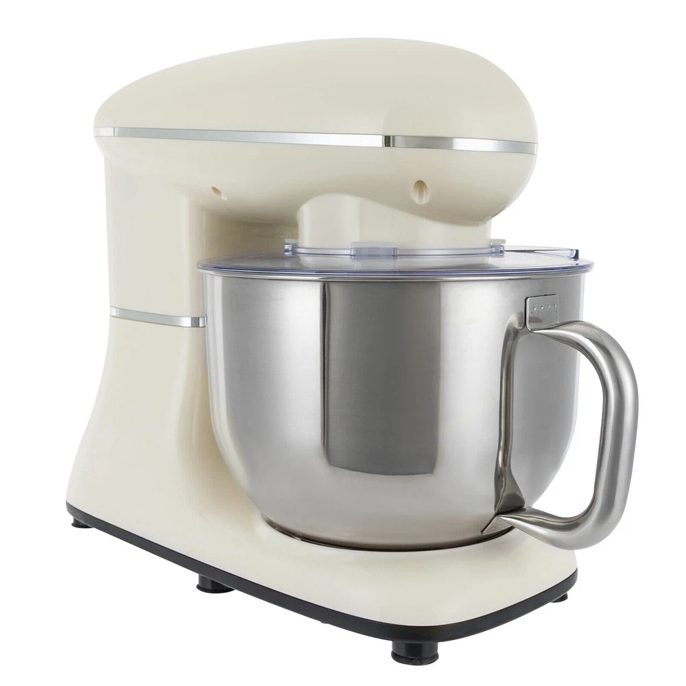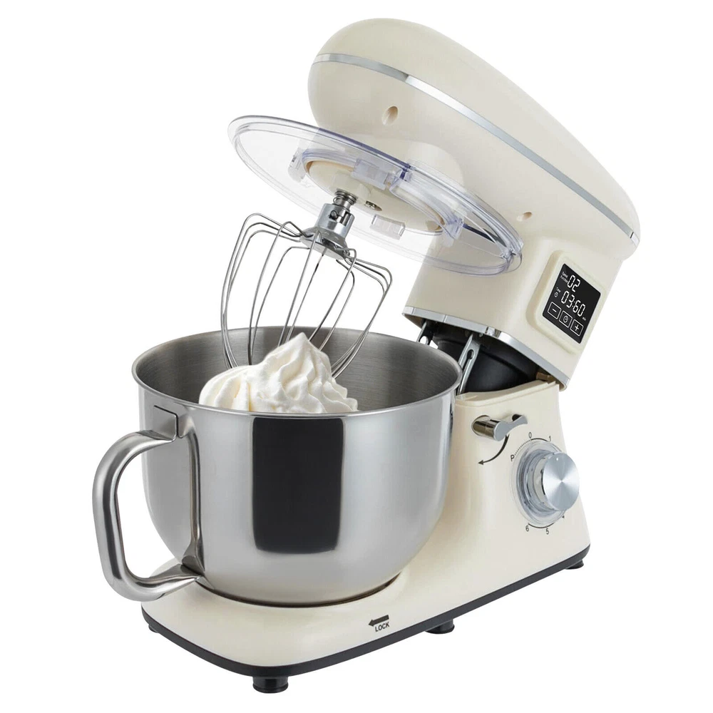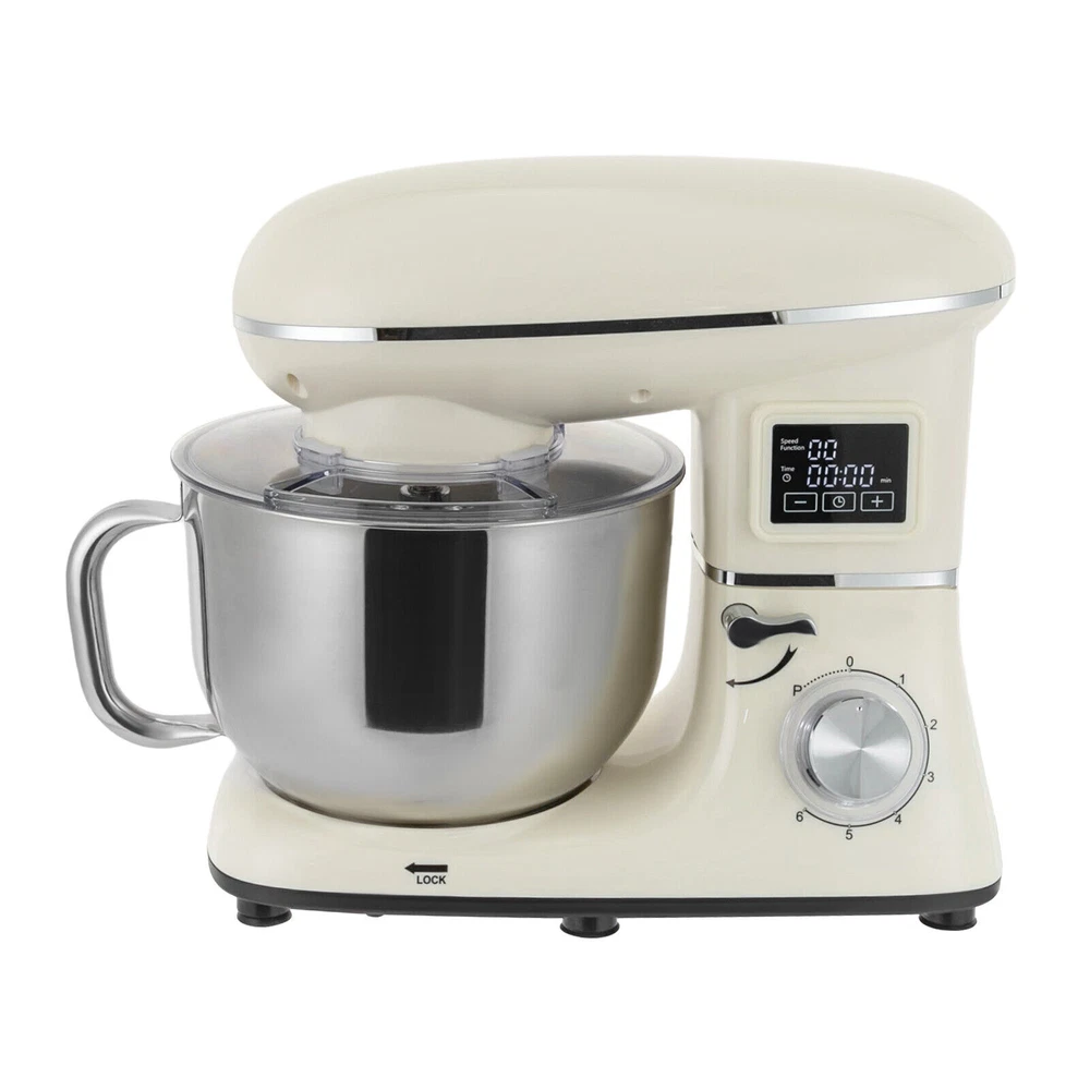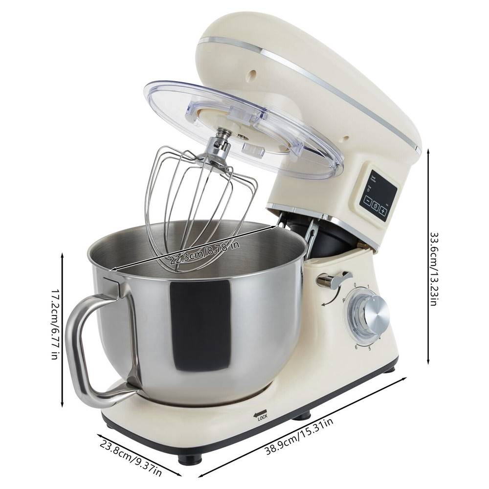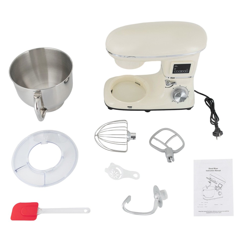 Electric Food Mixer 6+1 Speed 6.5Qt Electric Dough Mixer Processor Timing 1350W 6.5Qt Commercial Food Processor, Kitchen Electric Mixer, Dough Mixer Machine with LCD Display Description Look at our kitchen mixer, it is a helpful assistant for your kitchen. It is made of premium materials, safe to use and durable. This machine is compact and lightweight, so you can easily store it in the cabinet. As a daily mixer, it is easy to operate and clean up, allowing you to conveniently deal with different kinds of foods. Key Features Build to Last : The product is made of high-quality ABS, making it durable, and not easy to rust and corrosion, so it can remain beautiful and practical for a long time. Powerful and Efficient: It has a strong power (1350W) and a knob to adjust 6+1 mixing speeds, 1-3 speed for bread and pasta dough, 2-4 speed for butter, cookies, and salad, 5-6 speed for egg white, cream, cake, and sauces, and P for pulse function to make the texture of bread and butter more creamy. Thoughtful Design: The LCD screen can be set to time (±30s per click) and has a regular reminder function, allowing you to maximize your freedom without having to keep an eye on the mixing progress. High Safety: The machine's head-up power failure and overheating protection can ensure your safety when using as well as easy for you to replace the accessories, in addition, the cooling holes can dissipate the heat in time to ensure the stability of the product when using. Excellent Performance: The deepened bowl can thoroughly mix flour, eggs, and other ingredients inside. It can hold 6.5 qt of ingredients and is equipped with a whisk, beater, and dough hook to facilitate the mixing of different ingredients and meet the dietary needs of you and your family. Ready to Use: The assembled host, practical accessories, and detailed English manual make it very convenient and time-saving for you to use it directly after receiving it. Compact and Lightweight: With its compact size (15.31*9.37*13.23 inches) and lightweight ( 13.23 lbs ), you can use it conveniently or store it in your cabinet without taking up too much space, making it suitable for small kitchen, apartment, or limited storage space. Protective Package: We use foam to wrap this product in order to minimize damage to the product during transportation. Ideal Gift: Because of its powerful functions and practicality, you can give it to your friends as a Christmas, Thanksgiving, or housewarming gift. Details Non-slip Feet: Six non-slip feet on the base prevent sliding and ensure product stability. Clear Splash-proof Lid: It helps you with process monitoring and facilitates pouring water, milk, or other liquid ingredients(not included) through the hole in the splash guard when needed while preventing ingredients from running out of the bowl, making cleanup easier. Practical Spatula: It helps you scoop out the ingredients and also makes for a more even distribution of the ingredients before blending. Comfortable Handle: The handle on the bowl makes it easy to grip and pour out your mixed ingredients(not included). Application It can be used in kitchens, small restaurants, bakeries, etc. for pizza, waffles, milkshakes, bread, dough, whipped cream, marble cakes, mincemeat, and more! Specification Color: White Style: Modern Material: ABS Mount Type: Free Standing Assembly Required: Yes Control Type: Knob Screen Type: LCD Model: SM-1505HL Power Source: Corded Electric Plug Type: US Standard Motor Type: Pure Copper Motor Volatge: AC 110V Power: 1350W Speed Gears: 6 +1 (Pulse Function) Time: ±30s Per Click Noise: < 75db Capacity: 6.2L/6.5Qt Product Size: 38.9*23.8*33.6cm/15.31*9.37*13.23 inch Mixing Bowl Size(D*H): 22.3*17.2cm/8.78*6.77 inch Package Size: 40.6*36.3*24.7cm/16*14.3*9.7 inch Gross Weight: 6.6kg/14.6 lb Net Weight: 6kg/13.23 lb Package Included 1* Kitchen Mixer 1* Douch Hook 1* Beater 1* Whisk 1* Spatula 1* English Manual Notes Please note that this product does not include any food ingredients. Before purchasing, please make sure that the capacity of this product is available for your needs. It is suitable for the new baker, 1-2 members, or small family in everyday use. If you are a pro-baker or need to handle large batches of mixing, please consider other larger-capacity mixers. Please read the English manual carefully before use and pay particular attention to the safety instructions contained therein. Payment Delivery details Terms of sales About us Contact us Payment We accept ebay payment 。 Fees such as import duties, taxes are not included in the item price or shipping costs. These charges are the buyer's responsibility. Delivery details Shipping: 2-9 working days to: USA Terms of sales We maintain high standards of excellence and strive for hundred percent customer satisfaction. Feedback is very important to us. We hope that you contact us immediately before you give neutral or negative feedback, so that we can address your concerns. It is impossible to address issues if we do not know about them! About us Your satis faction is our ultimate goal. We work hard to earn your trust and future business. Our certified technicians have tested each item before shipping. The unit comes with 1 year limited warranty on all manufacturing defects. a) If you receive a defective item, you may return it or ask for a discount. Please contact us within 14 days after you receive the package. b) What you returned must be intact and in its original packaging as re? u. Customer is responsible for shipping costs of the returned item. c) We will cover the cost of shipping back t with the shipping rate indicated in the registration page. We will send you a new unit or refund the full payment you paid. Thank you. Contact us Business Hour Business Hour: Monday To Friday: 8:30 AM to 5:00 PM (Beijing China time) Due to time zones, our reply to your questions may not be immediately. But within above working time, we will reply your email within 24 hours. If it's non-wor