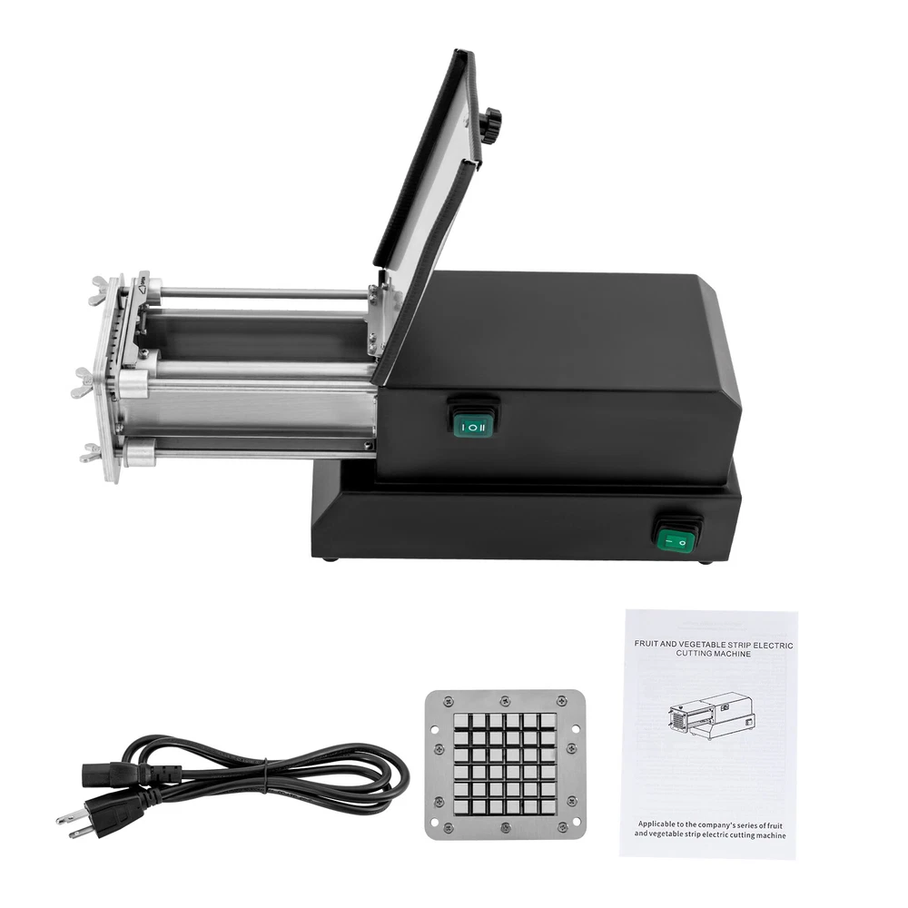 Electric French Fry Cutter, French Fry Cutter Stainless Steel Details Anti-slip Feet: The bottom of the product has four anti-slip feet, which can effectively prevent it from slipping, and reduce scratches on the desktop caused by machine vibration during use. Stainless Steel Shield: It has a stainless steel shield added to the top, which helps prevent food splashes and increases the use safety. Specification Material: 201&304 Stainless Steel, PVC Color: Silver,Black Processing Range: Fruits and Vegetables Voltage: 110V Power: 200W Frequency: 50/60HZ Blade Shape: Rectangular Operation Mode: Automatic Pusher Speed: 82mm/3.32in/s Single Pusher Stroke Time: 1.95s 2 Size Grid Blades: 12mm, 1/2"; 8mm, 3/8" Vegetable and Fruit Holding Size: 19.5*7.8*7cm/7.68*3.07*2.76 inch Package Size: 56*25*25cm/22*9.8*9.8 inch Product Size: 49*16*20.6cm/19.29*6.3*8.11 inch Gross Weight: 10kg/22 lb Net Weight: 9kg/19.84 lb Package Includes 1* Electric Potato Cutter 1* Power Cord 2* Grid Blades(One is Already Installed) 1* English Manual Notes 1. Due to the strong power of the machine, when cutting small ingredient, it'll be bent. Therefore, it is recommended to use this machine to cut large ingredients such as large potatoes, large sweet potatoes, large carrots, and so on. 2. If the power switch is not on, it is possible that the machine's power cord is not plugged in properly. If the lid is not closed, the machine will not start either for your safety protection. 3. The blade is sharp, pay attention to safety when cleaning, replacing, and storing! Please dry it when stored after cleaning. 4. It is best to hand wash to avoid touching badly, the body should not be immersed in water. Payment Delivery details Terms of sales About us Contact us Payment We accept ebay payment 。 Fees such as import duties, taxes are not included in the item price or shipping costs. These charges are the buyer's responsibility. Delivery details Shipping: 2-9 working days to: USA Terms of sales We maintain high standards of excellence and strive for hundred percent customer satisfaction. Feedback is very important to us. We hope that you contact us immediately before you give neutral or negative feedback, so that we can address your concerns. It is impossible to address issues if we do not know about them! About us Your satis faction is our ultimate goal. We work hard to earn your trust and future business. Our certified technicians have tested each item before shipping. The unit comes with 1 year limited warranty on all manufacturing defects. a) If you receive a defective item, you may return it or ask for a discount. Please contact us within 14 days after you receive the package. b) What you returned must be intact and in its original packaging as re? u. Customer is responsible for shipping costs of the returned item. c) We will cover the cost of shipping back t with the shipping rate indicated in the registration page. We will send you a new unit or refund the full payment you paid. Thank you. Contact us Business Hour Business Hour: Monday To Friday: 8:30 AM to 5:00 PM (Beijing China time) Due to time zones, our reply to your questions may not be immediately. But within above working time, we will reply your email within 24 hours. If it's non-workdays, please kindly be patient and wait till Monday. Please contact us with ebay message. Please feel free to contact us if you have any questions. Monday To Friday: 8:30 AM to 5:00 PM (Beijing China time) Due to time zones, our reply to your questions may not be immediately. But within above working time, we will reply your email within 24 hours. If it's non-workdays, please kindly be patient and wait till Monday. Please contact us with ebay message. Please feel free to contact us if you have any questions. Brand Unbranded Set Includes Slicer