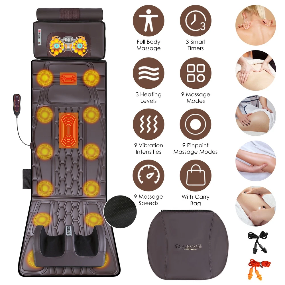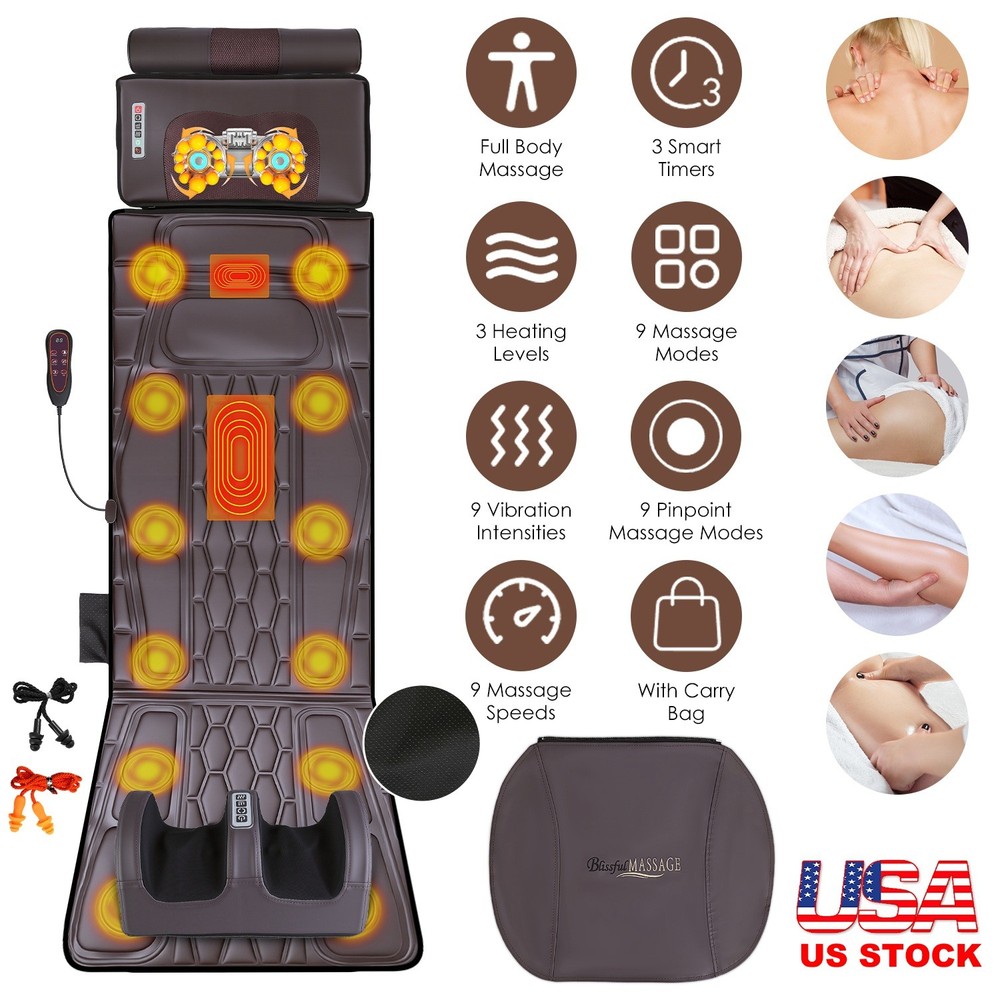 Full Body Massage Mat Electric Heating Vibration Shiatsu Neck Back Foot Massage