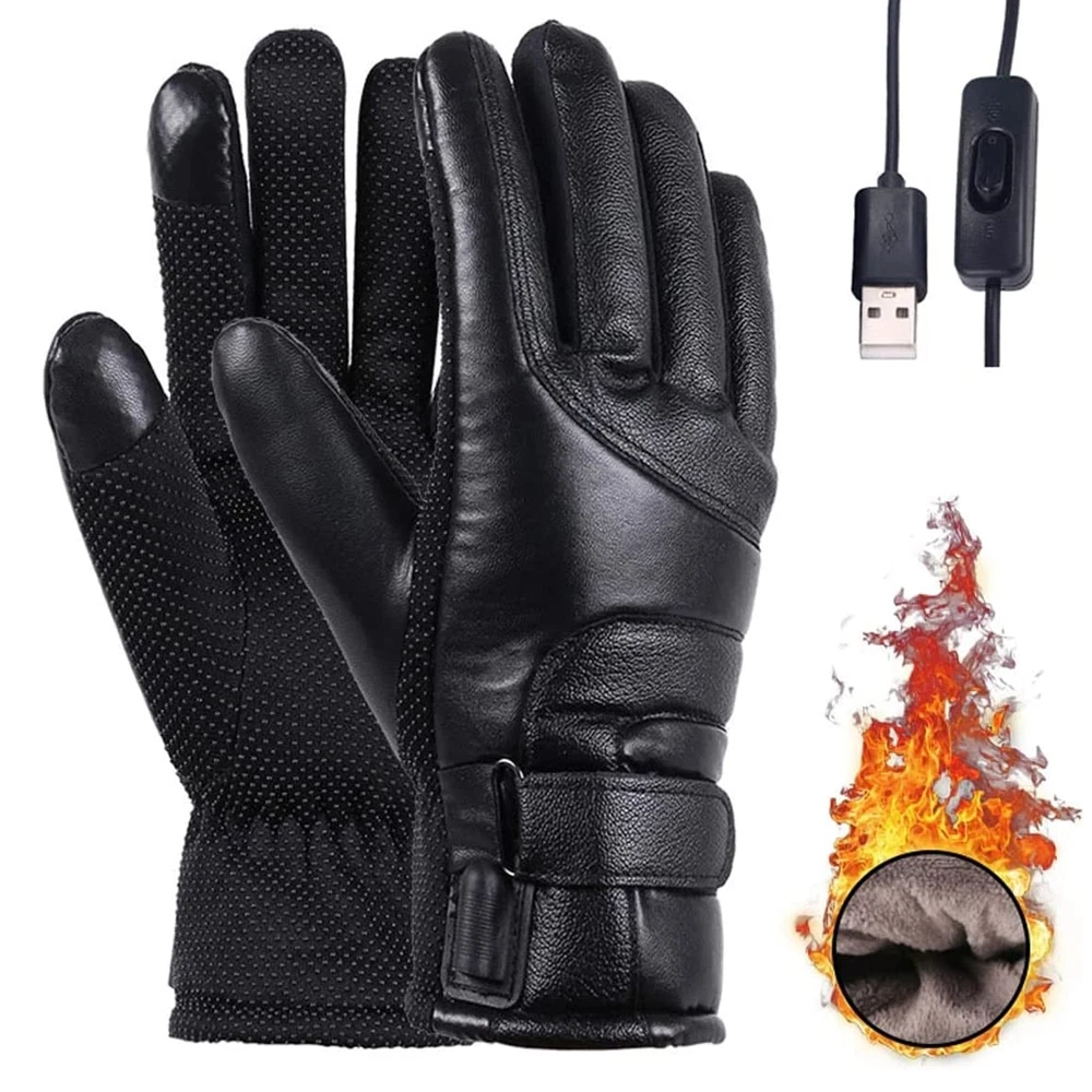 Feature: 🔥 Plug-and-play USB Heating Gloves :Touch type stepless temperature switch, light touch button, temperature can be adjusted at free.No need to worry about draining battery rapidly, the electric heated gloves would keep your hands warm as long as plug into USB port of PC, power bank, or other 5V power sources. Lightweight and easy to operate, providing you with excellent dexterity to avoid being bulky. 🔥 Considerate Design Top Quality :Anti-skid rubber particles, grip the handle is more stable, increase friction. The adjustable nylon buckle wrist strap and thickened PU leather allow you to keep the cuff closed around your skin for stopping the strong cold wind from blowing in.Resistant to wear, waterproof and durable. Besides, inner coral fleece is thickened to bring you more warmth and softness. 🔥 Touch Screen Gloves :Coated with conductive leather on forefinger, available to use electric devices like iPhone, iPad without taking off heated gloves. Non slip palm grip. Convenient hook. 🔥 Widely Application :Perfect for motorcycling, hunting, skiing, snowboarding, snowmobiling, bicycling, ice-fishing, hiking, walking, hunting, snow plowing, mountaineering etc. Perfect winter thermal gloves gift for menwomen, such as your lover, parents, friends, the elderly etc. Specifications: Color: Black Material: PU Leather, Coral Fleece, Anti-Slip Particles Size: One Size Fits Most Length: 27cm/10.63" Finger Length: 10cm/3.94" Palm Width: 12cm/ 4.72" Gender: Unisex Adults USB Voltage: 5V Suitable Temperature: - 35°C(-31°C) Package Including: 1 Pair of Gloves 1 Pcs USB Cable - Plug-and-play USB Heating Gloves - Considerate Design & Top Quality - Touch Screen Gloves - Widely Application