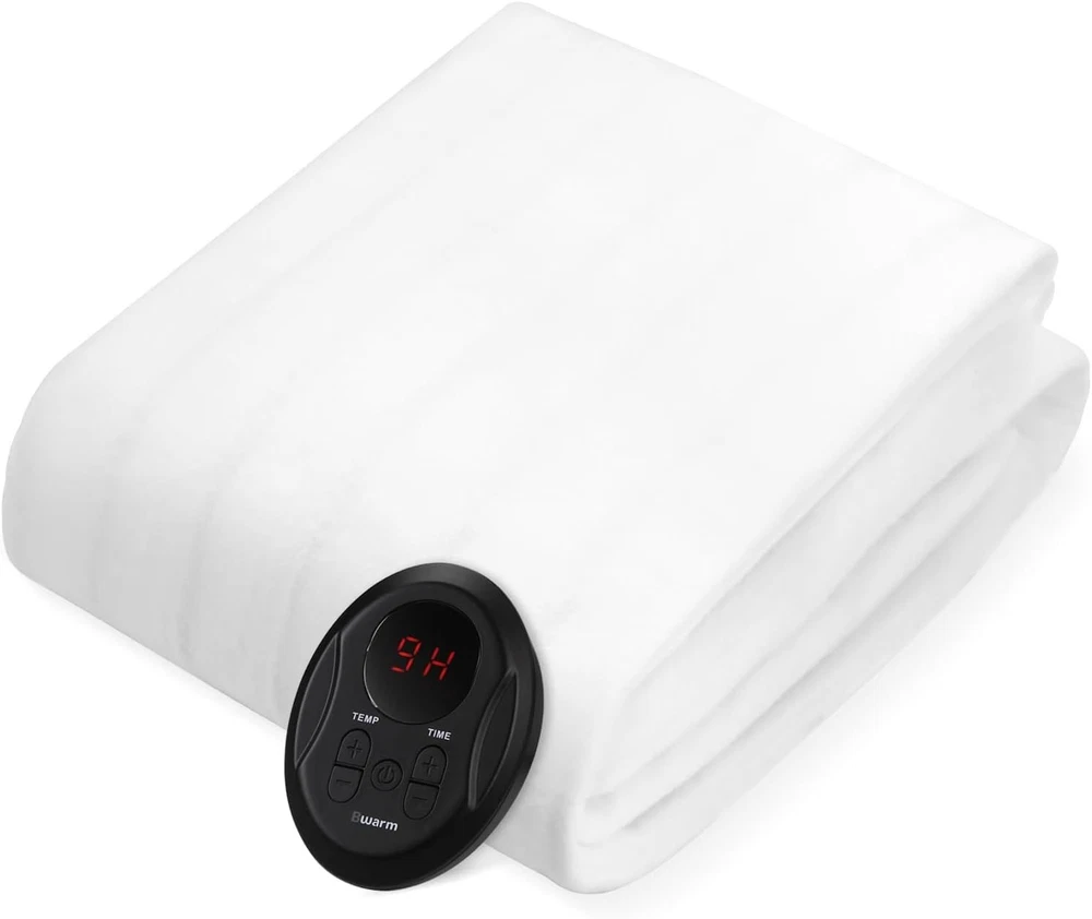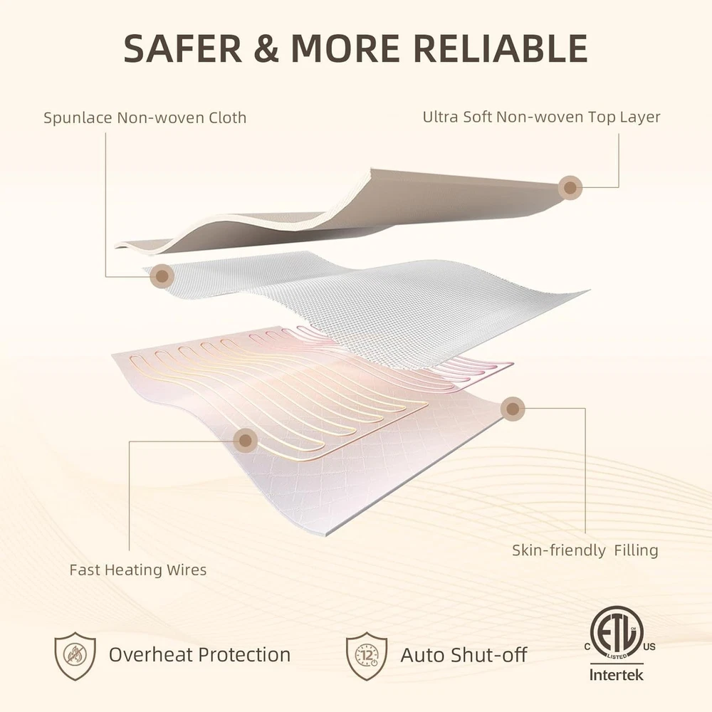 Polyester SIZE: MINI Twin Size, 31"W x 55"L, 65 watts of power meet your different needs. PREMIUM QUALITY: Our heated mattress pad is both skin-friendly and crafted with premium breathable knitted materials to ensure the health and superior high quality sleep. Made of 100% polyester. SMART DIGITAL CONTROL: 10 time settings provide 1-9 and H (represents for 12 hour) auto-off safety timer. Intelligent heating elements with ultra low electro magnetic field (EMF) ETL certified. CUSTOMIZABLE WARMTH: 9 heat settings provide a warm and comfortable sleep for your desired warmth. 5 YEAR Guarantee: Bwarm heated mattress pads are safe and reliable made to provide highest safety and carry a 5 YEAR Guarantee. Machine washable to maintain your blankets fresh and hygienic for years to come. The Electric Heated Mattress Pad in Mini Twin Size is a cozy and practical addition to your bedroom. Made from warm polyester material, this rectangular-shaped pad measures 31" x 55" and features 9 heat settings for customizable comfort. Easy to care for with machine wash instructions, this bed warmer is designed for adults and includes a pull-on closure for secure use. Its white color adds a clean and sleek look to your bedding, while its washable feature ensures long-lasting quality. Made in the United States, this mattress pad is lightweight at 2.97 pounds and is perfect for keeping you warm and cozy during the colder nights.