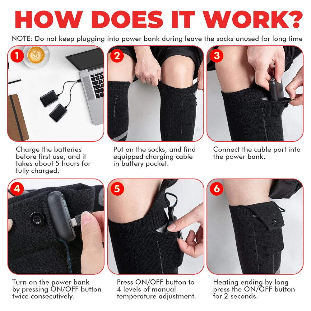 1 Pair electric heated gloves Specifications: 2x Palm leather model gloves + 2x 5V/6000mAh Power bank + USB charging cables Use Category: Skiing/Leisure/Sports Function: waterproof, non-slip, touch screen, warm, windproof, self-heating Size: XL Season: Winter Applicable object: middle and high consumption crowd Applicable age group: adult Fabric Name: Polyester Main fabric composition: polyester (polyester fibre) Charging treasure: 5V 6000 mAh, constant temperature 2.5-6 hours Use Scene:Skiing, cycling, outdoor and so on Packing list: Gloves *2 Charging treasure *2 USB cable *1 ============================================================================================ 1 Pair electric heated socks Features: 【Full Foot Coverage Heating】Hidden heating pad covers the entire area from the toes to the heel delivering warm blood to the whole body through the blood vessels. Also features a newly designed inline heating pad and almost imperceptible ultra-thin wire dramatically reducing the sensation of foreign bodies on the bottom of the foot 【Swift Heat Performance】Powered by high-capacity 5V 5000mAh battery electric socks deliver rapid and efficient heating. Surpassing traditional solutions they generate more abundant and even warmth ensuring consistent comfort in cold outdoor conditions 【4 Heating Levels】Choose your idea l warmth with four adjustable temperature settings. Equipped with two independent 5V 5000mAh rechargeable batteries, you'll enjoy 3-8 hours of continuous heating. Select from three temperature options (45/55/65°C) to adapt to various outdoor environments(Press 2S to start heating) 【Enhanced Fit & Durability】Crafted from supple Modal fabric heated socks offer exceptional elasticity and comfort. The reinforced heel is made from wear-resistant and anti-pilling mink suede and wool ensuring enduring quality 【Free Movement】Rechargeable battery has a separate fixed inner pocket and the opening has been upgraded to an elasticated fixation. Even when skiing, skating, cycling and other strenuous activities, the battery will not fall out. so you can move freely without any burden Electric heated socks for men and women are an excellent choice for outdoor activities such as skiing, hiking, hunting, snow shoveling, ice fishing, horseback riding, motorcycling, cycling and other cold-weather pursuits. The exquisite packaging makes them an ideal gift Main size: toe to heel 21cm, heel to sock 33cm Packing list: Box *1 Instruction manual *1 Socks *2 Battery *2 Charging cable *1 =========================================================================== 1 Pair Hand Warmers About this item: Compact and Portable: Perfectly sized to fit in your pocket or bag, our hand warmers provide on-the-go warmth without bulk. Three Adjustable Temperature Levels: Choose from low, medium, or high heat settings to customize your warmth experience and stay comfortable in any weather. Convenient LED Disp lay : Easily monitor your chosen temperature setting with the clear, intuitive LED display. Value Pack of 2: Comes with two hand warmers, so you can keep one in your bag and one at home, or share the warmth with a friend or loved one. Ideal Gift Choice: A thoughtful and practical gift for anyone who loves outdoor activities or needs extra warmth during the colder months.