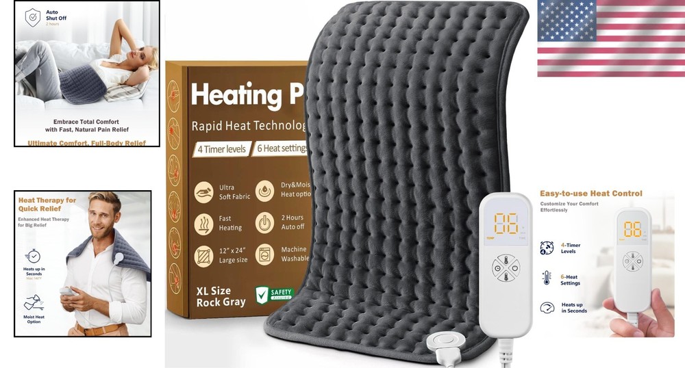 Electric Heating Pad 12x24 Moist Dry Pain Relief Back Neck Shoulder ‹ › ‹ › ‹ › ‹ › ‹ › ‹ › ‹ › ‹ › ‹ › ‹ › ‹ › Electric Heating Pad - 12x24 Moist or Dry Pain Relief for Back, Neck, and Shoulder Revolutionize your pain management routine with our Electric Heating Pad, expertly designed for quick results and instant relief. Perfectly sized at 12" x 24", this heating pad enhances your comfort while providing effective relief from back aches, muscle cramps, and tension. Gift it to the special men in your life, especially for Father's Day, and allow them to experience the soothing warmth they've been looking for. Features: Advanced Heating Technology: Delivers a stream of powerful heat for effective pain relief. Moist or Dry Use: Customize your experience simply by spraying a fine mist on the pad's surface. Ultra-Soft Material: Made with skin-friendly, plush fabric for enhanced warmth and comfort. Convenient Size: Measuring at 12" x 24", ideal for relief in back, neck, and shoulder areas. Quick Heat-Up: Ready to use within seconds with 6 levels of heat adjustment for tailored comfort. Auto Shut Off: Ensures safety during use, allowing for peaceful rest without worry. Extended : Equipped with a generous 7-foot power cord for flexibility in various postures. Benefits: Relieves back pain and muscle soreness effectively. With four preset timer settings, it accommodates various relaxation durations. Machine washable for easy care and maintenance. Ideal for use at home or while traveling. An Ideal Gift for All Occasions: Presented as a thoughtful gift on anniversaries, birthdays, or holidays like Mother's Day and Father's Day, our Electric Heating Pad conveys warmth and care for both men and women. Show your loved ones how much you cherish their well-being with the gift of health and relaxation. Exclusive Personalized Service: Order today and include a personalized message by selecting "This order contains a gift." Feel secure with our no-questions-asked refund policy. Buy with confidence and let your loved ones indulge in the warmth of our Electric Heating Pad! Shipping Free & Fast Shipping - We offer free shipping to most of the USA with a normal delivery time of 3-7 days. However, due to the current situation, additional delivery time (up to 3 weeks) may be required for some items. Alternative Carriers - We may use alternative carriers (e.g. USPS, FedEx, UPS, etc.) to ensure your package arrives safely and on time. Due to the use of multiple carriers, we are unable to provide a tracking number automatically. Handling Time - Orders are processed and shipped within 1-2 business days of receiving cleared payment. Shipping Restrictions - Shipping to Alaska, Hawaii, Puerto Rico, Guam, and other US territories may incur shipping charges or delivery restrictions. Please contact us before ordering, or your order can be refunded/cancelled. State Restrictions - There may be restrictions based on your state of purchase. For example, certain items may not be shipped to California due to state regulations. Contact for Tracking Updates - If you require tracking updates or have any concerns about the delivery of your order, please feel free to contact us, and we will be happy to assist you. Return 30-Day Hassle-Free Returns - We want you to be completely satisfied with your purchase. If you are not, you can return the item within 30 days of receiving it for a full refund or exchange. Easy Return Process - To start a return, simply contact us and we will provide you with a prepaid return shipping label and detailed instructions. Restocking Fee - There are no restocking fees for returns. However, the buyer is responsible for return shipping costs if the return is not due to a seller's error. Refund Processing Time - Refunds will be processed within 5 business days of receiving the returned item in its condition. Payment We accept all major credit cards, PayPal, and Apple Pay for your convenience. Your payment information is secure and encrypted to ensure a safe and seamless transaction. Please complete your payment within 3 days of purchase to avoid any delays in shipping. Feedback Your feedback is extremely important to us. We strive to provide the best products and customer service possible. If you are satisfied with your purchase, please take a moment to leave us a positive review. If you have any concerns or issues with your order, please contact us before leaving negative feedback. We are committed to resolving any problems and ensuring your satisfaction. Contact Us If you have any questions or concerns, please feel free to out to our customer support team. You can contact us through the eBay messaging system. We are available Monday to Friday, 9:00 am to 5:00 pm EST, and we will do our best to respond to your inquiry within 24 hours. Buy it now and enjoy a pleasant shopping experience! Unit Quantity: 1 Power Source: Electric Features: With Temperature Settings,Auto Shut Off,Moist Heat Option,Dry Heat Option,Machine Washable,6 Heat Settings,Preset Timer Settings,Power Cord Length 7 Feet Material: Fabric,Soft Material,Skin-Friendly Material,Plush Material Type: Electric Heating Pad Color: Rock Gray Department: Unisex