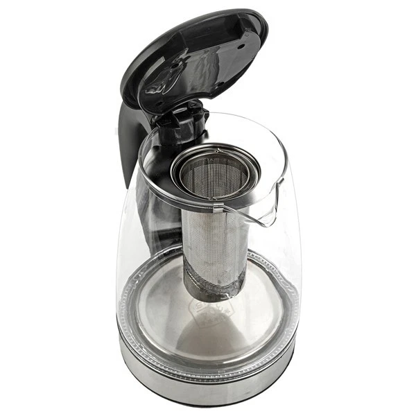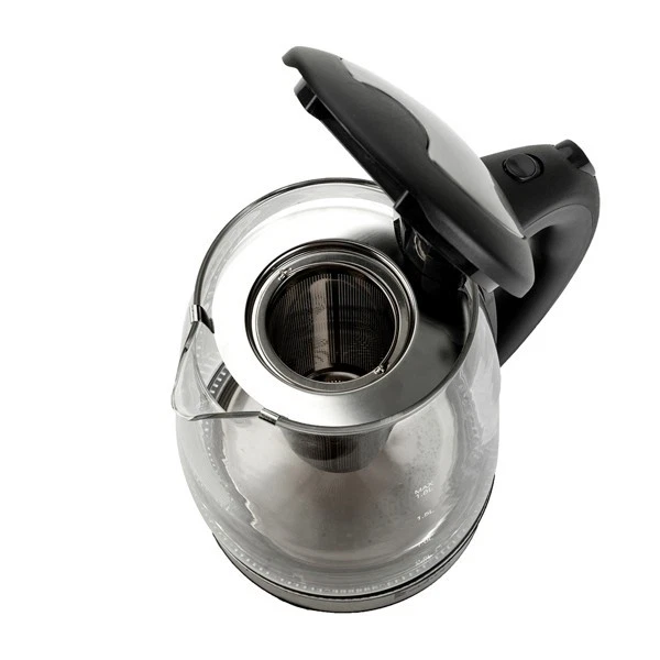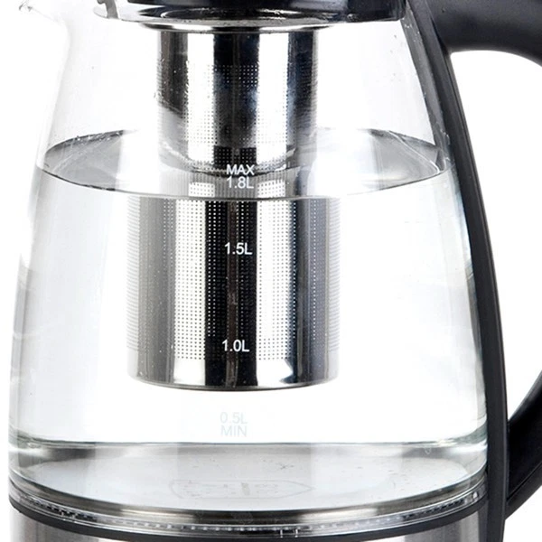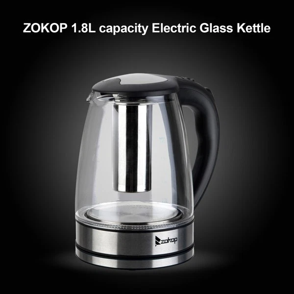 Introductions: The HD-1861-A 110V 1200W 1.8L Electric Glass Kettle is the perfect blend of elegance and functionality. Not only is this kettle a beautiful addition to any kitchen countertop, but it also boils water efficiently, saving time and energy over the use of conventional stovetop kettles. Their unique, modern, and stylish design looks great on any counter top and comes in 7 eye-catching colors. A halo of LED lights beautifully illuminates the pot when it's in use, so it's not only practical, but very attractive to look at. Large pouring spout with mesh filter for perfect, spill proof pours. In a matter of minutes, hot water will be ready to use for instant coffee, tea, hot cereal, instant macaroni, soup, or oatmeal. Features: 1. Made of High-grade stainless steel & high quality borosilicate glass & bpa-free plastic material 2. 360°rotation base 3. 7 colors LED light change automatically 4. Auto shut-off,boil dry and overheat protection 5. Ergonomic handle 6. Easy to open lid 7.With filter, can filter tea, etc. Specifications: 1. Brand: ZOKOP 2. Model: HD-1861-A 3. Type: Electric Glass Kettle 4. Capacity: 1.8L 5. Material: High-Grade Stainless Steel & High Quality Borosilicate Glass & BPA-Free Plastic 6. Voltage: 110V,50-60Hz 7. Power: 1200W 8. Plug Type: US Standard 9. Thermostat: Double Metal Temperature Control 10. Power Cord: Full Copper 3*0.75*100cm(Revealing Part) CE Certification 11. Heating Elements: Heating Plate 304 12. LED Illuminated Color: Colorful 13. Dimensions: (9.1 x 9.1 x 9.5)" / (23 x 23 x 24)cm (L x W x H) 14. Weight: 3.31lbs / 1.5kg Package Includes: 1 x Electric Glass Kettle 1 x Manual