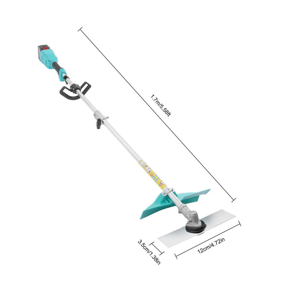 Specification Material: Plastic, Aluminum Blade Material: Alloy Plug: US Standard Color: Green Battery Voltage: 24V Battery Capacity: 6Ah Speed: 11000 rpm Motor Power: 1300W Noise: ≤50db Packing Size: 102*14.5*25cm/40.15*5.7*9.84in Pole Length: 1.7m/5.57ft Blade Size: 12*3.5cm/4.72*1.37in Gross Weight: 6kg/13.22lbs Net Weight: 5kg/11.02lbs Package Included 1* Electric Lawn Trimmer 1* Pole 1* Grass Shield 1* Shoulder Strap 1* Power Connection Cable 1* Battery 1* Blade 1* Power Adapter 1Pair* Gloves 1* Goggles 1* Hat All Accessories Required for Installation Electric Lawn Trimmer Lithium Battery Lawn Mower Brushless Motor Double Handle Description Description With its built-in high-capacity lithium battery and powerful brushless motor, this electric lawn trimmer greatly improves working efficiency and comfort. Its double handle allows you to operate with even less effort and stability. The handle and switch are designed in one piece for easy start-up and operation. It will be your ideal choice. Key Features Good Heat Dissipation: The housing has many cooling holes for heat dissipation, which prevent motor burn-out caused by long-term use. Cordless Design: Its cordless design will not restrict the working position which allows it to be used in places without power, offering you great convenience. Low Noise: The brushless motor and multi-layer noise reduction technology make the sound as low as 50db when working, giving you a quiet working atmosphere without disturbing others' rest and work. Robust and Durable: It is made of high-quality plastic and aluminum, which are robust, hard-wearing, rustproof , and age-resistant , ensuring a long service life. Long Operating Time: It is equipped with a large-capacity lithium battery (6Ah), which can be used continuously for half an hour on a full charge. It can also be used with an external backpack power supply for long and large trimming jobs. Compact and Lightweight: The lightweight of 11.02 lbs, compact construction and detachable design makes the item not only convenient to carry and store but also easy to use for most people, making trimming an enjoyable experience. High Efficiency : It is equipped with a powerful brushless motor (1300W) with low energy consumption, high-temperature resistanc e, and a rotation speed of up to 11,000 rpm for efficient mowing work. It saves much more time and effort compared to traditional hand mowing. Easy to Install: This product is simple in structure and complete in the package. You only need a few simple steps to install it, which is very time-saving and labor-saving. Safety Protection : Gloves, goggles, and a hat are included in the package to provide all-around protection for your trimming work. Multifunctional : You can change the blade for your high branch saw, hedge trimmer, or grass-cutting head for multiple applications. User-friendly Design: The concealed switch at the handle is designed to be activated with a single click which avoids safety hazards and saves power. In addition, the tail button is convenient to remove the battery for charging, making it very practical and user-friendly. Excellent After-sales Service : We aim to provide quality products and services. If you have any problems, please feel free to contact us, and we will reply and solv e the problem for you as soon as possible. Details Sharp Blade : The blade is made of high-strength alloy, which is quenched and hardened in one piece, making it very strong, and sharp for good cutting performance. It is also highly resistant to corrosion. Shoulder Strap: This lawn trimmer comes with a wide shoulder strap, so you can carry it on your shoulder. This way, the operation will be more stable and help reduce vibration and fatigue. Practical Handles : It contains a non-slip main handle and an auxiliary handle that effectively balances the weight of the lawn trimmer and reduces hand fatigue. Its auxiliary handle position can be adjusted at will to suit your needs. Extended Pole: The 1.7m/5.57ft extended pole allows you to easily mow off high branches or hard-to-reach spots in a very safe and effective way. It also reduces back strain for more comfortable trimming work. Grass Shield: It is equipped with a grass shield to prevent the grass from splashing when mowing, making it more secure to use. Application It can be used in schools, green belts, parks, farms, pastures, orchards, backyards, and various other scenarios for mowing, trimming, and harvesting. Specification Material: Plastic, Aluminum Blade Material: Alloy Plug: US Standard Color: Green Battery Voltage: 24V Battery Capacity: 6Ah Speed: 11000 rpm Motor Power: 1300W Noise: ≤50db Packing Size: 102*14.5*25cm/40.15*5.7*9.84in Pole Length: 1.7m/5.57ft Blade Size: 12*3.5cm/4.72*1.37in Gross Weight: 6kg/13.22lbs Net Weight: 5kg/11.02lbs Package Included 1* Electric Lawn Trimmer 1* Pole 1* Grass Shield 1* Shoulder Strap 1* Power Connection Cable 1* Battery 1* Blade 1* Power Adapter 1Pair* Gloves 1* Goggles 1* Hat All Accessories Required for Installation Notes After use, the blade needs to be cleaned and stored in a dry place in time. Please note that external backpack batteries are limited to 24-volt batteries. Please note that the backpack battery is not included in the package. Please be sure to tighten the screws to ensure your safety as the screws may come loose when installing the blades. Please allow the slight color difference caused by the shooting light and 1-3cm error due to manual measurement, and make sure you do not mind before ordering. Payment Delivery details Terms of sales About us Contact us Payment We accept ebay payment 。 Fees such as import duties, taxes are not included in the item price or shipping costs. These charges are the buyer's responsibility. Delivery details Shipping: 2-9 working days to: USA Terms of sales We maintain high standards of excellence and strive for hundred percent customer satisfaction. Feedback is very important to us. We hope that you conta