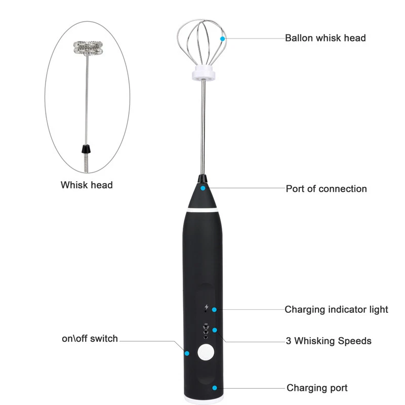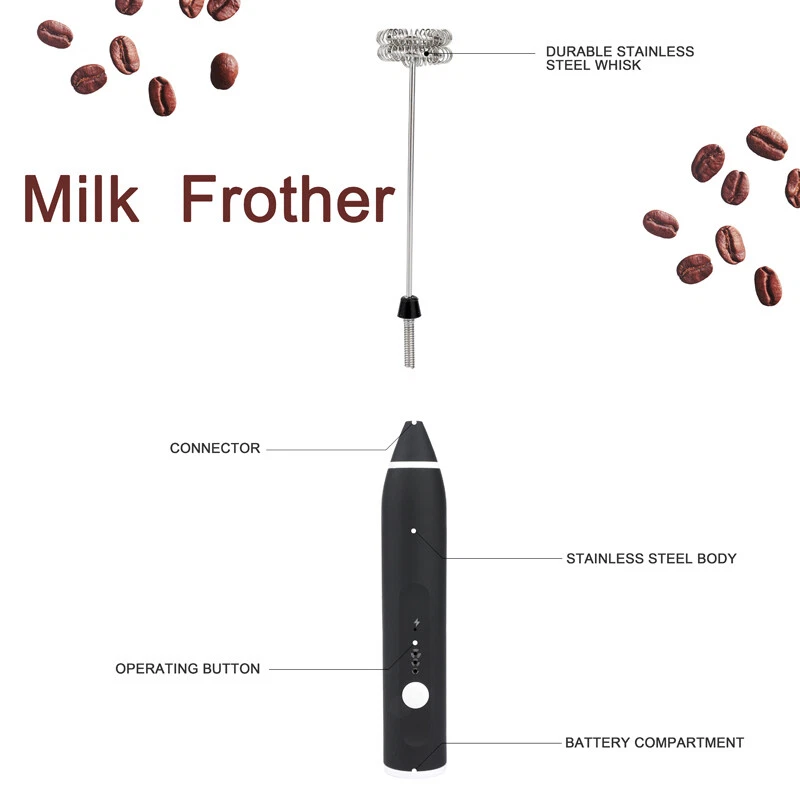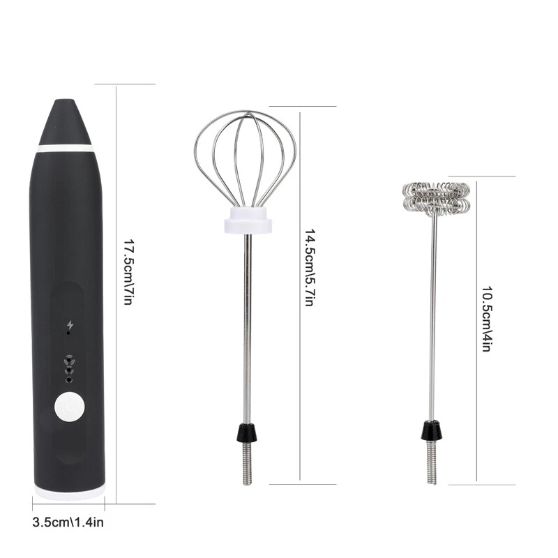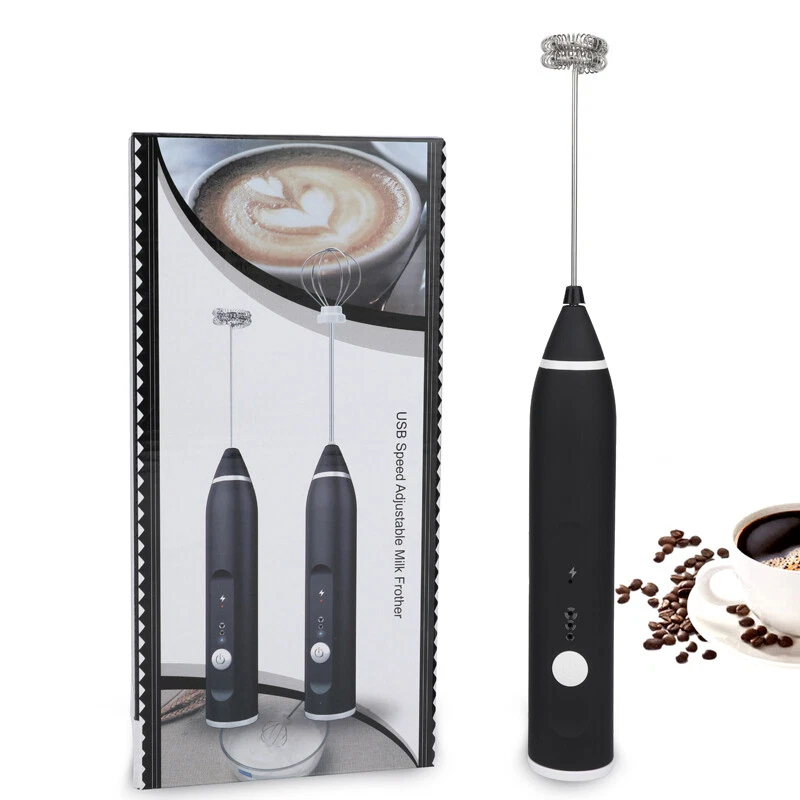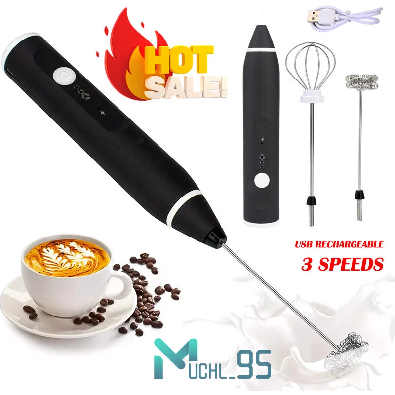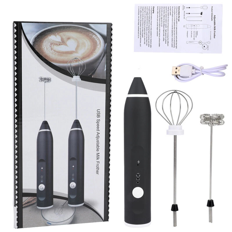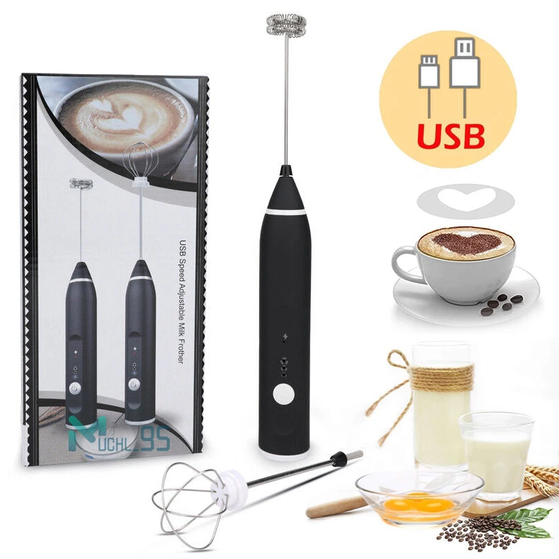 Electric Milk Frother Handheld Double Whisk Foam Coffee Maker USB Rechargeable Adjsutable Milk Frother,Milk Frother,Handheld Electric Foam Maker, Stainless Steel Whisks,USB Rechargeable 3 Speed Drinks Mixer,Battery Operated for Milk,Coffee,Juice,Cream,Chocolate Drink,Handheld with Powerful High Speed Motor Features: *3 different speed-low speed/medium speed/high speed. *Suitable for hot/cold liquid,such as milk,coffee,chocolate,juice,cappucinos,lattes,egg,to create delicate foam. The ballon whisk can be used to whip eggs or heavy cream; the milk whisk is perfect for making cappuccino, latte, bulletproof coffee. *Multiple protection for safety-Overcharge,over discharge,overload and so on. *Perfect homemade drink with the frother. *Light and compact,you can carry it anytime,to make all kinds of coffee at home,office or on travel. *Soft and comfortable touching ergonomic grip,to make better working performance. *Battery operated and USB rechargeable. *Charging-With android cable,support mobile phones charging head,computers and other output voltage DC4.5-5.5V,electric current less than 0.5A. *Charging indicator light-Red light on when charging,Green light on when fully charged. *Easy to operate and clean. Specifications: Battery Type:1200mAh18650 Lithium battery Charging Voltage:4.5-5.5V Charging Current:0.5A Working timeHigh speed for 1 hour Medium/Low speed for 1.5 hours Charging time6 hours Materials:Stainless Steel FDA Approved:Yes Host Length:17cm Balloon whisk head length:14.5cm Milk whisk head length:11.5cm Cable length:50cm Packaging Size:23*11*5cm Color:Black Operations: 1.Press the on/off switch to make the host work with blue light. 2.Host is on low speed when you turn it on and press again in turn to tune the speed from medium speed to high speed. 3.Suitable for hot/cold liquid,to choose the different speed(low speed, medium speed,high speed)for the different liquid(milk,coffee,chocolate,juice,edd and so on) 4.Changing whisk head to balloon whisk head and achieve better frother effect. Note: 1.Stirring time is generally most suitable within 5 miuntes and excessive time will damage the performance of the motor and the lifetime of battry; 2.Donot make the host touch the water; 3.When insert the whisk into the frother,the depth of the insertion shall be subject to the little silicone head.But a gap must be left to prevent mutual friction during operation. 4.Remove the whisk heads horizontally away if you want to replace it. Package includes: Milk Foamer Wand*1 Balloon Whisk Head*1 Milk Whisk Head*1 USB Charging Cable*1 User Manual*1 Payment Delivery details About us Contact us Payment Please send the payment soon, then we can ship out your order soon. Delivery details Shipped by USPS from NJ, US About us muchl_95 is a online wholesale seller for all kinds of electronic accessories. We carry a wealth of consumer electronic accessories, such as computer peripherals, laptop accessories, game consoles accessories, cell phones accessories, digital cameras accessories and other electronic. Contact us Any question, welcome to contact us.