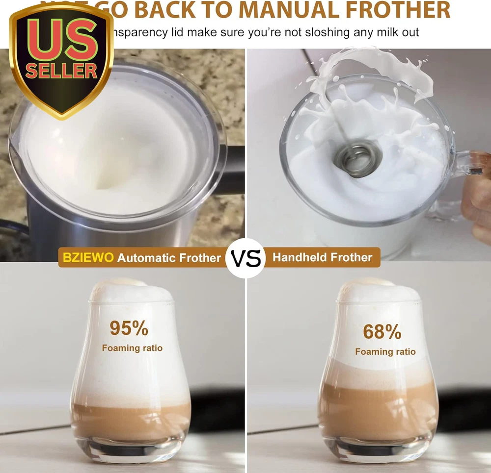 Store New Arrivals Add to Favorite View Feedback Contact Milk Frother Electric, Warm and Cold Milk Steamer, 4 in 1 Automatic Milk Warmer Stainless Steel with Touch Screen for Coffee, Latte, Macchiato, Cappuccino, Hot Chocolate Item Specifics Description Shipping Returns Product Description 4-in-1 Function Milk Frother: The 4-in-1 milk frother can be used as a milk frother, milk frother, hot chocolate maker or milk tea maker, heat. Having a coffee frother is equivalent to having four types of machines. Come with 2 whisks, you don't need to change the whisk frequently when you make different drinks Barista's Choice: The extraction flower spout can pour coffee foam directly into cups, it's a great way for beginners to make cute latte art. According to the preferences of hot and cold milk foam touch button, to complete the exquisite taste of excellent creamy foam in 2 minutes, which produces 95% dense foam of longer duration, hot milk can be heated up to 140 ℉-149℉ It is recommended to use whole milk Fast and Convenient to Operate: The coffee frother is a good choice for people who want to save time and heating steps. As a food-grade coating, the stainless steel mug is easy to clean and will not be contaminated with odors, easy to clean Share Coffee with Others: For people who often need to prepare multiple drinks at one time and pay attention to the delicacy of milk foam, this milk foam frother can froth up to 4.7 ounces of milk at a time or heat milk or chocolate up to 10.1 oz. More suitable for office sharing and family sharing Don't go back to handheld frother: In order to produce more stable milk foam, handheld milk frother often needs experience and touch, but BIZEWO Automatic Milk Frother can help people who have no barista experience Product Description About BIZEWO BIZEWO is pioneering the electronic product with a professional team who actively innovative electronic products. We are specializing in home smart and outdoor products for Americans. We strive to serve up the perfect balance of home life and outdoor sport and provide the best quality to our customers. Our customer services support 24hours online to solve your problems. BIZEWO 4 IN 1 Milk Frother and Steamer The electnic milk frothing machine create rich and creamy froth in 1-2 minutes, this auto-off milk steamer with touch screen panel and LED indicator, which reminds the function to finish your warm milk or delicious froth in time. The BIZEWO ARAMA-F1 comes with a pull flower jug that helps people who have zero experience as a barista. It will help provide you and your family with a cafe experience in your home. Rated Voltage: 120V Rated Power: 300W Min Liquid Level: 2.42oz Max Level for Frothing: 4.7oz Max Level for Heating: 10.1oz TIPS Milk Frothing for Beginners with BIZEWO 4-IN-1 milk frother Why can not froth my milk? Firstly, we suggest using the fresh whole milk to froth. This milk frother makes the silky smooth airy foam bubbles and wet-paint texture that’s characteristic of a latte. Even when using whole milk, be careful that the heated milk will not froth again, make sure the milk is cold before frothing. Finally, Please make sure the amount of milk should not lower than the MIN line! Why did my machine stop working? Firstly, check the power cable is connected. Then, Place the mug directly under running water using a non-abrasive cloth making sure that the underside of the milk frother and LED panel are dry. Why do I think my milk isn't hot enough? This milk warmer can heat milk and increases its apparent sweetness. proper milk temperature is 55-66 Celsius as you go hotter you will lose the sweetness flavor, the proper temperature will not scald you Quickly Operation The electnic milk frothing machine create rich and creamy froth in 1-2 minutes. Make sure the Milk Frother is filled to at least the MIN mark and not exceed the MAX FROTH marking. Otherwise the milk will overflow Magnetic Whisks You don't worry about the magnetic whisks completely out of the unit. This milk foam machine has a little whisk that attaches to a pin in the bottom that is driven by it's motor Touch Screen Panel Touch screen panel comes with LED lights indicator easy to use that all only need to tap one of the four functional modes on the smart touch screen to get hot milk or milk froth as needed 360° Anti -Slip Base The base comes with anti-slip foot bottom. When you put the base on your kitchen or bar or table, anti- slip foots can prevent sinking and slip Auto Shut Off The BIZEWO milk frothers are great for beginners and coffee aficionados alike, with the buzzer sound the milk frother would automatically shut off once done Easy Cleaning You can take a soapy sponge and wipe the milk frother immediately after use. Then, take a wet cloth to wipe the upper part, it will be as clean as a new one About Us We offer great deals on high-quality products and fast shipping from the U.S. Our catalog includes electronics, home items, toys, apparel, and more. Shipping All orders ship fast from within the U.S., typically within 1–2 business days. We use trusted carriers to ensure quick delivery to your door. Returns Enjoy a 30-day return policy. If you're not satisfied, simply return the item in original condition for a full refund or exchange. Payment Payments are processed securely through eBay's trusted checkout system. Contact Us We're here to help! Contact us anytime through eBay messages with questions or concerns. Customer Satisfaction Your satisfaction is our priority. If there's an issue, message us and we'll make it right. Fast U.S. Shipping We proudly ship all items directly from the United States – fast, tracked, and reliable. © ti_560285. All rights reserved.