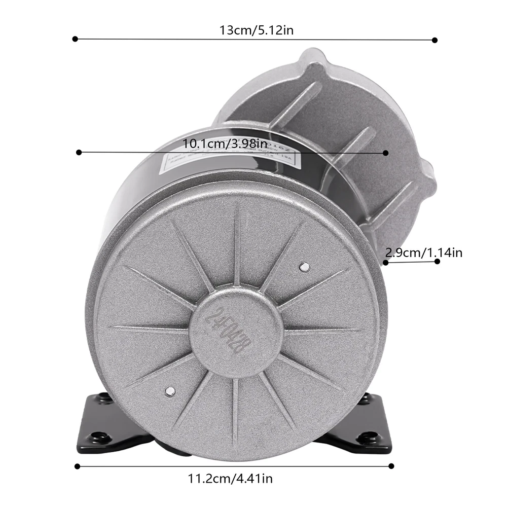 Build to Last: This product is mainly made of high-quality aluminum, which is durable and can be used safely for a long time. Excellent Performance: The 350W pure copper brushed motor has a high reduction ratio of 9.78:1 and high efficiency to provide greater speed reduction. Thoughtful Design: This product can be changed to rotate clockwise or counterclockwise by reversing the motor's power cord to increase flexibility and meet different needs. High Load Capacity: This product produces greater low-end torque and can support a heavy load of 220.46-330.69 pounds, providing a more powerful operation. Smooth Operation: The pure copper brushed motor with low noise and a sturdy base makes the product operate more smoothly and quietly. Electric Motor, Gear Reduction Electric Motor, Geared Reduction Motor 2750RPM Electric Motor, Gear Reduction Electric Motor, Geared Reduction Motor Description Our 24V gear reduction electric motor can help you achieve electrification of your electric bicycle. It adopts a sturdy aluminum shell and a 350W high-efficiency pure copper motor, which has advantages such as fast heat dissipation, long service life, and durability. It adopts gear transmission, reducing the speed of the high-speed motor, achieving smooth starting and low-speed riding of the electric bicycle, which can bring users a more convenient and comfortable riding experience. Key Features Build to Last: This product is mainly made of high-quality aluminum, which is durable and can be used safely for a long time. Excellent Performance: The 350W pure copper brushed motor has a high reduction ratio of 9.78:1 and high efficiency to provide greater speed reduction. Thoughtful Design: This product can be changed to rotate clockwise or counterclockwise by reversing the motor's power cord to increase flexibility and meet different needs. High Load Capacity: This product produces greater low-end torque and can support a heavy load of 220.46-330.69 pounds, providing a more powerful operation. Smooth Operation: The pure copper brushed motor with low noise and a sturdy base makes the product operate more smoothly and quietly. Compact and Lightweight: The compact and lightweight design makes it suitable for situations with limited space. Simple Installation: An integrated structure and pre-drilled holes allow you to complete the installation in a short time. Guaranteed Customer Service: Our friendly customer service team would be happy to solve your issues with our product. If you have any issues, feel free to contact us. Details Smooth Edges: The smooth and burr-free edges enhance the beauty of the product and better care for your skin when installing and cleaning it. Power Cable: It adds convenience when using and installing this motor. Application This product is suitable as a DIY engine kit for light and heavy electric tricycles, robots, electric scooters, electric bicycles, and mini-electric motorcycles. Specification Model: MY1016Z Material: Aluminum Color: Black + Silver Shape: Round Assembly Required: No Motor Type: Brushed Pure Copper Motor Installation Hole Specification: M6 Rated Current: 19A Voltage: 24V Power: 350W Rated Speed: 2750RPM Rated Torque: 1.24 N.m Efficiency: ≥ 78% Reduction Ratio: 9.78: 1 Load Capacity: 100-150kg/220.46-330.69lbs Product Body Length: 93mm/3.66in Axis Length: 18mm/0.71in Axis Thickness: 11mm/0.43in Distance from Axis to Ground: 82mm/3.23in Hole Spacing: 95*42mm/3.74*1.65inch Package Size: 30*20*20cm/11.81*7.87*7.87in Gross Weight: 2.96kg/6.53lbs Net Weight: 2.4kg/5.29lbs Package Included 1* Gear Reduction Electric Motor Notes Please note that if you need to adjust the speed, you need to use it with a controller (not included). Please note that this product does not contain a cooling fan, please do not use it in a small confined space. Please allow the slight color difference caused by the shooting lig ht and 1-3cm error due to manual measurement, and make sure you do not mind before ordering. Payment Delivery details Terms of sales About us Contact us Payment We accept ebay payment 。 Fees such as import duties, taxes are not included in the item price or shipping costs. These charges are the buyer's responsibility. Delivery details Shipping: 2-9 working days to: USA Terms of sales We maintain high standards of excellence and strive for hundred percent customer satisfaction. Feedback is very important to us. We hope that you contact us immediately before you give neutral or negative feedback, so that we can address your concerns. It is impossible to address issues if we do not know about them! About us Your satis faction is our ultimate goal. We work hard to earn your trust and future business. Our certified technicians have tested each item before shipping. The unit comes with 1 year limited warranty on all manufacturing defects. a) If you receive a defective item, you may return it or ask for a discount. Please contact us within 14 days after you receive the package. b) What you returned must be intact and in its original packaging as re? u. Customer is responsible for shipping costs of the returned item. c) We will cover the cost of shipping back t with the shipping rate indicated in the registration page. We will send you a new unit or refund the full payment you paid. Thank you. Contact us Business Hour Business Hour: Monday To Friday: 8:30 AM to 5:00 PM (Beijing China time) Due to time zones, our reply to your questions may not be immediately. But within above working time, we will reply your email within 24 hours. If it's non-workdays, please kindly be patient and wait till Monday. Please contact us with ebay message. Please feel free to contact us if you have any questions. Monday To Friday: 8:30 AM to 5:00 PM (Beijing China time) Due to time zones, our reply to your questions may not be immediately. But within above working time, we will reply your email within 24 hours. If it's non-workdays, please kindly be patient and wait till Monday. Please contact us wi