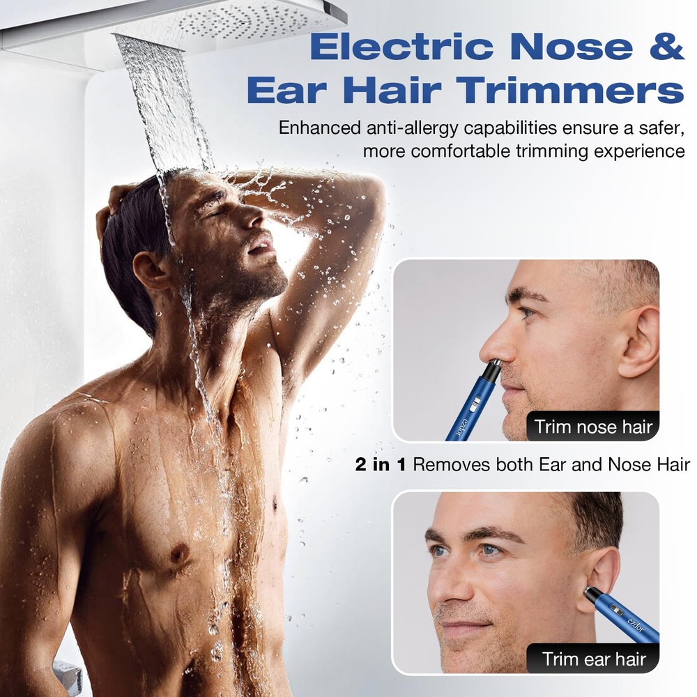 Nose & Ear Hair Trimmers: Professional Cordless Nose Hair Trimmer's blade system is made of high quality stainless steel, which can effectively and comfortably remove unwanted hair from nose, ears and face, one-touch on/off design, suitable for both men and women. Compact size: 0.7 x 4.4” Only 0.9oz Powerful & Painless: The allergy-resistant stainless steel nose hair trimmer features an upgraded copper-core motor that's powerful enough to work with the dual-edge spinning blades system to cleanly cut hairs without pulling almost painlessly. Can trim hair precisely and sharply. The blade system is designed to fit snugly in the nasal cavity, and the enhanced anti-allergy ability ensures a safer, more comfortable trimming experience SMOOTHER & SAFER TRIMMING: Nasal-specific stainless steel round blades with safety guard design and powerful motor powers a 360° rotating dual-blade system that smoothly passes through thick, coarse hairs. Operation noise is less than 50db, use the nose hair clippers freely. USB Rechargeable: Nose & Ear Hair Trimmers comes with a USB cable and built-in battery for easy charging. It can be charged anywhere with the included USB C charging cable, and its powerful fast-charging feature allows it to be fully charged in less than 2 hours, eliminating the hassle of replacing AA batteries too often! EASY TO CLEAN: The stainless steel blades of the nose hair trimmer are waterproof, remove the trimmer head directly from the body for cleaning, washable and removable trimmer head for easy cleaning and maintenance. Convenient body design comes with a dust cover to protect the trimmer head.