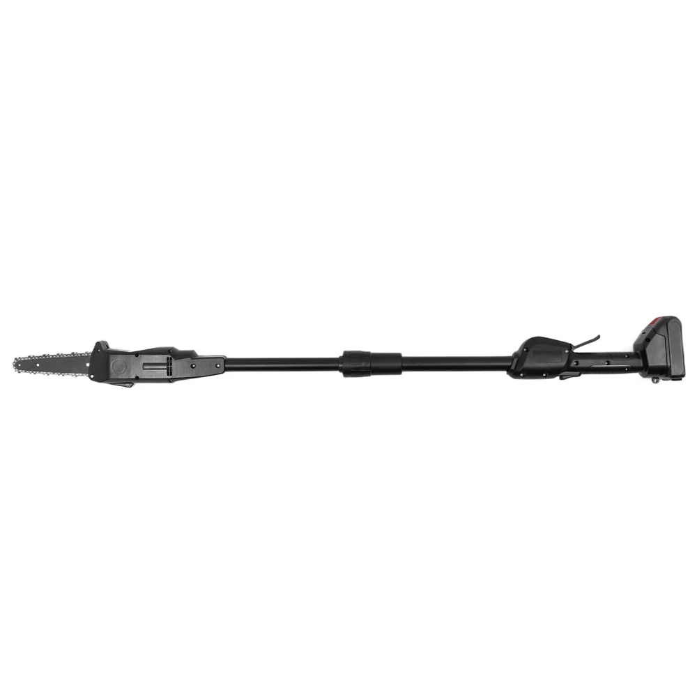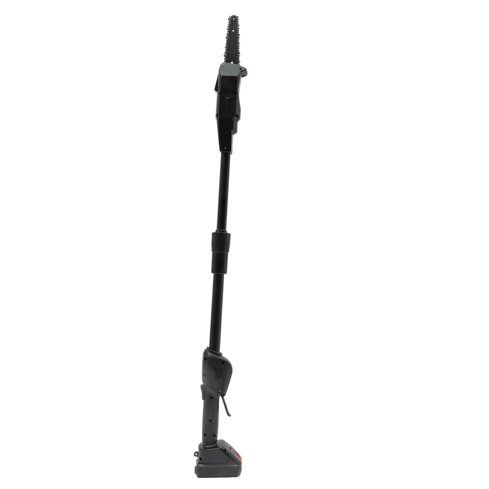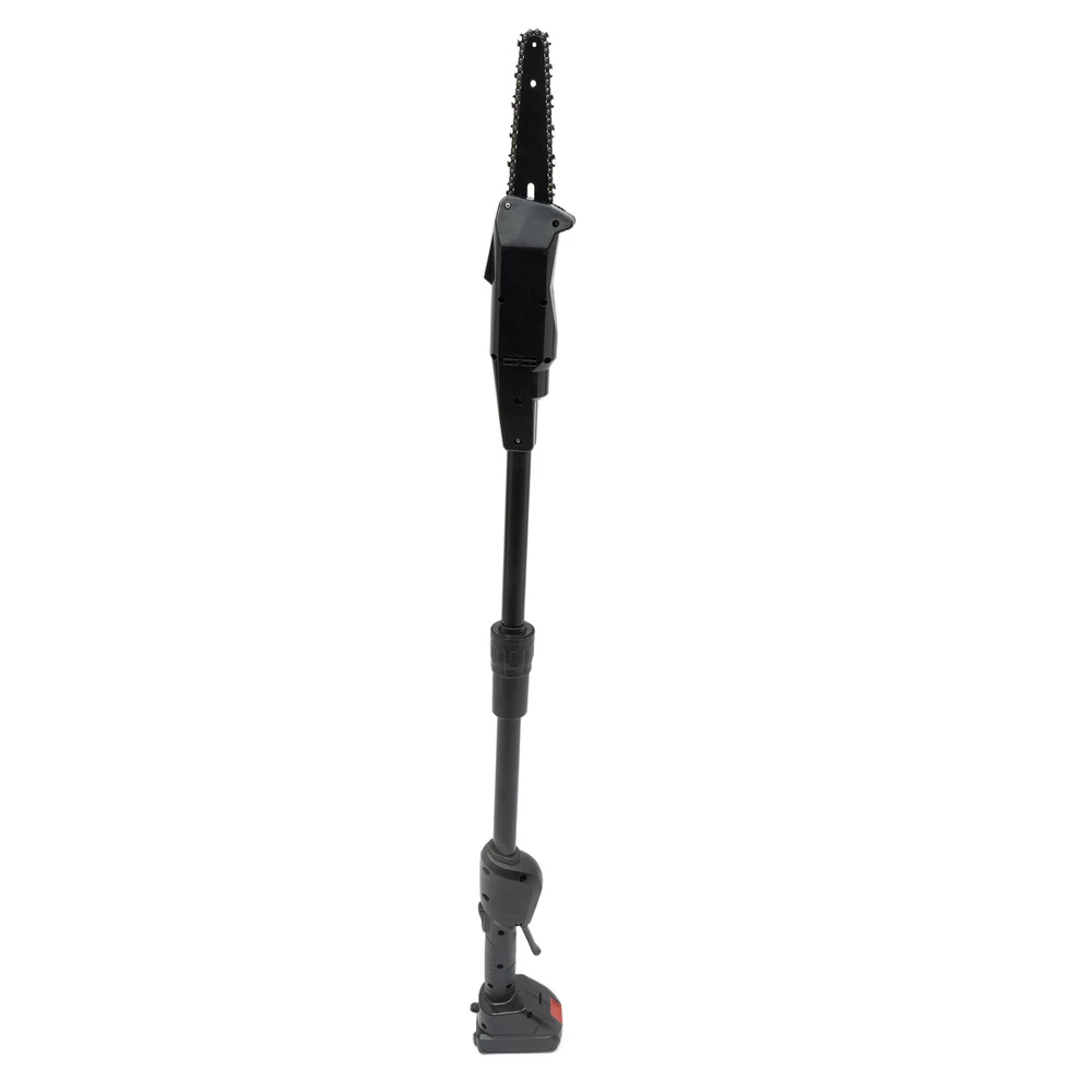 Electric Pole Chain Saw Tree Branch Limb Log Bush Trimmer Pruner Garden Tools ✳️Description This pole saw is made of high-quality manganese steel saw chain, alloy carbon steel blade, and ABS for long life. The safety lock design can provide you with a higher level of security. The cordless design eliminates the difficulty of jack wiring and the limitation of work caused by tangled wires. It will be your powerful working assistant! ✳️ Specification Color: Black Model: F007 Material: Manganese Steel, Alloy Carbon Steel, ABS Process: High-temperature Quenching Power Type: Rechargeable - Lithium Technology Assembly Required: Yes Plug Standard: US Standard Rated Power: 552W Lithium Battery Model: 1500mAh No-load Speed: 4500rpm Saw Chain Speed: 1200m/min / 66ft/s Guide Plate Length: 18cm/7.08in Chain Teeth Pitch: 2.5cm/0.98in Chain Thickness: 15mm/0.59in Input: AC 100-240V 50/60Hz Output: DC21V 1A Charging Time: About 2H Duration: About 0.5H Guide Plate Adjustment Angle: Guide adjustment Angle: cannot be adjusted Gross Weight: 2.8kg/ 6.17 lbs Net Weight: 2.3kg/ 5.07 lbs Base Size: 11.8*7.5 cm/4.64*2.95 in Product Length: 1.25m/4.1ft Package Size: 56*15*16 cm/22.05*5.91*6.3 in ✳️ Package Included 1 * Pole Saw 1 * Charger 1 * Lithium Battery 1 * Screwdriver 1 * Chain 1 * English Manual 1 * Guide Plate ✳️ Key Features High-quality Material made of high-quality manganese steel saw chain, alloy carbon steel blade, and ABS, with high hardness, high-pressure resistance, and long service life Adjustable Length The pole saw (the overall length is 4.1ft) makes tough jobs safer and it doesn't need to rely on unstable ladders to handle overhead work. High-Performance 775 Motor the power of the machine up to 552W, no-load speed up to 4500rpm, and saw chain speed up to 66 ft/s, low noise motor with a quieter and non-choking smoke working environment. High Security The machine can only be started by pressing the safety button and the switch at the same time to prevent accidental start-up High-quality Rechargeable Battery The rechargeable 1500mAh lithium-ion battery can provide you with long use time (half an hour after full charge), avoiding frequent charging Wide Application It is applicable to wood cutting, garden pruning, branch pruning, and shrub pruning, and is widely used in gardens, farms, parks, forests, pastures, forest farms, orchards, and greenhouses High-quality Material: The product is made of high-quality manganese steel saw chain, alloy carbon steel blade, and ABS, with high hardness, high-pressure resistance, and long service life. The deep hardened chain has high wear resistance and sharpness. Easy to Use: Large variable speed switch is easy to press (pressing pressure will control the speed, the more force, the faster the speed). The non-slip handle is ergonomic, so you won't feel fatigued even when holding it for long periods of time. The cord-free design also allows you to be free from wire length restrictions, thus providing you with more freedom of use. Adjustable Length: The pole saw (the overall length is 4.1ft) makes tough jobs safer and it doesn't need to rely on unstable ladders to handle overhead work. It can reach high branches and cut them with ease. Efficient Heat Dissipation: Ventilation holes are designed to facilitate heat dissipation, thus ensuring normal motor temperature and effectively extending the product's service life. High Security: The machine can only be started by pressing the safety button and the switch at the same time to prevent accidental start-up. The built-in control circuit board with overload and overheat protection can provide you with safer use. High Efficiency: The high-performance 775 motor enables the power of the machine up to 552W, no-load speed up to 4500rpm, and saw chain speed up to 66 ft/s, which brings you efficient trimming. And the low noise motor can provide you with with a quieter and non-choking smoke working environment. High-quality Battery: The rechargeable 1500mAh lithium-ion battery can provide you with long use time (half an hour after full charge), avoiding frequent charging. It also has overload and temperature protection to provide safer use. Easy to Carry: The detachable design and lightweight of 5.07 lbs makes it easy to carry. You can take it with you wherever you need to work. ✳️ Details Knob Adjustment: Fixing the sprocket cover and adjusting the chain tightness do not require tools, the built-in knob can help you to install and adjust quickly. ✳️ Application It is applicable to wood cutting, garden pruning, branch pruning, and shrub pruning, and is widely used in gardens, farms, parks, forests, pastures, forest farms, orchards, and greenhouses. ✳️ Notes 1. Please pay attention to the tightness of the chain at all times. It is normal for the chain to slip after the operation. 2. When charging, it is normal for the charger and battery to heat slightly. 3. Please do not use damaged batteries or disassemble chargers or batteries. 4. The battery will explode when it is put on fire. Do not heat the battery! 5. With the gradual decrease of battery power, it is normal for the ability of the shearing diameter to decrease. 6. If the battery is not used for a long time, it must be recharged once every 3 months to prolong its service life. 7. New batteries or batteries that have not been used for a long time need about 5 charge-discharge cycles before reaching the maximum capacity. 8. Please do not recharge the battery after a short time of operation, which may reduce the working time and efficiency of the battery. 9. Products with electrical plugs are designed for use in the US. Please check compatibility before purchasing. 10. Please read the operating manual completely before use. And pay particular attention to the safety instructions included. 11. Please allow the slight color difference caused by the shooting light and the 1-3 cm error due to manual measurement, and make sure you do not mind before or