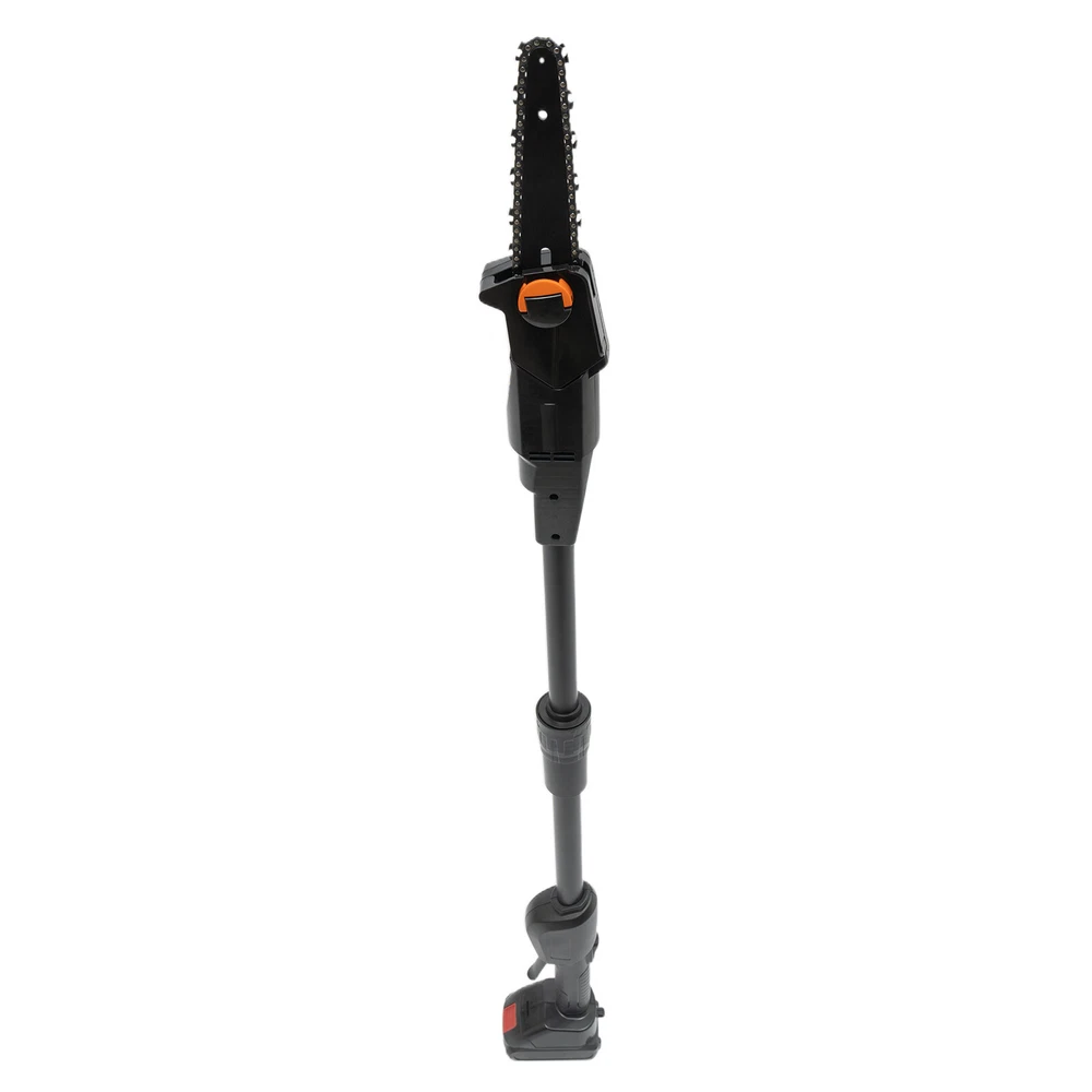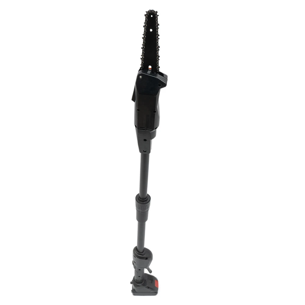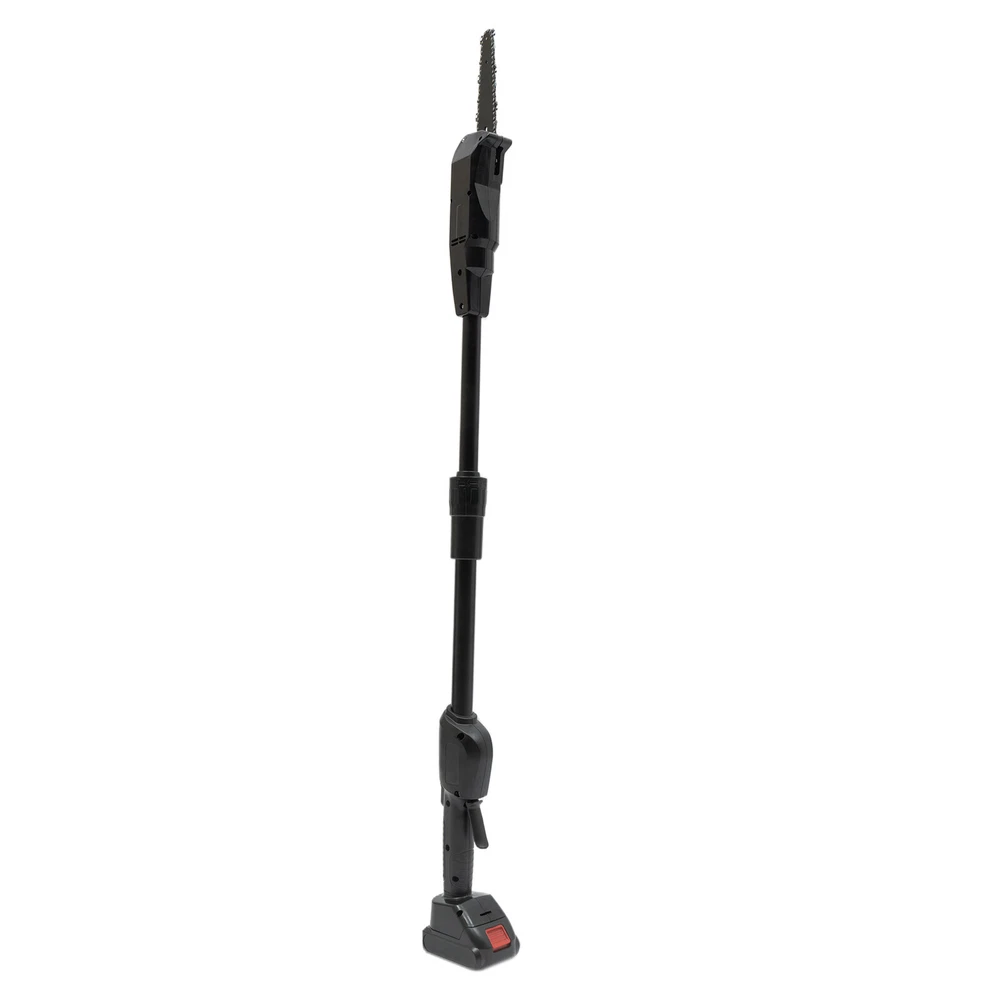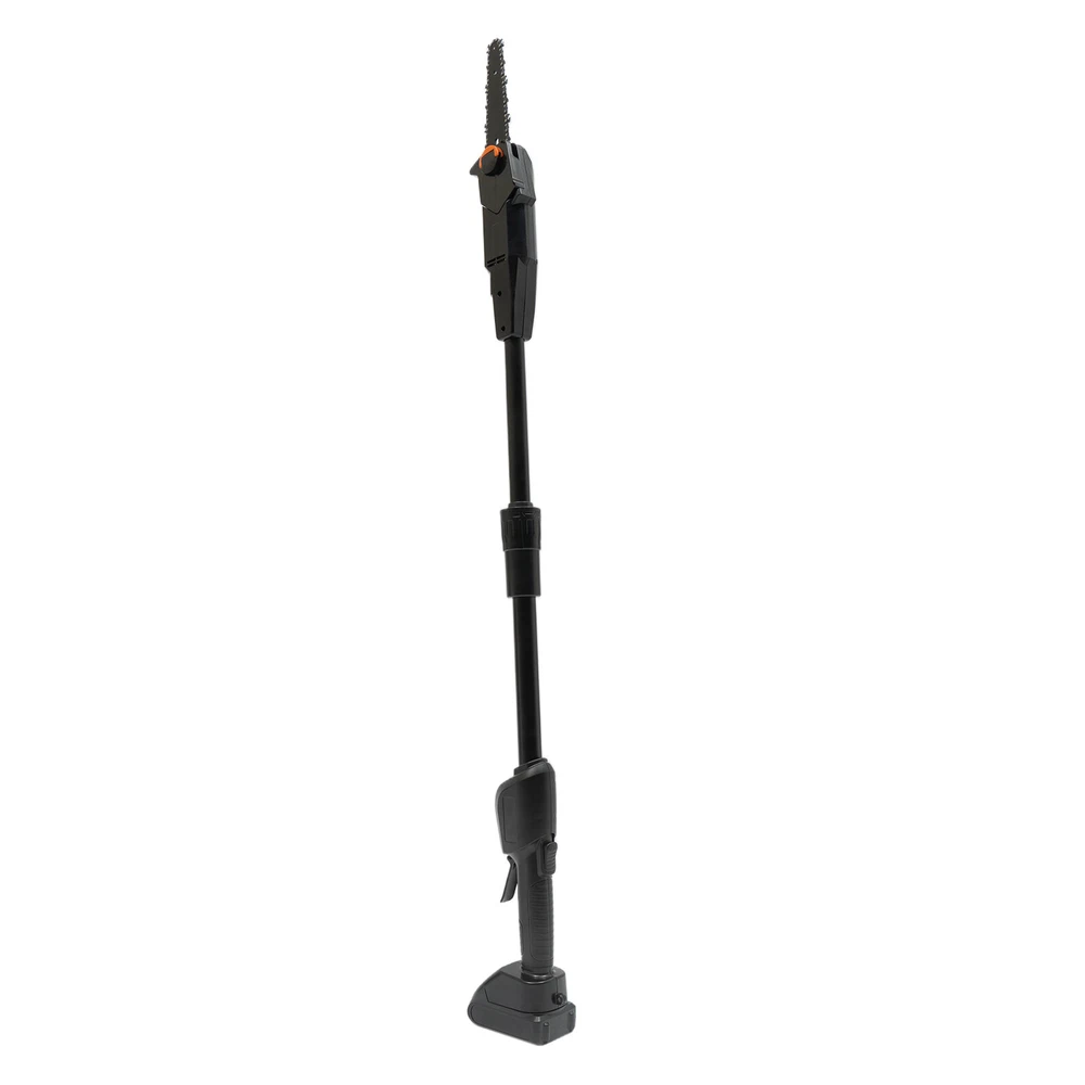 Electric Pole Chain Saw Tree Branch Limb Log Bush Trimmer Pruner Garden Tools ✳️Description This pole saw is made of high-quality manganese steel saw chain, alloy carbon steel blade, and ABS for long life. The safety lock design can provide you with a higher level of security. The cordless design eliminates the difficulty of jack wiring and the limitation of work caused by tangled wires. It will be your powerful working assistant! ✳️ Specification Color: Black Model: F007 Material: Manganese Steel, Alloy Carbon Steel, ABS Process: High-temperature Quenching Power Type: Rechargeable - Lithium Technology Assembly Required: Yes Plug Standard: US Standard Rated Power: 552W Lithium Battery Model: 1500mAh No-load Speed: 4500rpm Saw Chain Speed: 1200m/min / 66ft/s Guide Plate Length: 18cm/7.08in Chain Teeth Pitch: 2.5cm/0.98in Chain Thickness: 15mm/0.59in Input: AC 100-240V 50/60Hz Output: DC21V 1A Charging Time: About 2H Duration: About 0.5H Guide Plate Adjustment Angle: Guide adjustment Angle: cannot be adjusted Gross Weight: 2.8kg/ 6.17 lbs Net Weight: 2.3kg/ 5.07 lbs Base Size: 11.8*7.5 cm/4.64*2.95 in Product Length: 1.25m/4.1ft Package Size: 56*15*16 cm/22.05*5.91*6.3 in ✳️ Package Included 1 * Pole Saw 1 * Charger 1 * Lithium Battery 1 * Screwdriver 1 * Chain 1 * English Manual 1 * Guide Plate ✳️ Key Features High-quality Material made of high-quality manganese steel saw chain, alloy carbon steel blade, and ABS, with high hardness, high-pressure resistance, and long service life Adjustable Length The pole saw (the overall length is 4.1ft) makes tough jobs safer and it doesn't need to rely on unstable ladders to handle overhead work. High-Performance 775 Motor the power of the machine up to 552W, no-load speed up to 4500rpm, and saw chain speed up to 66 ft/s, low noise motor with a quieter and non-choking smoke working environment. High Security The machine can only be started by pressing the safety button and the switch at the same time to prevent accidental start-up High-quality Rechargeable Battery The rechargeable 1500mAh lithium-ion battery can provide you with long use time (half an hour after full charge), avoiding frequent charging Wide Application It is applicable to wood cutting, garden pruning, branch pruning, and shrub pruning, and is widely used in gardens, farms, parks, forests, pastures, forest farms, orchards, and greenhouses High-quality Material: The product is made of high-quality manganese steel saw chain, alloy carbon steel blade, and ABS, with high hardness, high-pressure resistance, and long service life. The deep hardened chain has high wear resistance and sharpness. Easy to Use: Large variable speed switch is easy to press (pressing pressure will control the speed, the more force, the faster the speed). The non-slip handle is ergonomic, so you won't feel fatigued even when holding it for long periods of time. The cord-free design also allows you to be free from wire length restrictions, thus providing you with more freedom of use. Adjustable Length: The pole saw (the overall length is 4.1ft) makes tough jobs safer and it doesn't need to rely on unstable ladders to handle overhead work. It can reach high branches and cut them with ease. Efficient Heat Dissipation: Ventilation holes are designed to facilitate heat dissipation, thus ensuring normal motor temperature and effectively extending the product's service life. High Security: The machine can only be started by pressing the safety button and the switch at the same time to prevent accidental start-up. The built-in control circuit board with overload and overheat protection can provide you with safer use. High Efficiency: The high-performance 775 motor enables the power of the machine up to 552W, no-load speed up to 4500rpm, and saw chain speed up to 66 ft/s, which brings you efficient trimming. And the low noise motor can provide you with with a quieter and non-choking smoke working environment. High-quality Battery: The rechargeable 1500mAh lithium-ion battery can provide you with long use time (half an hour after full charge), avoiding frequent charging. It also has overload and temperature protection to provide safer use. Easy to Carry: The detachable design and lightweight of 5.07 lbs makes it easy to carry. You can take it with you wherever you need to work. ✳️ Details Knob Adjustment: Fixing the sprocket cover and adjusting the chain tightness do not require tools, the built-in knob can help you to install and adjust quickly. ✳️ Application It is applicable to wood cutting, garden pruning, branch pruning, and shrub pruning, and is widely used in gardens, farms, parks, forests, pastures, forest farms, orchards, and greenhouses. ✳️ Notes 1. Please pay attention to the tightness of the chain at all times. It is normal for the chain to slip after the operation. 2. When charging, it is normal for the charger and battery to heat slightly. 3. Please do not use damaged batteries or disassemble chargers or batteries. 4. The battery will explode when it is put on fire. Do not heat the battery! 5. With the gradual decrease of battery power, it is normal for the ability of the shearing diameter to decrease. 6. If the battery is not used for a long time, it must be recharged once every 3 months to prolong its service life. 7. New batteries or batteries that have not been used for a long time need about 5 charge-discharge cycles before reaching the maximum capacity. 8. Please do not recharge the battery after a short time of operation, which may reduce the working time and efficiency of the battery. 9. Products with electrical plugs are designed for use in the US. Please check compatibility before purchasing. 10. Please read the operating manual completely before use. And pay particular attention to the safety instructions included. 11. Please allow the slight color difference caused by the shooting light and the 1-3 cm error due to manual measurement, and make sure you do not mind before or