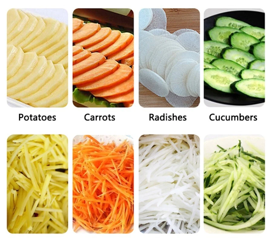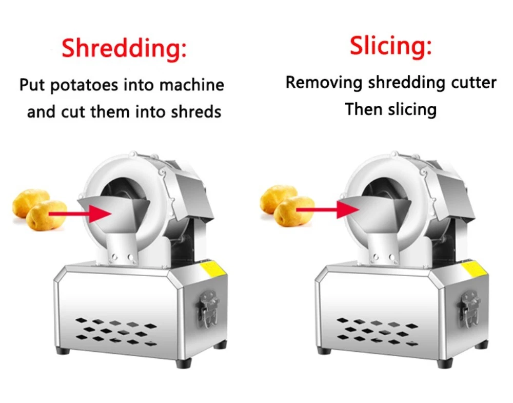 Electric Potato Cutter Commercial Potato slicer/shredder Automatic radish potato slicing & shredding machine Stainless steel 1, Anti corrosion and rust prevention, precise cutting, mass production, saving time and effort. 2, Adjustable slice thickness, The machine can cut potato shreds directly. Just remove the shredding cutter before slicing. 3, Send machine with Two blades.