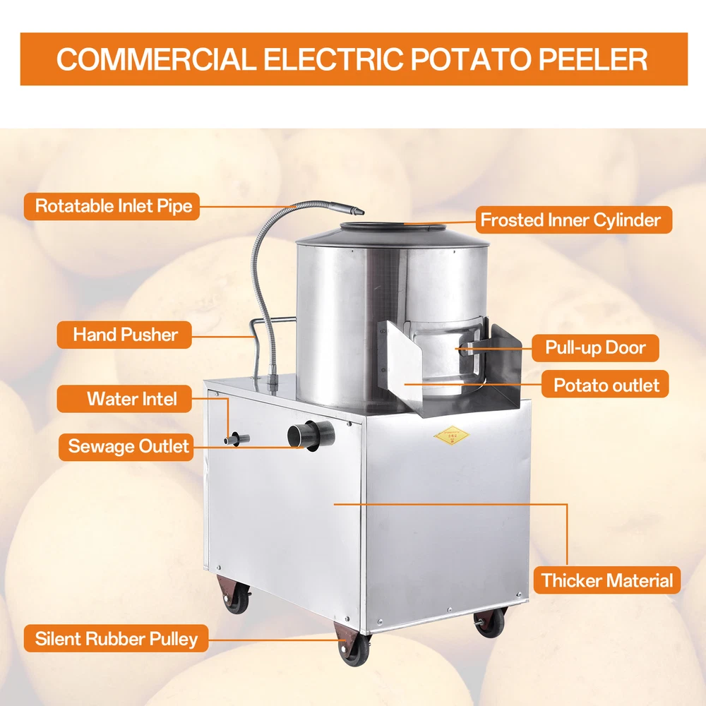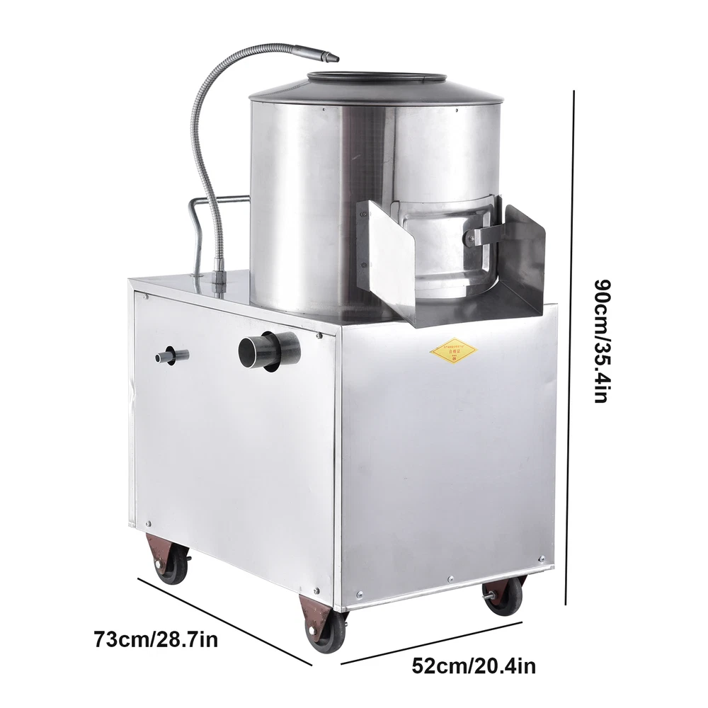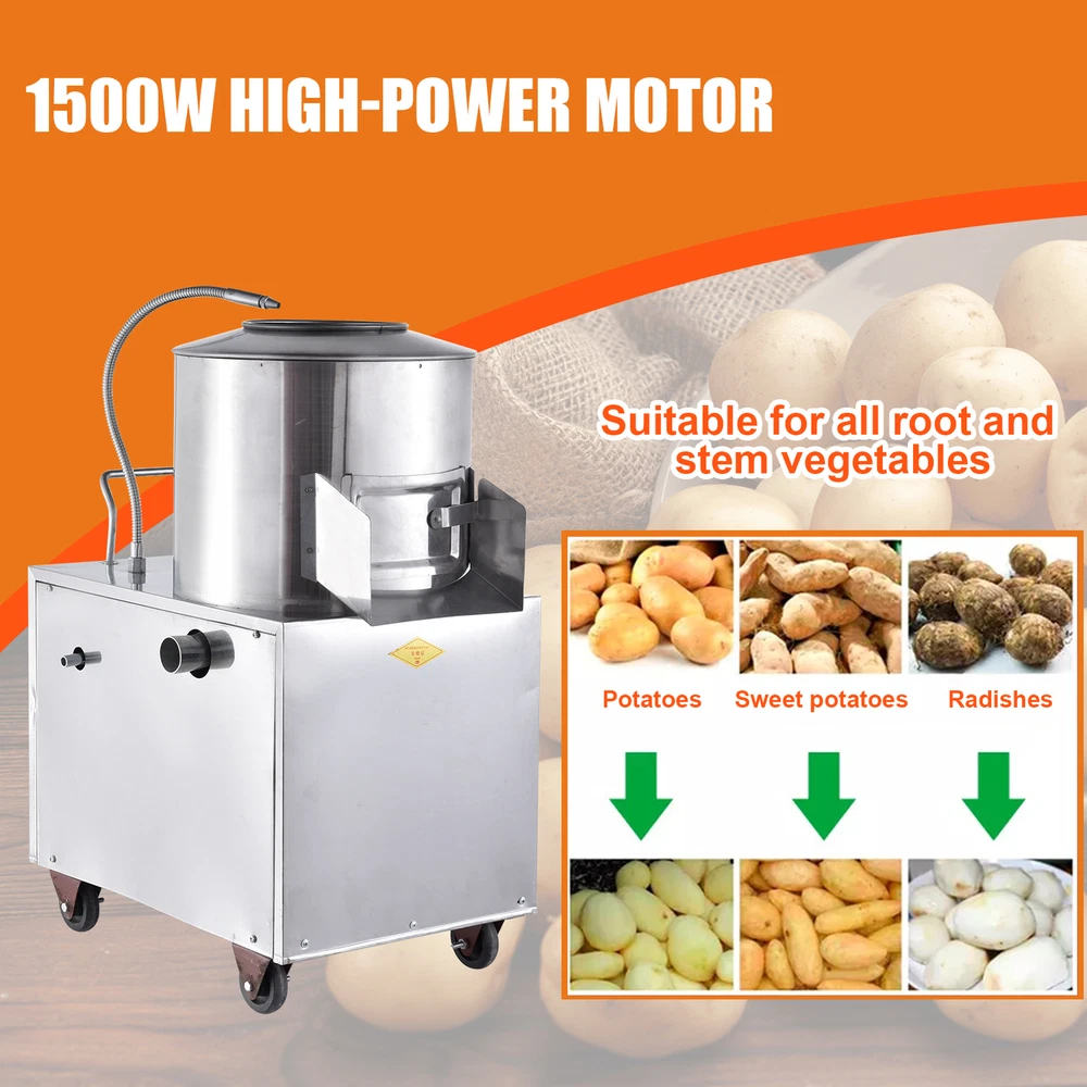 Store category Sign Up Now ! You may also like Product Description Wonderful Performance: Engineered with food safety standards, this solidly-built electric potato peeler boasts a 1.5KW stainless steel design that can effortlessly peel and process 150-220kg of potatoes in just 60 minutes. \n Simple to Operate: Thanks to its high-capacity motor, this electric potato peeler peels potatoes quickly and with minimal damage. Its controllable water pipe design allows for the easy adjustment of waterflow, resulting in a low breakage rate and effortless peeling \nSafety Protection Ensured: Operate our electric potato peeler with peace of mind, thanks to its equipped leakage protection plug, waterproof on-off, and external transparent protective cover. With these improved safety measures, we ensure that it is safe to use and provide additional safety protection to prevent any possible accidents \nVersatile Functionality: Peel a variety of vegetables with ease using our electric peeler equipped with advanced centrifugal rotation friction technology. From potatoes and sweet potatoes to taro and ginger, enjoy versatile use in the kitchen \nHumanized Design: Equipped with a humanized handle and steering casters, this electric potato peeler ensures 360-degree uniform peeling and a frosted inner wall design for easy mobility\n\nThis 1.5KW potato peeler utilizes friction peeling technology to achieve 360-degree uniform peeling. Safe to operate, it boasts a low breakage rate. Ideal for commercial kitchens and large-scale preparation.\n\nSpecifications: Product Name: electric potato peeler Material: Stainless steel Power: 1.5KW Voltage 110V/ 60HZ Capacity: 150-220kg/hour Product size: about 60x40x84cm/23.62x15.75x33.07 inches\nPacking List: 1* Automatic Potato Peeler 1* Instruction Manual Notes: 1. Due to different lighting and screen settings, the item color may be slightly different from the picture. 2. Due to different manual measurements, please allow a 1-2cm difference in size. 3. Please check whether there is any debris inside the machine before use. 4. It is strictly forbidden to put your hands inside the machine during operating. 5. Please make sure to disconnect the power supply before cleaning or disassembly. 6. Make sure the machine is reliably grounded to prevent electric shock. 7. Lubricate the bearings regularly to keep the machine running well. Payment Delivery details Terms of sales About us Feedback & DSRs Payment Before you palce an order, please kindly make sure that you have a paypal account. We accept PAYPAL payment only. Payment should be completed within 2 days after auction closed, or unpaid dispute will be filed for an closing auction. An unpaid case will be filled after 4 days. Delivery details We ship to your eBay address. Each package will be shipped to US by UPS Regular Parcel with tracking number. Please check your shipping address carefully before checkout, it can't be changed if order completed. All items will be shipped within 1-2 business day upon receipt of payment.Orders placed on weekend will be shipped within 3 days. If you do not receive your item in 7-10 business days.please contact us immediately for further assistance. We will be responsible for any damages or losses incurred in the shipping process. About us We maintain high standards of excellence FIVE STAR and strive for 100% customer satisfaction! Positive Feedback is very important to us. We hope that you contact us immediately Before you give us neutral or negative feedback, so that we can satisfactorily address your concerns. We promise to offer the lowest price and high quality produce. Our working time: From Monday to Friday(9:30 am to 18:00pm), we don't working on holidays ,hope you can understand and know that , thank you. Please always talk to us via ebay Message. We appreciate your business and look forward to growing our e-Bay sales with satisfied customers. Feedback Contact us If you have any questions, please feel free to contact with us by ebay Message during our business hours ( 9:30a.m. to 5:30 p.m.), or email us through eBay, we will try our best to help you to resolve it. For any presale or after-sale questions,please do feel free to email us! Due to the time difference, each email will be replied within 1 working day,and weekend will be delayed a bit. Feedback
