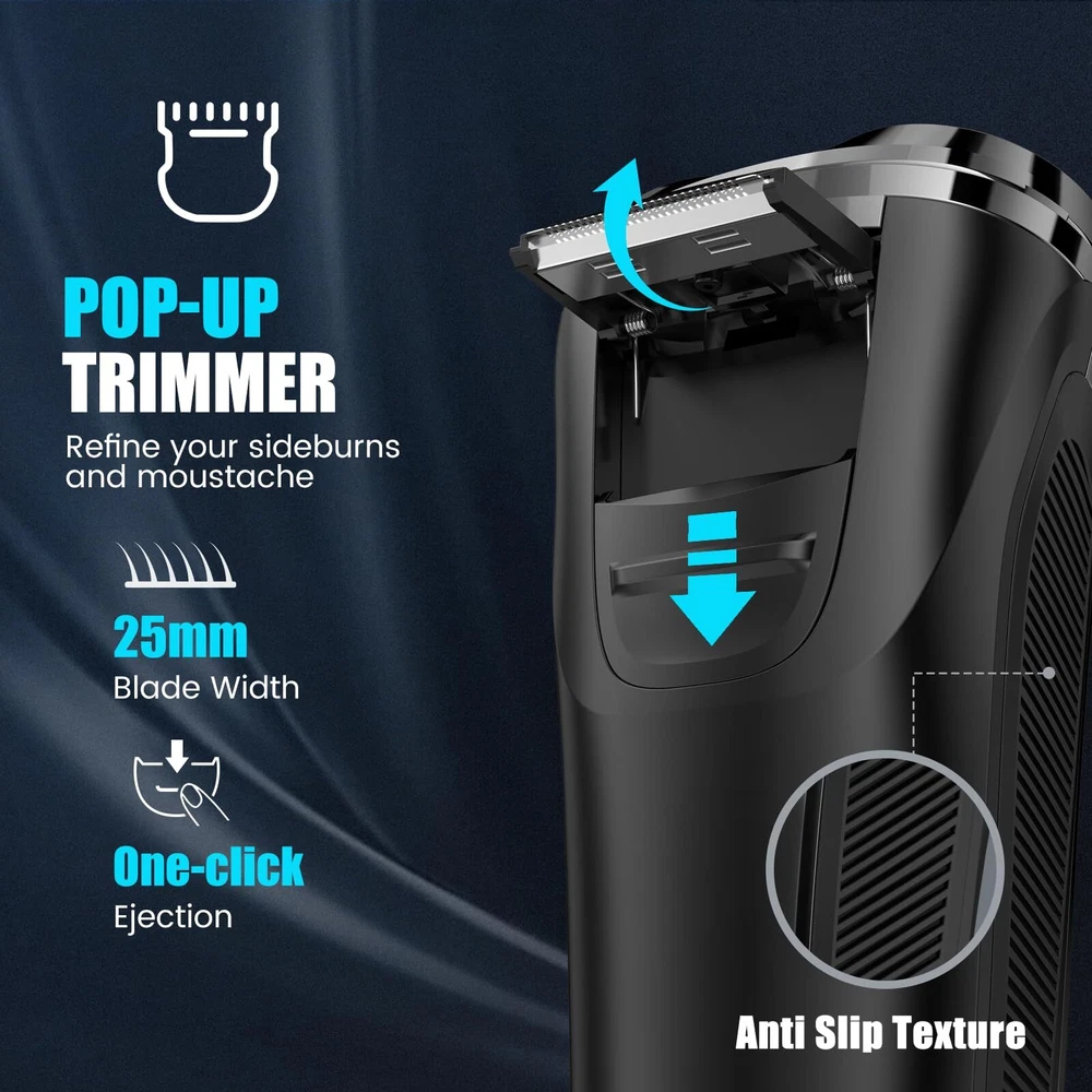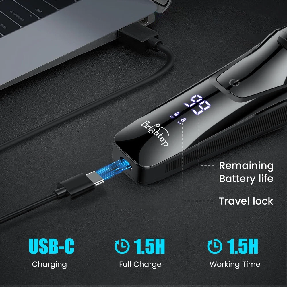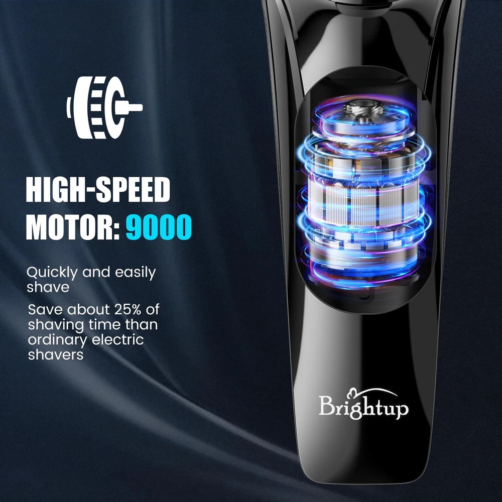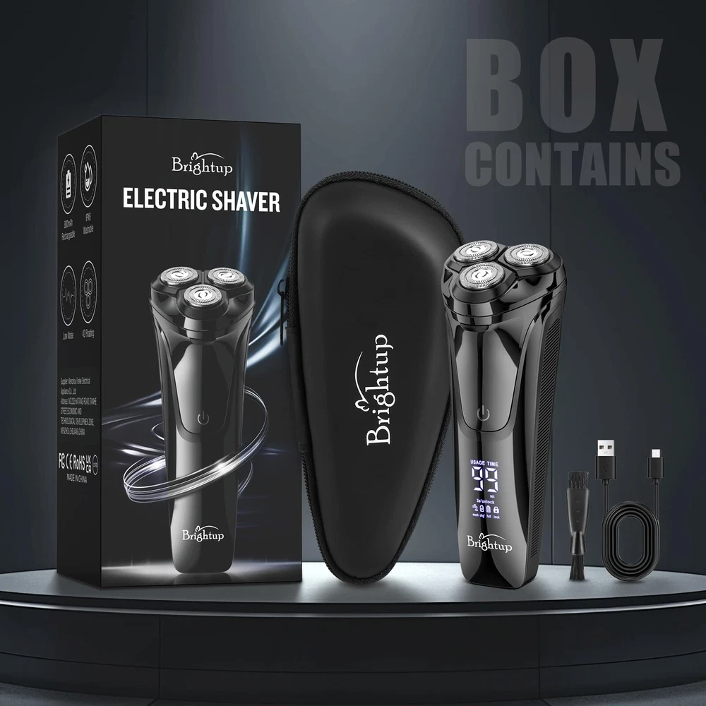 4D Floating Head for Clean Shave: shavers for men electric razor features flexible rotating shaver head for close shaving, providing you with a smooth and efficient grooming experience. Newer rotary blade technology plus a high-speed motor enables it to glide effortlessly along the contours of your face, neck, chin and jaw for a comfortable shave, making our electric razors for men face the perfect choice for any man's grooming routine. Travel Lock Feature: mens shavers electric cordless rechargeable is compact, lightweight design, ingenious travel lock and a travel case make the mens electric razor convenient for travel. Simply press and hold the on/off button for 3 seconds to activate, ensuring your mens razor electric with rotating head shuts off safely on the go. Design with LED display, you can know the remaining battery life and recharge in time. IPX6 Waterproof & Easy to Clean: Designed for wet and dry use, our mens electric shaver is full body water resistant and the sharp blades are washable under the faucet, whether you're in a rush for a dry shave or prefer a luxurious shave in the shower, this mens beard shaver has you covered. Plus, the one-touch-open head and rinsable design allow for quick, hassle-free cleaning, ensuring your shaving machine is always hygienic and ready for your next shave. Convenient USB-C Charging: 18650 lithium-ion battery powered men's electric razor allows you can charge the mens electric shavers for face via the included standard USB C cable. Charge up in just 1.5 hours and holds a charge for 90 minutes of cordless shaving time. One-Click Pop-up Trimmer: This flip up straight blade on the backside is handy for detailing sideburns, beards, mustache and other facial hair. It’s easy to use and adds versatility. Perfect for achieving precise trimming with the men beard shaver. Very smooth on the skin and won't pull hair. The Ultimate Mens Gift Ideas: mens facial razor electric comes with a storage case that fits the three head electric razor waterproof nicely, a usb c charging cord (no adapter), snap on shaving heads cover, cleaning brush & instructions. Give this unique men shaver electric as christmas gifts, anniversary gifts, birthday gifts, father’s day for boyfriend, dad, husband, brother or teenage boys. Also act as young men first starter razor electric.