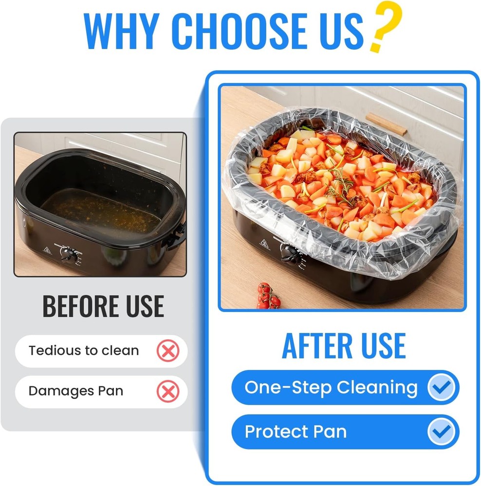 Free eBay listing template designed by dewiso.com Electric Roaster Liners 34 x 18 Inch, 10 Count Disposable Roaster Oven Bags, Heat-Resistant Liners Fit 16, 18, 22 Quart Roasters for Quick & Easy Cleanup FREE AND FAST SHIPPING! About this item Mess-Free Cleanup in Seconds-Save time and effort after cooking—simply remove and discard the liner. Our electric roaster liners are leakproof and greaseproof, preventing stuck-on messes and protecting your roaster pan from stains and residue. Food-Grade, Safe & Odorless Material-Crafted from high-strength PA material that is BPA-free, non-toxic, and odorless, these liners ensure your food retains its original flavor. Cook with peace of mind using our certified food-safe liners. High Heat Resistance up to 350℉-Designed to withstand temperatures up to 350℉, these liners distribute heat evenly, making them ideal for slow-cooked meals like casseroles, chili, and stews—without compromising safety or taste. Extra-Large Size Fits Most Roasters-Measuring 34 x 18 inches, our disposable liners are compatible with 16, 18, and 22-quart electric roaster ovens. Need to cook multiple dishes? Use two liners at once to separate meals in the same roaster. Usage Tips & Limitations-Perfect for liquid-based dishes like soups, stews, and vegetables. Do not use for whole-muscle meats (e.g., chicken, turkey, steak). Always add water and preheat the pan for 3 minutes to prevent the bag from melting due to uneven heating. Product We offer a 30-Day Return Policy on items which you are not completely satisfied with. You have the option for a full-refund or an exchange of the item. No returns are available on items shipped outside of the US . Shipping We offer Free Shipping to the US and ship within 2 business days of payment, usually sooner. We use UPS express shipping. That's why your products are usually delivered within 3 days . Contact We try our very best to make sure every customer is completely satisfied. If there's a problem , message us! We're happy to help. 24/7 live chat available.