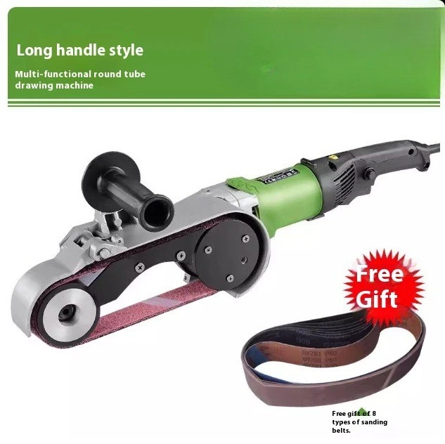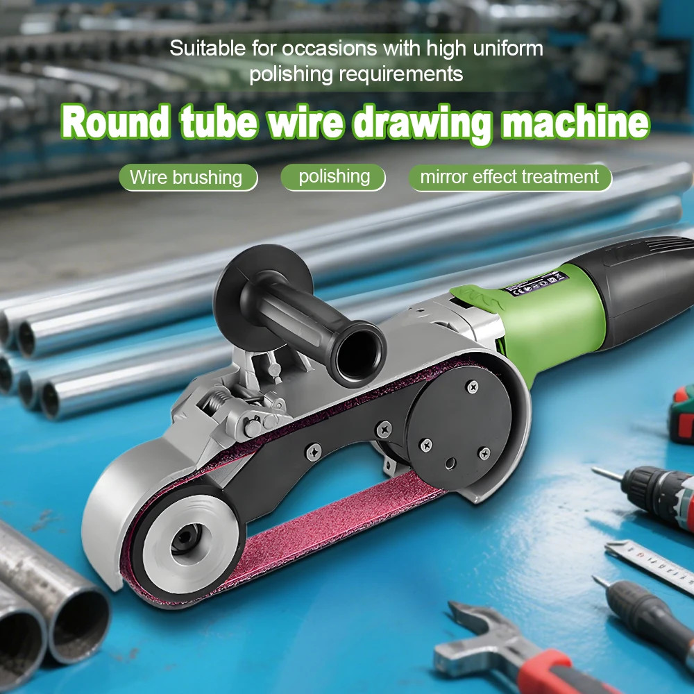 Electric Round Tube Polishing Machine Stainless Steel Curved Edge Grinding 220V Designed for uniform grain grinding, it can produce various brushed effects. It also achieves polished and mirror finishes. Whether grinding thick or thin tubes, or even round tubes for railings and handrails, this machine handles them with ease. For removing new welds or repairing old railings and welds, the round tube grinder is the ideal choice.