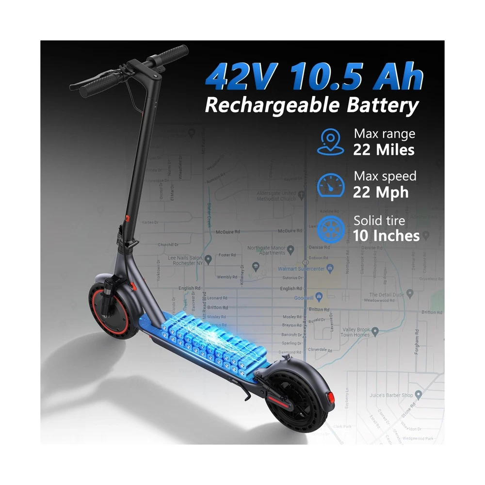 Electric Scooter for Adults, 8.5" Tires/10 Tires, 19/22Mph, 350W/500W Motor, 21-28 Miles Long Range, Folding E-Scooter with Dual Suspension and Braking System, Smart Control(V1/SPRO/MAX) Description --- Features: Powerful Motor & Long RangeThe electric scooter for adults with a 500W brushless hub motor allows for speed up to 22mph. High-capacity rechargeable and replaceable battery (42V/10.5Ah) has a max range of 22 miles under certain conditions. The max load is 265 lbs so it can meet the difference needs of teenagers and adults. Dual Suspension and Solid TireThe 10honeycomb tires, along with the shock absorbing system, make this electric scooter adults for a smooth and comfortable ride even on rough surfaces while the tires don't require additional maintenance or repair. This escooter can handle common inclines well. Ride SafetyThis e scooter product is UL 2272 certified. The e-scooter has a dual braking system and non slip deck, so it is safer to ride. Also, the e-scooter for teens & adults has super bright LED headlight and brake tail light for better visibility and riding safety. LED Display & Smart Control &LockableYou can check your speed, modes and battery level on the LED digital display. check and control the electric scooter's features via your cell phone, such as checking cruise control, speedometer, unlocking or locking the scooter and more. It works with both iPhone and Android smartphones. Portable&Lightweight DesignThe adult electric scooters can be folded in seconds and stored in car trunks, offices and other places to save space. This scooter is made of aluminum and weighs only 36 pounds, so you can easily take this foldable scooter to subways and buses. After-sales serviceOur MAXSHOT e-scooters provide one-year warranty, if you have any problem with your product, we will reply within 24 hours. Item DimensionsUnfold: 44.5 x 16.9 x 48.8 inches. Fold: 44.5 x 16.9 x 24.4inches Warming Tips: The first initial charge is 6 hours. Each subsequent charge time is no more than 5 hours. Warming Tips: Users should regularly check the condition of the battery and charging device, to ensure that the matching battery is used and the correct charging method is used, and avoid charging in an unventilated or flammable environment. Product Details: Brand: MAXSHOT Color: black Age Range (Description): Adult Special Feature: Digital Display, Dual Braking System, Lightweight, Cruise Control, Foldable Weight Limit: 265 Pounds Product Dimensions: 44.5"L x 16.9"W x 48.8"H Number of Wheels: 2 Model Name: V1 SPRO Wheel Material: Rubber Frame Material: Aluminum Brand: ‎MAXSHOT Color: ‎black Age Range (Description): ‎Adult Special Feature: ‎Digital Display, Dual Braking System, Lightweight, Cruise Control, Foldable Weight Limit: ‎265 Pounds Product Dimensions: ‎44.5"L x 16.9"W x 48.8"H Number of Wheels: ‎2 Model Name: ‎V1 SPRO Wheel Material: ‎Rubber Frame Material: ‎Aluminum Handle Height: ‎48.8 Inches Wheel Size: ‎10 Inches Wheel Type: ‎Solid Suspension Type: ‎Dual Suspension Brake Style: ‎dual braking, mainly Rear Braking Warranty Type: ‎Limited Charging Time: ‎4 Hours Maximum Distance Range: ‎22 Mils Manufacturer: ‎MAXSHOT Item Package Dimensions L x W x H: ‎46.8 x 23.6 x 8 inches Package Weight: ‎20.3 Kilograms Item Dimensions LxWxH: ‎44.5 x 16.9 x 48.8 inches Brand Name: ‎MAXSHOT Warranty Description: ‎1 year warranty Material: ‎Aluminum Suggested Users: ‎unisex-adult Part Number: ‎V1 SPRO Style: ‎V1SPRO-10.5Ah-22Miles Included Components: ‎electric scooter, user manual, charger Date First Available: June 6, 2024 Delivery We Do Not Ship Outside of the Continental US. Return Policy All items qualify for returns within 30 days of receipt. Buyer is responsible for return shipping on any item that is not damaged. Feedback We take our reputation seriously, we buy and sell online, so we understand the value of trust. If you are unsatisfied with your order, please contact us and we will work with you to resolve it to your satisfaction.