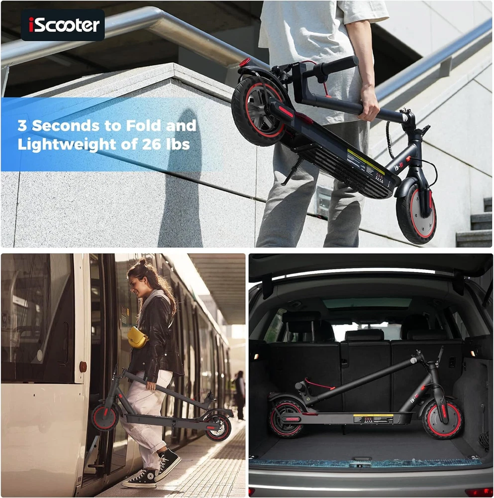 STORE NEW ARRIVALS ADD TO FAVORITE VIEW FEEDBACK CONTACT Store New Arrivals Add to Favorite View Feedback Contact Electric Scooter, 18 Miles Range, 19 MPH Top Speed, 350W Foldable Commuting Electric Scooter with Double Braking Systems and APP for Adults and Teens Description Age Range Description Adult Style i9(350W, 18miles) Age Range (Description) Adult Grip Type Ergonomic Frame Material Aluminum Wheel Material Rubber Number of Wheels 2 Wheel Type Pneumatic Maximum Distance Range 18 Miles Manufacturer Zhejiang jinpan import and export co.,Ltd Weight Capacity Maximum 220 Pounds Brake Style Front Braking, Rear Braking Handlebar Type Fixed Warranty Type Limited Item Weight 10.9 Kilograms Charging Time 6 Hours Special Features 19MPH Top Speed, APP Controller, Non Slip Deck, foldable, Double braking system(Electronic brake+disc brake) Special Feature function(f) {var _np=(window.P._namespace("DetailPageProductOverviewTemplatesJava"));if(_np.guardFatal){_np.guardFatal(f)(_np);}else{f(_np);}}(function(P) { P.when('A').execute(function(A){ A.on('a:truncate:po-attribute-truncate-3:updated', function(data) { var isTruncated = !data.truncateInstance.getIfTextFits(); var seeMoreElement = document.getElementById('po-attribute-see-more-id-3'); if(seeMoreElement) { seeMoreElement.style.display = isTruncated ? '' : 'none'; } }) }); })); 19MPH Top Speed, APP Controller, Non Slip Deck, foldable, Double braking system(Electronic brake+disc brake) See more Weight Limit 220 Pounds Item Dimensions L x W x H 42"L x 17"W x 44"H Handle Height 76 Centimeters Wheel Size 8.5 Inches Color Black Recommended Uses For Product Commuting Model Name E9PRO Product Dimensions 42"L x 17"W x 44"H 【Cost-Effective Electric Scooter for Commuters 】Discover an affordable and efficient commuting solution with our high-performance electric scooter adults. 350W electric scooters offers a maximum speed of 19mph, making your daily commute faster and more cost-effective. The Cruise Control System ensures a smooth and enjoyable ride. The scooter for adults has a maximum load capacity of 220lbs, catering to a wide range of riders. It is certified to UL2272. 【Long-lasting and Safety 】Equipped with a high-capacity 36V/7.5AH battery, our scooter electric boasts a max travel range of 18 miles. With a quick charging time of 3-6 hours, you'll have more time on the go. Prioritizing your safety, it features warning taillights and ultra-bright headlights with a range of up to 15 meters, enhancing visibility during nighttime rides. The double braking system, including disc braking and EABS regenerative anti-lock braking, ensures a secure riding experience. 【Smart APP Control】Take control of your ride with the free Smart Tuya APP, available for both iPhone and Android. Connect your adult electric scooter via Bluetooth and manage features such as lock/unlock, light control, gear adjustment, start mode selection, cruise control, and more. The smart APP enhances your riding experience and simplifies scooter operation. 【Foldable and Convenient】Experience unparalleled convenience with our one-step folding design that allows you to fold the scooter in just 3 seconds. Perfect for city commuting, campus travel, and office commutes, the scooter can be easily folded and weighs only 26 lbs, making it compact enough to fit in a car trunk. Elevate your family trips with this foldable electric scooter, providing unmatched convenience and joy. 【Quality Assurance by iScooter】At iScooter, we are committed to delivering premium, affordable, and reliable products. Enjoy peace of mind with our 12-month or 180-day warranty for different parts. If you have any questions, our dedicated customer support is ready to assist you. Your satisfaction is our utmost priority. Make your life more wonderful with iScooter's Foldable Electric Scooters. Product Description The video showcases the product in use. The video guides you through product setup. The video compares multiple products. The video shows the product being unpacked. If you are looking for one special gifts for your childs or friends, We think that our i9 electric scooter will be the perfect one! Folding: 42''x17"x19" Unfolding: 42”*17“*44“ 1 Carbonfree Certified 2 Lightweight 1 36V/7.5AH Battery 2 Smart APP 1 Headlight &Taillight 2 Dual Braking Systems 3 Solid Tire&Mudguard How fast can electric scooters go? iScooter i9 electric scooters can go about 19mph with 2st gear, 9mph with 1st gear. What are the benefits of an electric sooter? The benefits of electric scooters are that they are affordable, high cost-effective and portable to save your time to find a parking space or wait for subway. They can also save you money on gas because they can be charged quickly. How long do e scooters last? With proper care and maintenance, an e scooter can last anywhere between 2 to 5 years or even longer. How do I choose my scooter electric? You can focus on the following factors: Rider's weight, Ease of installing, Battery life, Top speed you prefer, the weight of sooter and Appearance. Why there are different top speeds with same scooter. The factor of influencing the top speed: Rider's weight, the condition of road and weather, daily maintenance, etc. RECOMMEND FOR YOU Add to Cart Add to Cart Add to Cart Add to Cart Add to Cart Add to Cart Customer Reviews 4.1 out of 5 stars 998 4.2 out of 5 stars 59 4.3 out of 5 stars 362 4.2 out of 5 stars 91 4.6 out of 5 stars 178 4.5 out of 5 stars 24 3.9 out of 5 stars 58 Price $239.99 $ 239 . 99 $299.99 $ 299 . 99 $539.99 $ 539 . 99 $689.99 $ 689 . 99 $179.99 $ 179 . 99 $399.99 $ 399 . 99 — Motor Power 350W 500W 800W 750W 350W 250W 70W Top Speed 19 MPH 15.6 MPH 24 MPH 28 MPH 15.6 MPH 5 MPH 6 MPH Long Range 18 Miles 21 Miles 25 Miles 50 Miles 12 Miles 12.4 Miles 5 Miles Tires Type 8.5'' Honeycomb Tires 12" Pneumatic Tires 10'' Off Road Tubeless Tire 10" Pneumatic Tires 8.5'' Pneumatic Tires 197*60MM Solid Tires 5'' & 3.5''PU Tires Hill Climbing Approx. 15% App