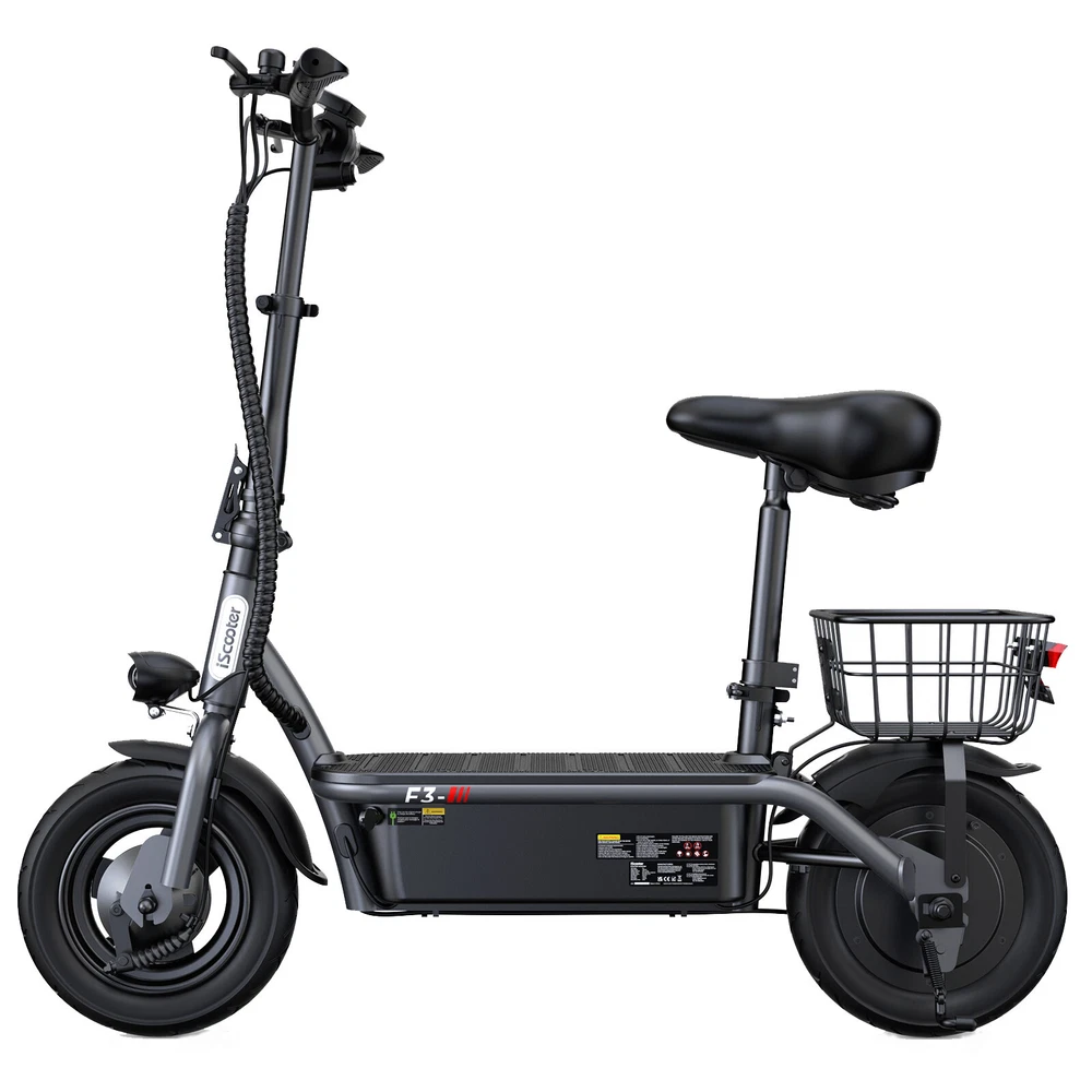 Electric Scooter with Seat & Basket 37 Miles Range 1000W Adult Folding E-Scooter Specification: F3 Parameters Model F3 Max Speed 28 MPH Max Range 37miles Charging Time 5-6h Max Slope 25% Net Weight 43 lbs Motor 1000W Battery 48V 13 AH Foldable Yes Suitable For Adults Brake Dual Disc Brake Charger 54.6V 2A Lights Front light and red tail light Suspension Type Front and rear dual suspensions Drive Type Rear Wheel Drive Wheel Size 10 inches Wheel Type Pneumatic Wheel Material Rubber Age Range 14+ Max Load 264 lbs Item Dimensions LxWxH 40.55"L x 21.85"W x 37.4"H Main Features: 【Powerful Performance】 F3 electric scooter is equipped with a powerful 1000W motor, offering 3 speed modes (9/21/28mph), allowing you to choose the speed that suits riding needs. The e scooter durable carbon steel alloy frame supports up to 264lbs, ensuring stability and long-lasting performance. Please note: Press M twice to switch speed 【Long Range】 F3 adult electric scooter is equipped with a high-capacity 48V 13Ah battery, delivering an impressive 37-mile range on a single charge. Perfect for daily commutes or longer rides, electric scooter for adults offers the freedom to travel without frequent recharging 【Enhanced Safety Features】 F3 escooter ensures enhanced safety with its front and rear drum brakes, providing smooth and reliable stopping power. The power-off brake system adds extra security, while the front and rear lights improve electric scooters visibility during nighttime or low-light rides, ensuring a safer journey wherever you go. It is certified to UL2272 【Comfortable Riding】 F3 electric scooter adults features 10-inch inflatable tires, delivering a smoother and more comfortable ride, even on rough or uneven surfaces. With a weight of just 43 pounds, scooter electric for adults strikes the perfect balance between portability and stability, making it ideal for both short commutes and longer journeys 【Why Choose iScooter 】 We are committed to providing dependable customer service. The F3 electric scooter adults with seat is backed by a 1-year or 6-month warranty, giving you confidence in your purchase. Should any issues arise, our responsive support team is here to help quickly and effectively, ensuring your satisfaction and a great experience The Package Includes: 1 x F3 Electric scooter 1 x Charger 1 x Wrench 1 x Manual Payment Delivery details Return Feedback Contact us Payment * We accept PayPal only * Please verify your address during checkout. We are not responsible for any wrong or undeliverable addresses. * If there is anything wrong with the checkout or you need us to combine the shipping, please kindly feel free to contact us. Delivery details 1. Items are generally shipped out the next business day after your payment has been cleared (Sat. Sun. excluded.) 2. The shipment usually takes 3-5 business days (Saturday and Sunday excluded), if you need the item urgently, please contact us for detail before purchase. * We Ship to Payment address ONLY. So please confirm shipping Address prior to your payment. We are not responsible for any wrong or undeliverable addresses. Return Products with quality problem in 30 days can be returned and refund /replaced (Item in resalable condition) Products with quality problem in 1 year can be returned and repaired. (For more details, please read our warranty policy). Feedback Contact us if you have any question, please give us a chance to serve you, negative feedback couldn’t solve anything, communication Please! Contact us Welcome back to our store! Customers satisfaction is our top priority.