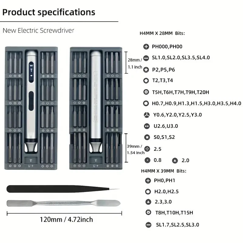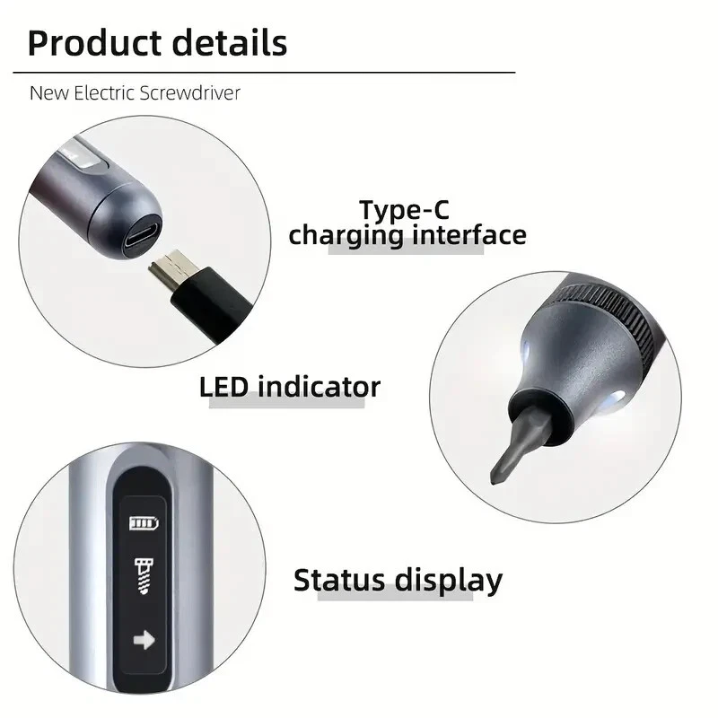 Tool Cord Style: Cordless-feature Items Included: Case Power Supply: Battery Powered (no Plug) Battery Properties: Rechargeable Battery Rechargeable Battery: Lithium Battery Brand: Hoehne Battery Capacity (mAh): 350MAh Characteristic of the item 【Dual Mode & F/R Button】- Electric automatic screwdriver is designed with durable aluminum alloy surface. With 170r/min rotation speed, supporting both manual mode (torque of 3.5N.m) and electrical mode (torque of 0.3N.m). The forward and reverse button of Hoehne cordless screwdriver meets your requirement of tightening or loosening screw bits with just a single press for higher efficiency. 【Magnetic Design】- Precision small electronics screwdriver set comes with a magnetic case that keeps the screwdriver and 48 metal bits orderly in place. The case, screwdriver and bits are all magnetic for easy attachment. Even if you turn the case upside down, the internal bits will not fall out. With an extra magnetization area, the drill bit’s magnetization can be increased when it touches here. 【50 in 1 for Multipurpose】- Mini precision screwdriver set consists of 48 different types of S2 steel bits, 1 electric screwdriver handle, 1 USB-C cable,1 tweezers and 1 crowbar, which are able to assemble and disassemble most electronics products, small household appliance, Pc building, tablet computers, mobile phones, Macbook, iPad, watch, laptops, Camera, eyeglasses, drones, clocks, controllers, RC Model, joystick, keyboard, small handheld devices, PS5 Xbox etc. 【Push pop-up Design & Shadowless LED Lights 】- The pop-up mechanism brings you satisfying sensation for every open and close of the case. Portable auto motorized screw driver embeds 2 shadowless LED light, which will illuminate the working area and dim corners, allowing you to maintain a clear vision in the darkness. and also a ideal present for , Birthday, Thanksgiving Day, Fathers' Day, etc. 【Long-lasting Battery】- Powered by 350mAh rechargeable lithium battery, it only takes rechargeable electrician screwdriver 60 minutes of full charge time to process up to 1000 screws, which is more than enough for your electronic repair work. Besides, the universal USB-C charging interface makes the charging more convenient.