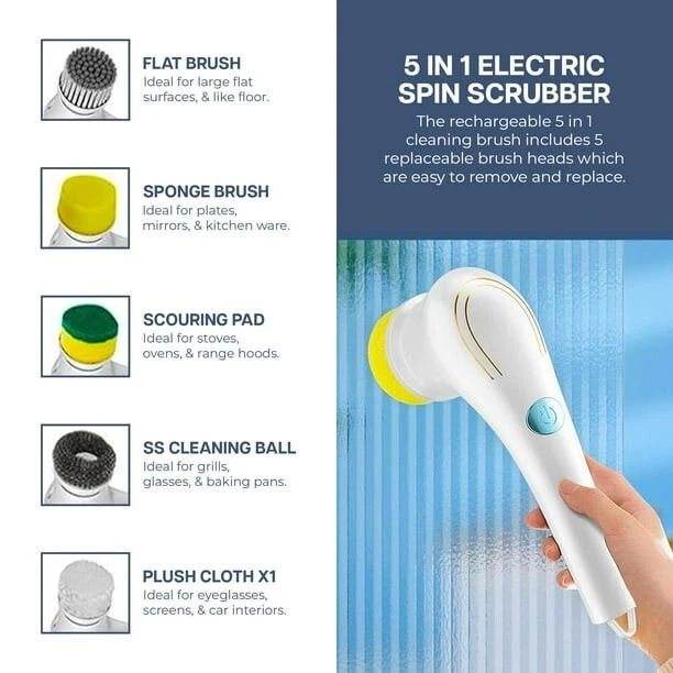Product details Maple Star electric spin scrubber can easily clean all kinds of stubborn stains, the cordless design allows you to get rid of the traditional long cord of electric cleaning brushes,cleaning tool with 5 replaceable brush heads, suitable for the Bathroom, Tub, Tile, Washing basin, Pool very conveniently. easily to handle the hygiene of your home,Definitely a good helper for your cleaning!!! Make Cleaning Easier - Maple Star electric cleaning brush activates with the push of a button and can rotate 360° to clean anywhere you want, powerful and women/elderly friendly,getting rid of the hassle associated with traditional tools. 5 Multi-Purpose Brush Heads - The Electric Spin Scrubber comes with 5 interchangeable brush heads to meet your different cleaning needs.including nylon brush head, sponge brush head, wire brush head, plush cloth brush head and floor mat brush head. It is perfect for cleaning home kitchens, bathrooms, floors, tiles, furniture, stovetops, glass and more. Durable and Waterproof - This Handheld electric cordless scrubber is charged by USB port, the charging time is about 1-2 hours, and it can work continuously for 120 minutes. The professional IPX7 waterproof level enables the scrubber to work in the water without being damaged, You no longer have to worry about brushes falling into the water. Cleaning Helper - Manual cleaning is difficult to wipe away some stubborn travel grease stains attached to the top of pots and pans.It can help you complete a variety of sanitary cleaning tasks, automatic cleaning brush on a comfortable hand grip, easy to use, can solve many kitchen cleaning problems.Save time and energy, it is a good helper that can't be beat. High Quality Service - The electric scrubber brush is Fulfilled by Walmart , if there is any damage or other trouble in transit, please contact our after-sales service in time, we will try our best to provide you with a satisfactory solution.