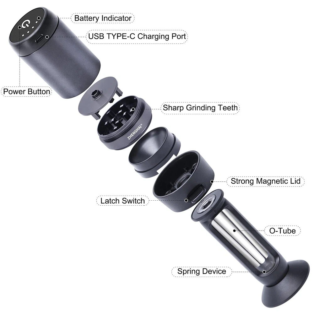 PROFESSIONAL ELECTRIC GRINDER - With a professional electric control chip and an easy-to-operate design, the Whether you are a novice or an experienced grinder,It will meet your needs for grinding spices. PERFECT GRINDING EXPERIENCE - The newly upgraded intelligent bi-directional grinding technology,can realize the ,automatic change of grinding direction during.the grinding process.ensures that the spices are fully ground or blended. Sharp teeth made of aluminum,can easily handle most fluffy herbs and release their original aroma. CONVENIENT FILLING METHOD - One of the best solutions for filling spices into o-Tube Sachet.Individually designed pin switch to control the amount of spices to be filled,Avoid wasting valuable spices.Built-in spring mechanism.allows oily or sticky spices to fall smoothly into the o-tube Sachet and to be easily removed. EASY TO CARRY - Grinder main unit and base are connected by magnetic suction,The grinder can be removed and used separately.Small size can easily be carried in a backpack,Whether you're in the home kitchen or traveling camping, it will be your right-hand man for grinding spices. PURCHASE INCLUDES - -S01 Grinder*1,Cleaning brushes*2, Stopper of different sizes*2, Type-c charging cable*1, User manual*1. Questions? Please contact us, it is our mission to provide our customers with high quality products as well as efficient and excellent service.