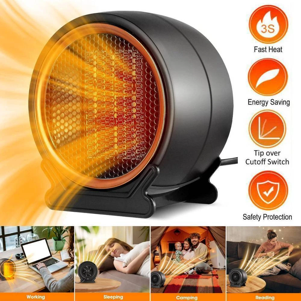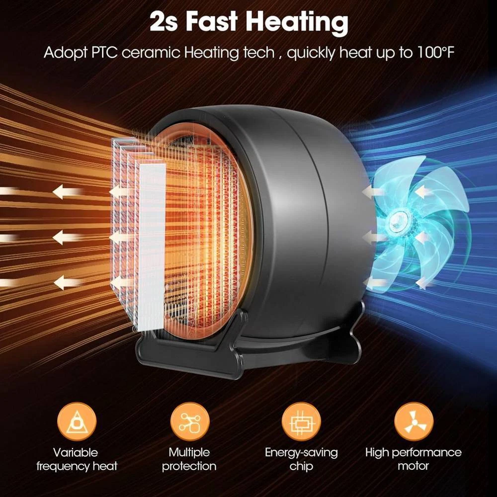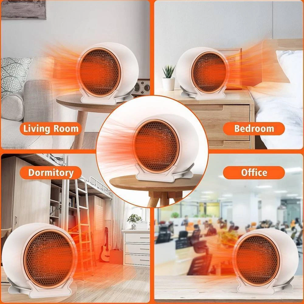 Note: Pl ease don't cover the fan when the machine working. Please don't use it for a long time. There is no light in the use of the product, and the picture is a display effect. Factory mass production, the product may have small scratches,we promise all products are brand new. F eatures: Small but Powerful This compact space heater is heated with advanced PTC ceramic, which emits extraordinary intense heat, instant comfort and warmth, mini lightweight and portable, perfect for desktop, countertop bedside, bedroom , bathroom, study, kitchen, office and indoor use. 2 Seconds Fast Heating Fan Mode This 1200W portable heater heats the air around you in 2 seconds! Quality space heaters use PTC ceramic heating technology and high-speed fan, quickly release a large amount of heat for whole house heating, save electricity effectively, long life, for your family's office, and provide a personalized and comfortable temperature. 2 Adjustable Heating Power Two heating modes and one natural wind mode are available, including 1200W (high), 800W (low) power settings .Just press the button you can enjoy comfortable warmth. Low Noise and Energy Saving Automatically adjusts the heating mode according to the room temperature: This indoor heater will save money on your electric bill while keeping you comfortable. Our portable electric heaters are more energy efficient and quieter than traditional ones. The working noise is only 45 decibels. The internal heaters will not interfere with sleeping, studying, reading or working, giving you an ultra-comfortable quiet space. Portable Mini Spac e Heater The low energy consumption heater is easy to carry, light weight and small in size. You can easily take the heater anywhere. Internal heaters are small enough that most people can use them in their bedrooms while they sleep. Heart Warming G ift for Winter This would be ideal for family, friends and girlfriends on cold winter days or while on vacation. When you hand it over to the gift, they will feel the warmth of your heart. Descriptions: Name:Smart Heater Fan Type:Heater Fan/Space Heater Features:800/1200W Power,PTC Material,Overload Protection,2 Levels Winds,Portable Design,Tip-Over Protection,3s Heating Rated voltage:110V,50Hz Power:800/1200W Gear: low gear 800W, high gear 1200W Noise: ≤50dB Applicable area: 10-20 ㎡ Heating mode: PTC ceramic heating Product size: 16.5*11*18cm Single weight: 0.80kg Plug:US Plug Color:White/Black Packages: 1x Space Heater fan 1x Manual